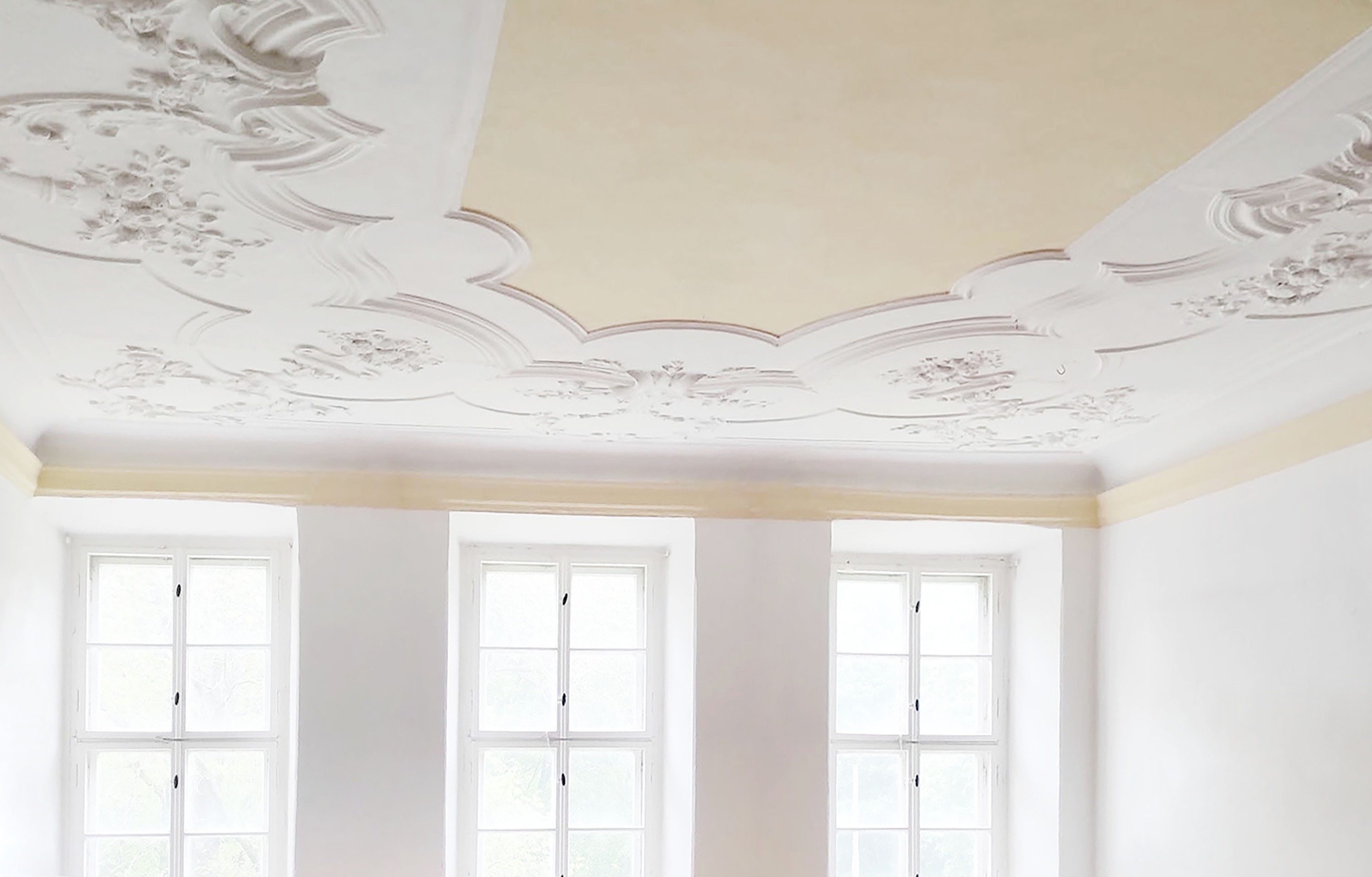 - dem Stil des Schlosses angepasste neue Holzfenster