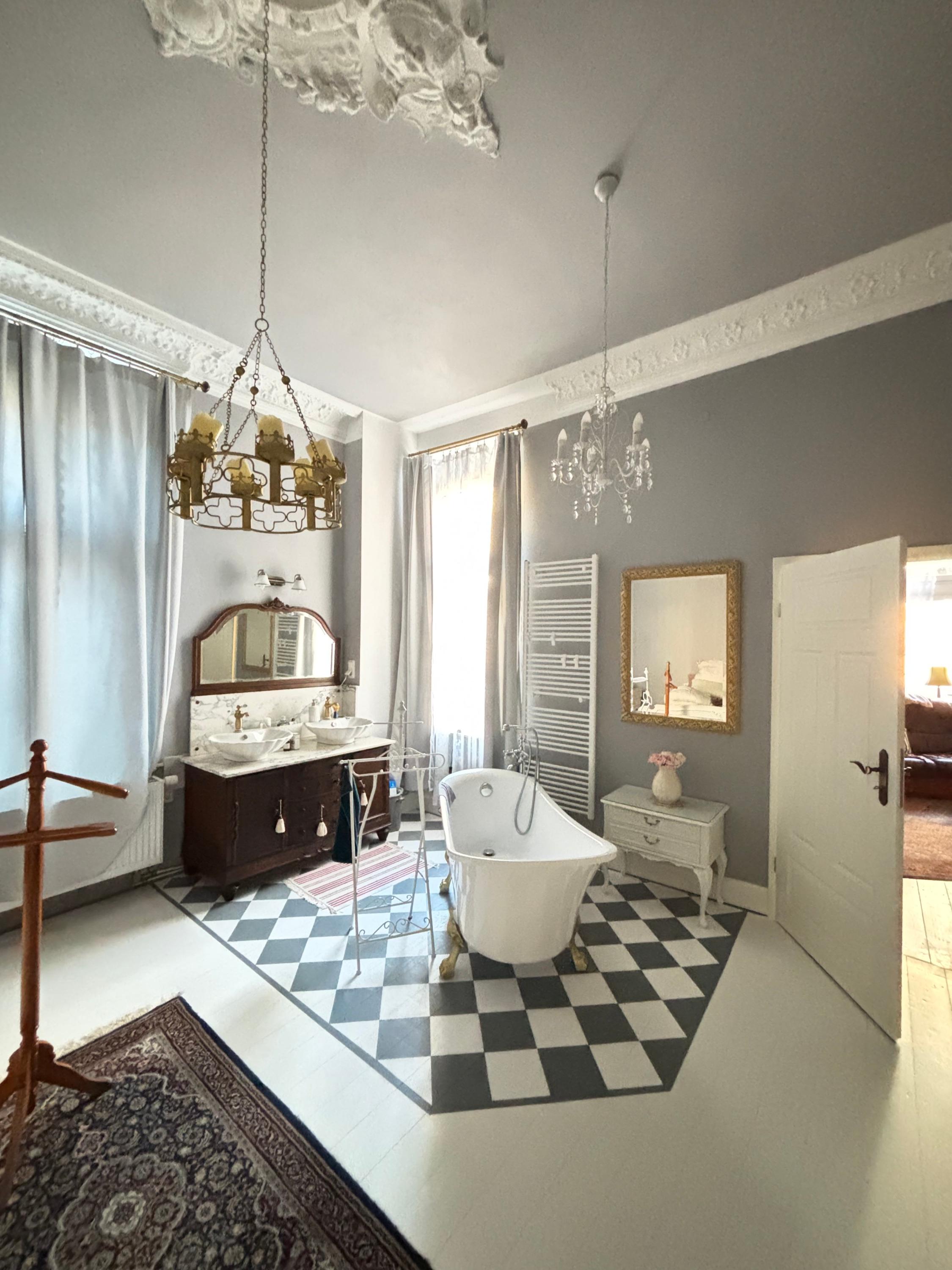 - Einzigartige Deckenmalerei, die die vier Jahreszeiten im Stil von Alfons Mucha darstellt (restaurierungsbedürftig)