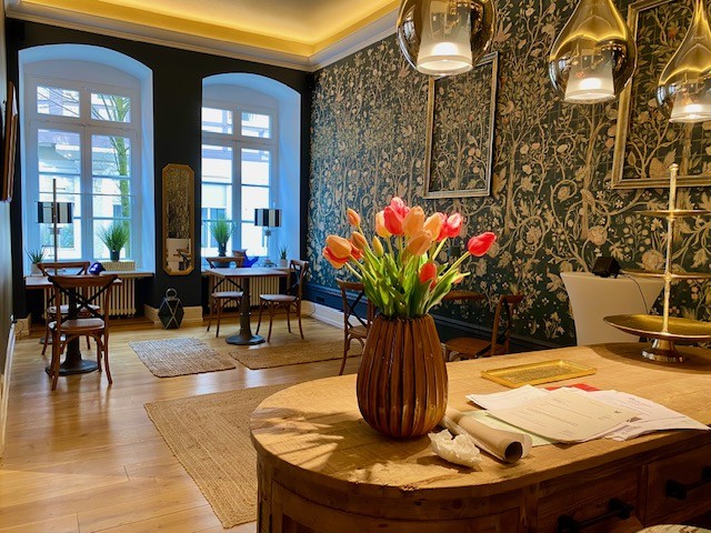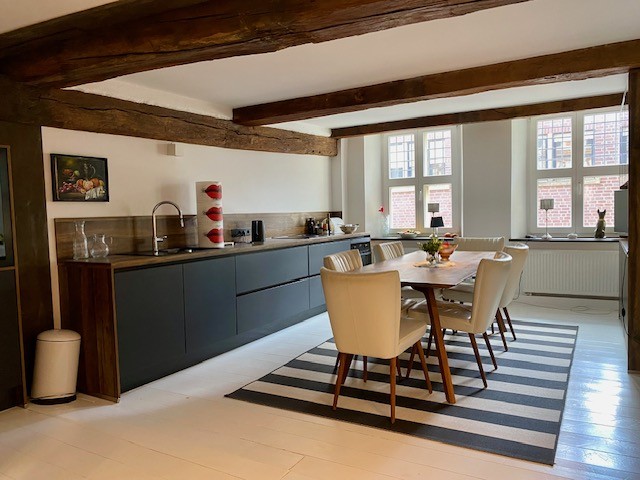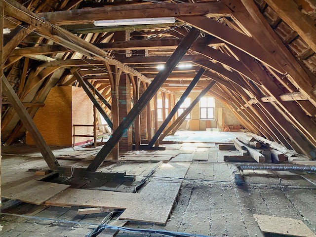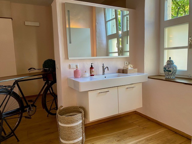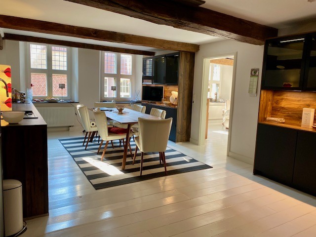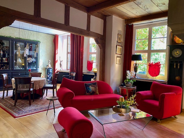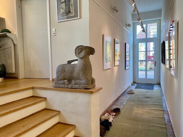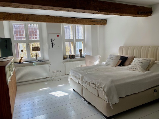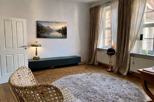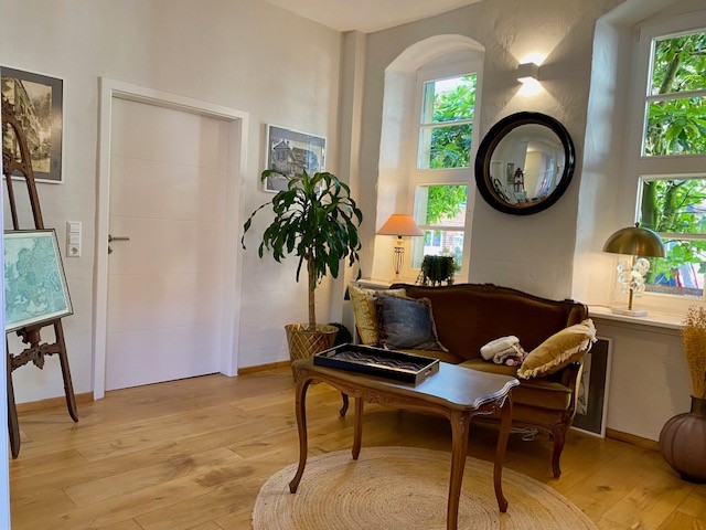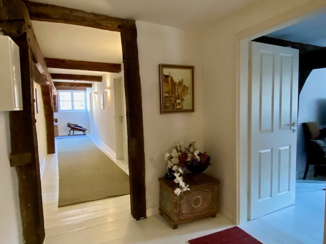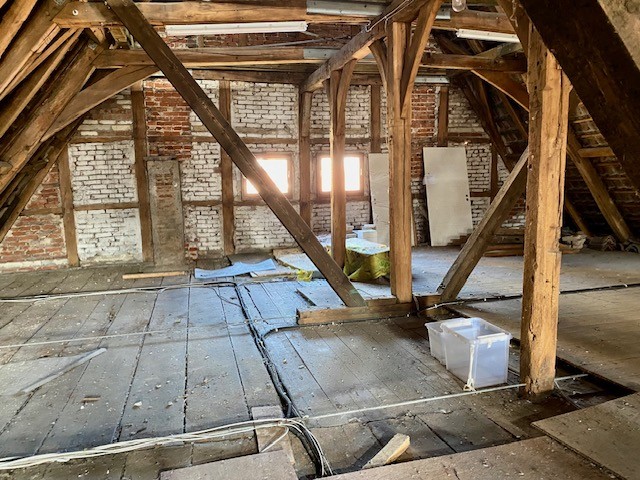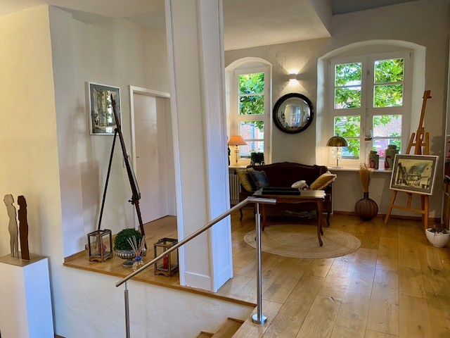 Gebäude 12 Zimmer, 4 Badezimmer. Originale Deckenbalken in Diele und mehreren Räumen, Echtholzböden, originaler Steinboden in der Diele. Gewölbekeller. Dachgeschoss als Ausbaureserve. Zwei Zugänge: Haupteingang von der Fussgängerzone, zweiter Zugang vom Innenhof. Stellplatz vor dem Innenhof.