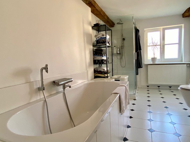 Ausstattung Gaszentralheizung erneuert 2000, Kunststoff-Isolierverglasung, alle Badezimmer vor fünf Jahren erneuert, Satelliten- und Alarmanlage, Hauswirtschaftsraum mit Anschlüssen für Waschmaschine und Trockner.