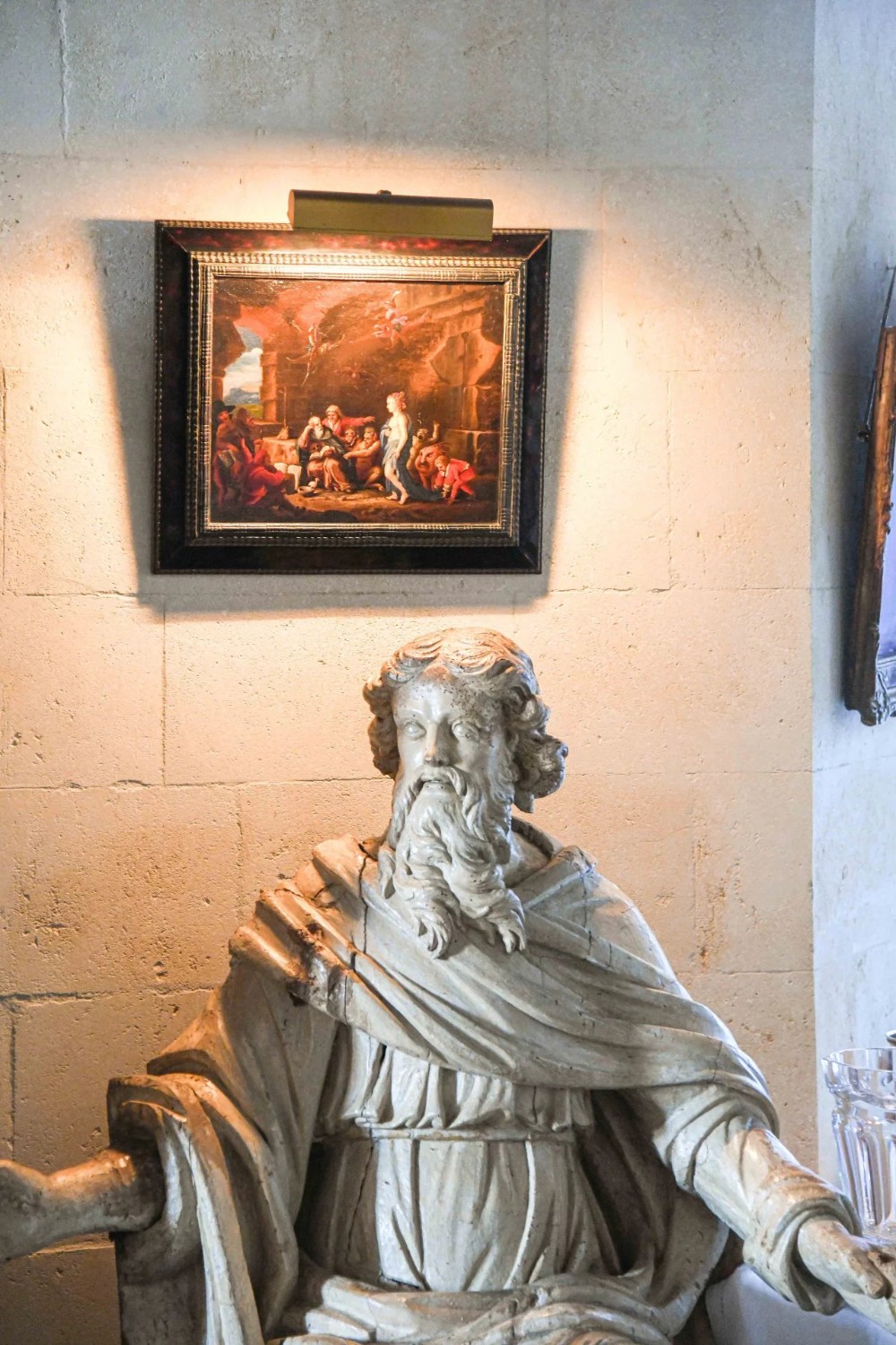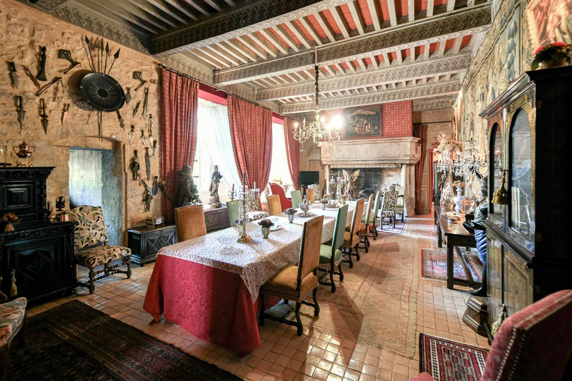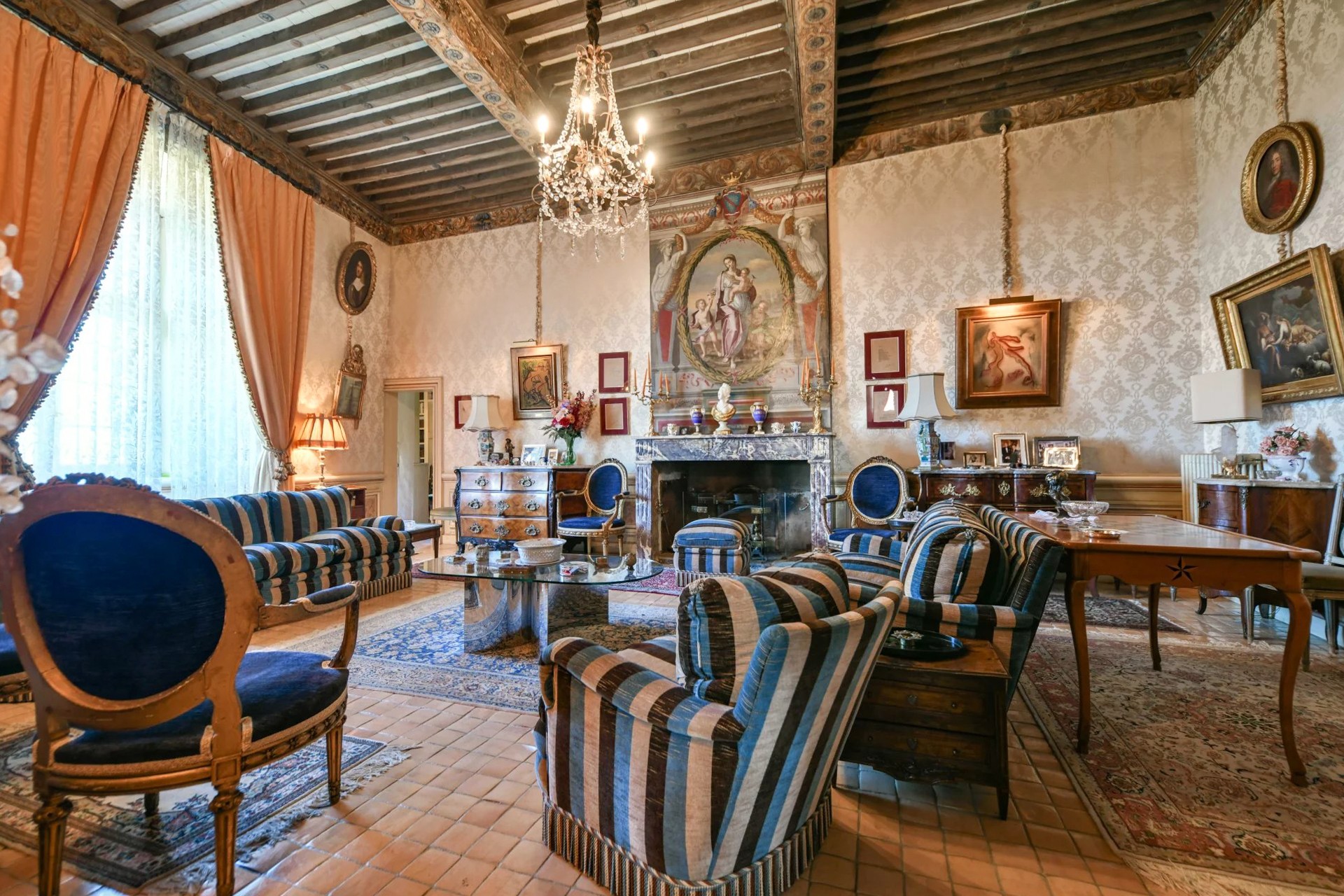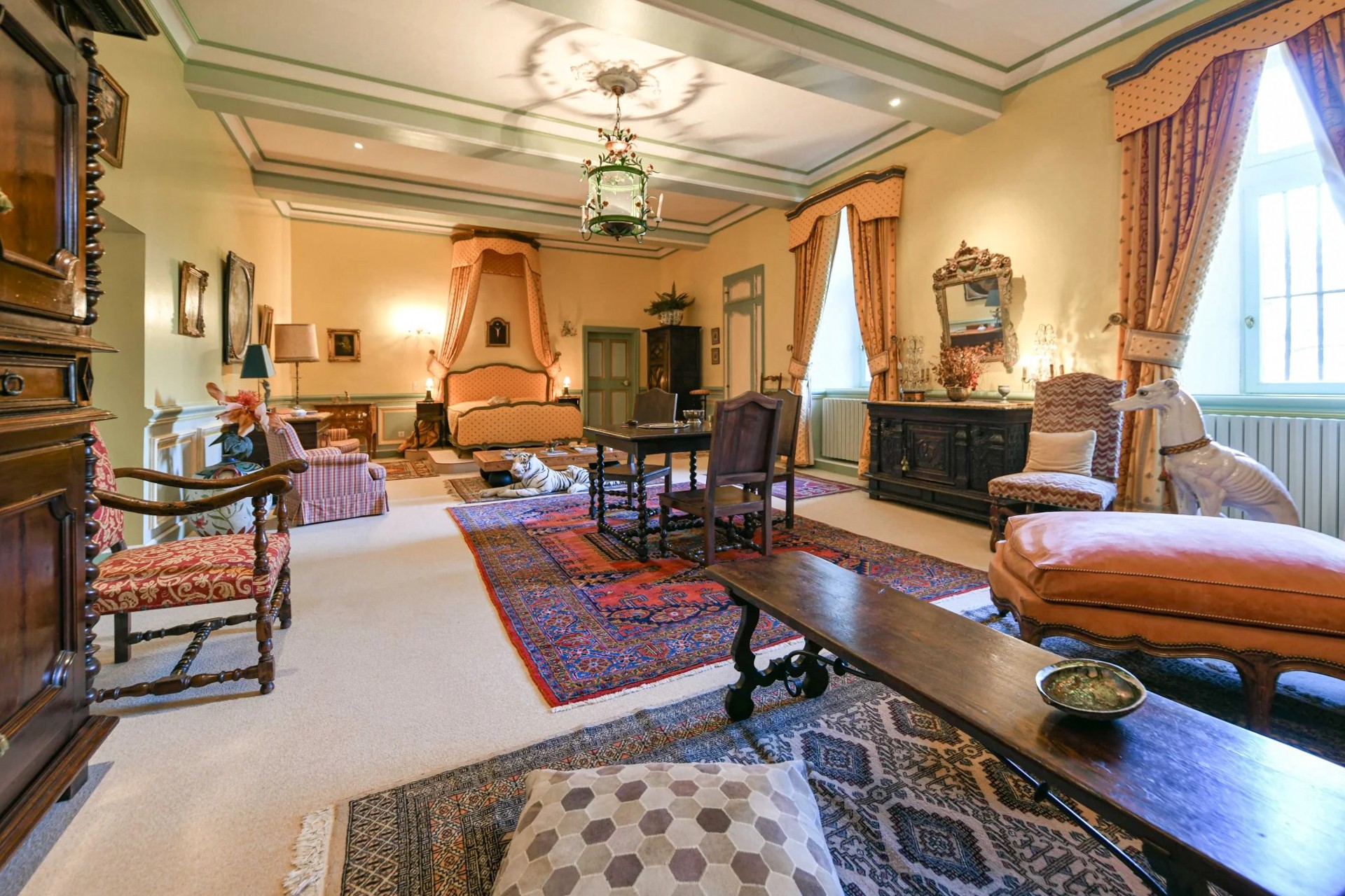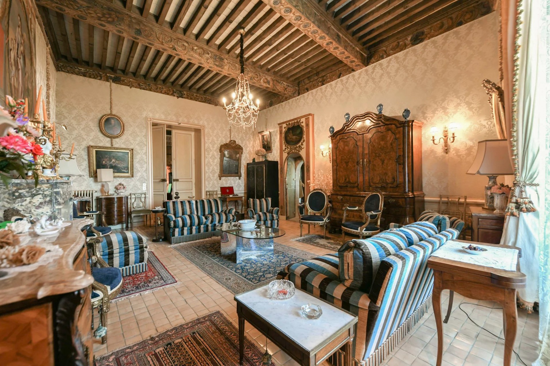 Zwei Eingänge führen in einen weitläufigen, gewölbten Salon mit einer Decke aus dem 17. Jahrhundert. Ein prächtiges Treppenhaus verbindet das Erdgeschoss mit dem Obergeschoss, das zwei Salons, einen eleganten Speisesaal mit Kamin und eine Bibliothek umfasst. Ein langer Flur erschließt ein Büro, die Küche sowie eine großzügige Hauptsuite von 100 m².