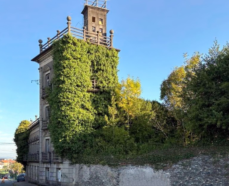 Das prägende architektonische Element ist der begehbare Turm mit Flachdach, Dachterrasse und Balustrade, von dem sich ein weiter Blick über die Bucht von Ferrol eröffnet.