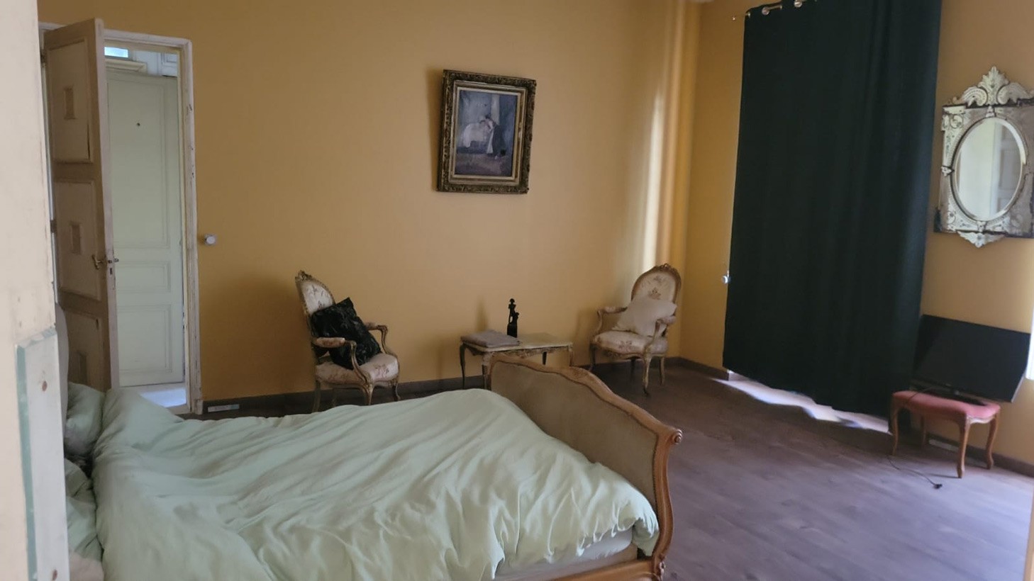 Jedes der vier Hauptgeschosse bietet etwa 139 m² Wohnfläche. Ein 60 m² großer Salon mit Kamin bildet das Herzstück, ergänzt durch einen kleineren Salon, ein Arbeitszimmer, eine Küche mit angrenzendem Vorratsraum und ein repräsentatives Treppenhaus, das zu sieben Schlafzimmern führt. Im Keller mit rund 139 m² stehen weitere Flächen zur Verfügung, die von innen und außen zugänglich sind.
