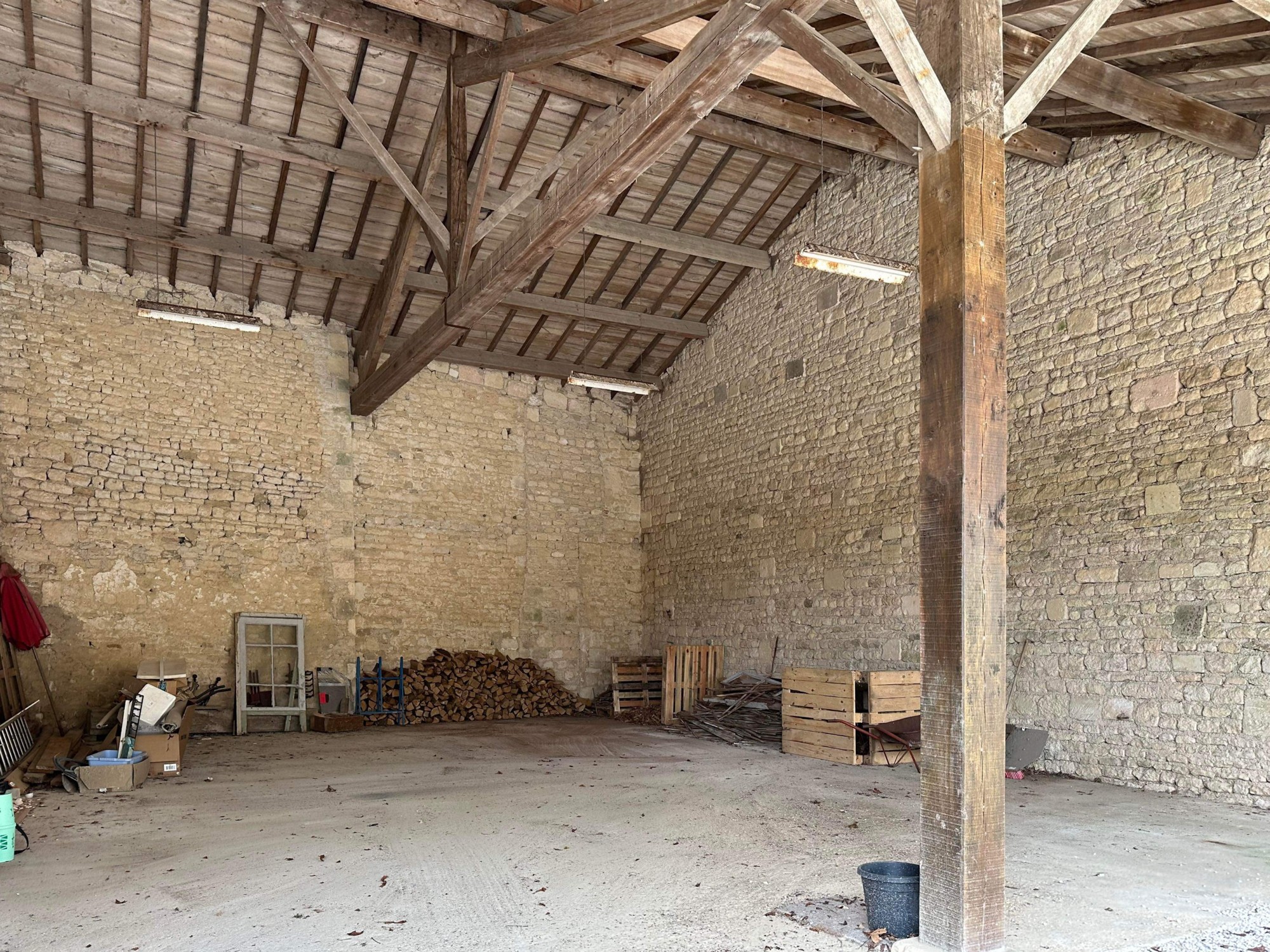 Die Nebengebäude sind großzügig dimensioniert: Eine große Zehntscheune reiht sich an zwei weitere Scheunen und einen überdachten Vorbau, während das ehemalige Tempelritter-Gefängnis, kleine Dachflächen und ein 55 m² Maset zusätzliche Nutzungsmöglichkeiten bieten, beispielsweise als Gästeunterkunft. Alle Dächer wurden kürzlich erneuert.