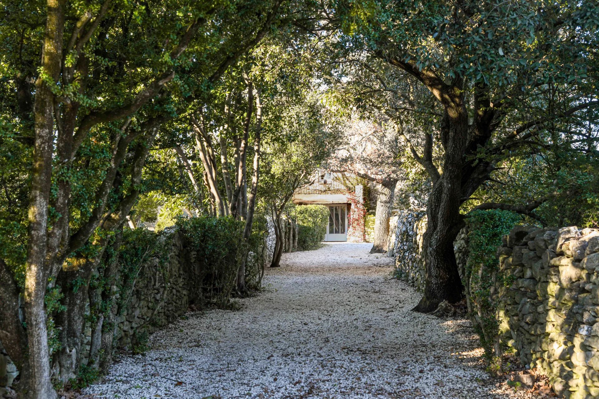 Der über 1,8 Hektar große Park gliedert sich in verschiedene Bereiche: eine von altem Baumbestand gesäumte Zufahrt, Poolbereich und Wiesenfläche.