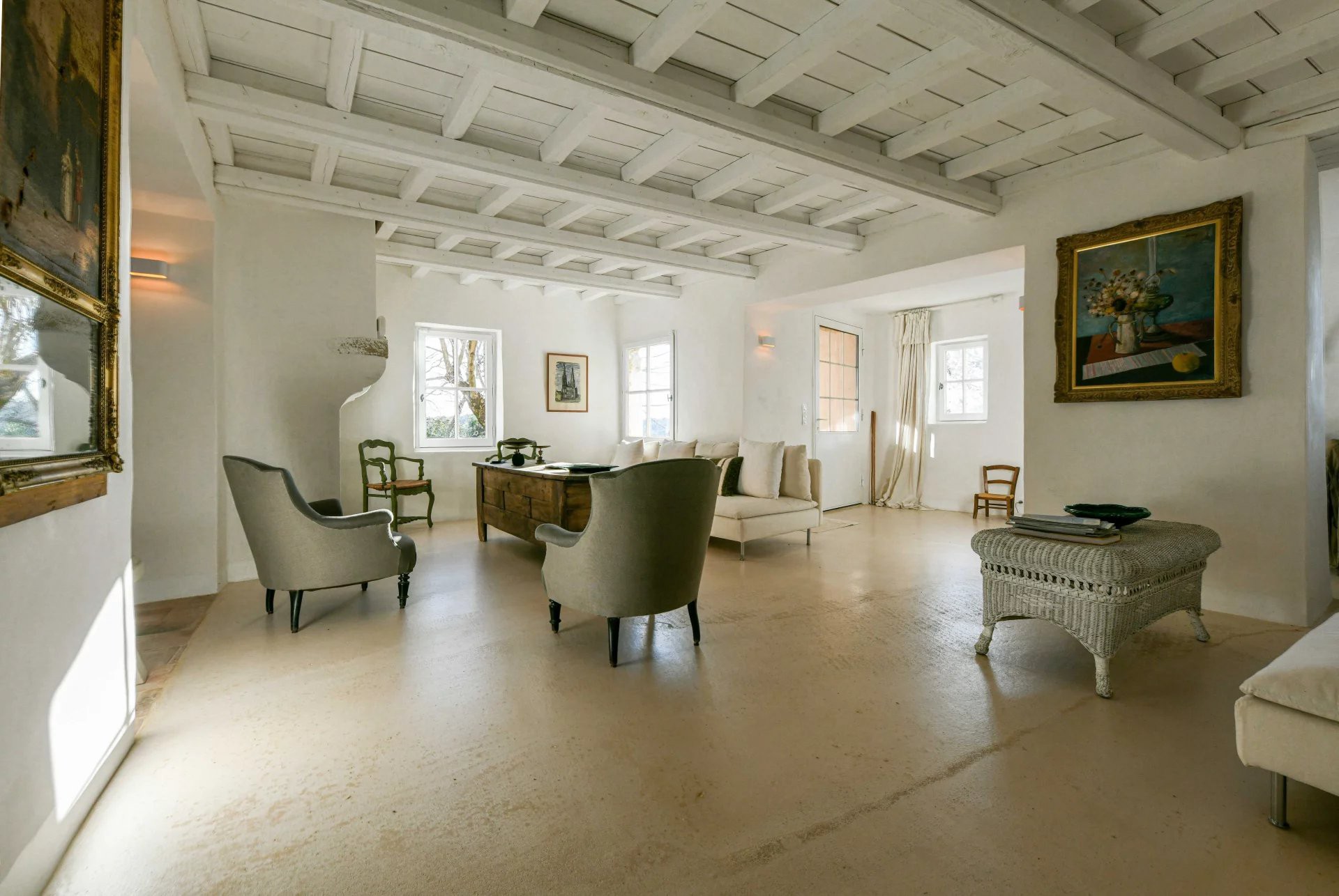 Die Ausstattung verbindet historische Bausubstanz mit zeitgemäßem Komfort: französische Holzbalkendecken, antike Terrakottaböden, zentrale Klimaanlage.