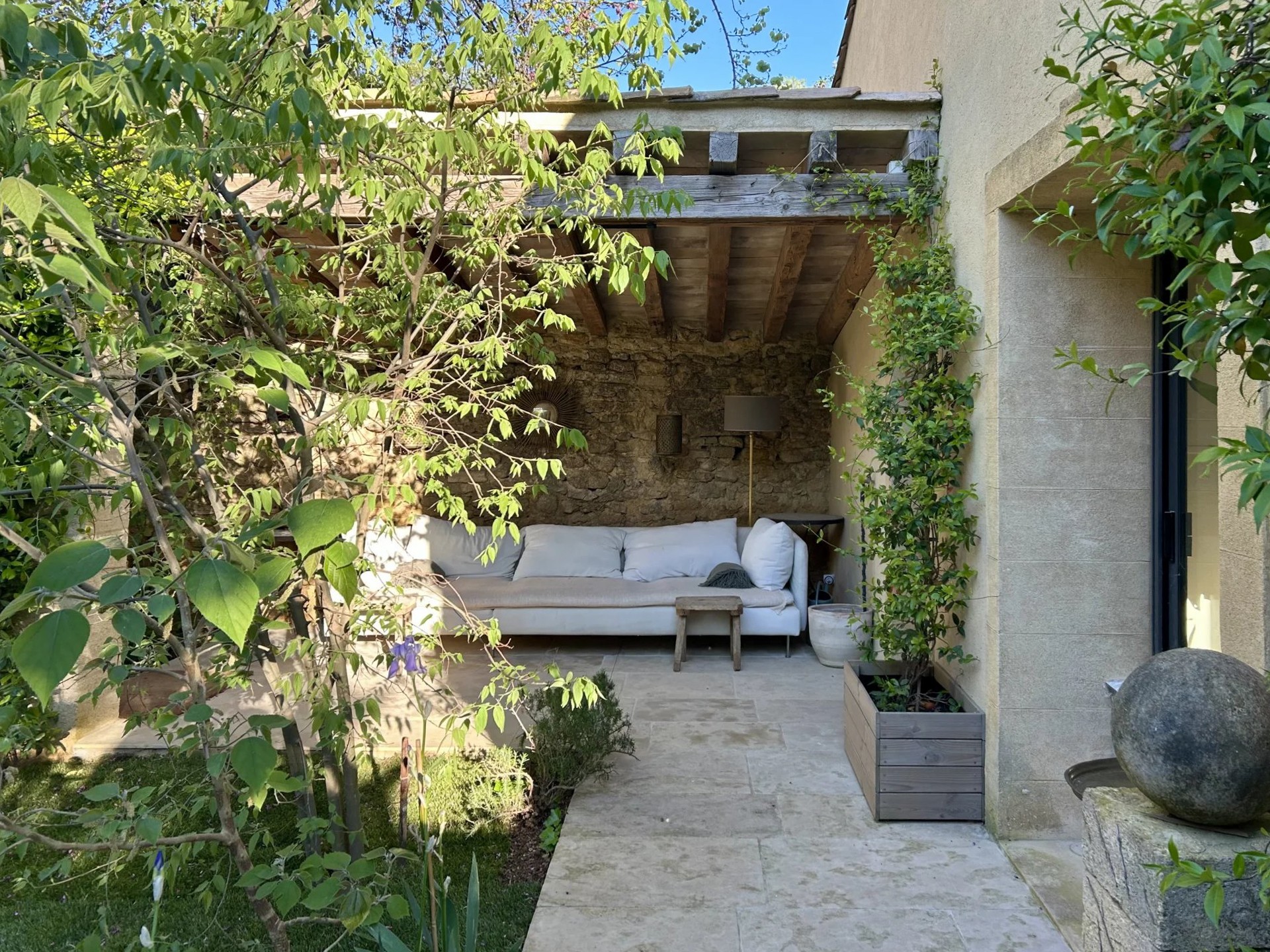 In einem der begehrtesten Dörfer der Region Uzès verbirgt sich hinter unauffälligem Garteneingang eine außergewöhnliche Immobilie: ein vollständig restauriertes Dorfanwesen, das authentische Materialien mit modernem Wohnkomfort verbindet. Alle Annehmlichkeiten des Ortes sind fußläufig erreichbar.