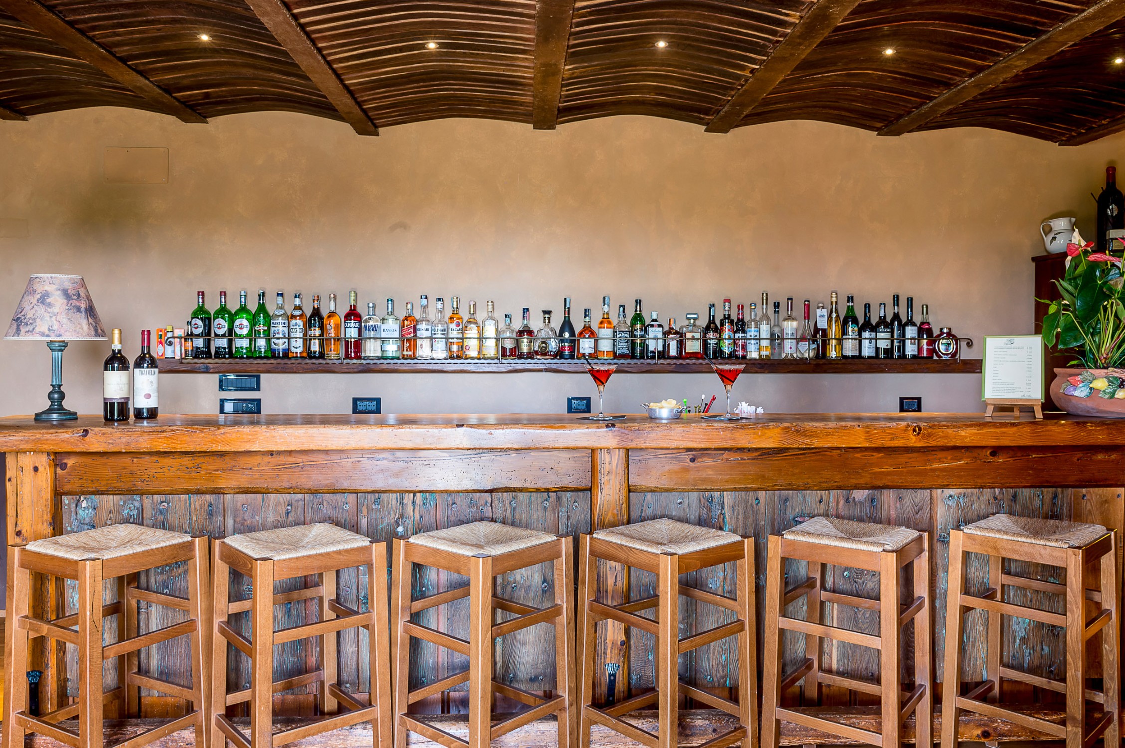 Die 30 Hektar Eigengrund teilen sich in Weingärten, Olivenhaine und Ackerflächen auf. Das hauseigene Weingut produziert jährlich ca. 5.000 Flaschen Syrah und Sangiovese.