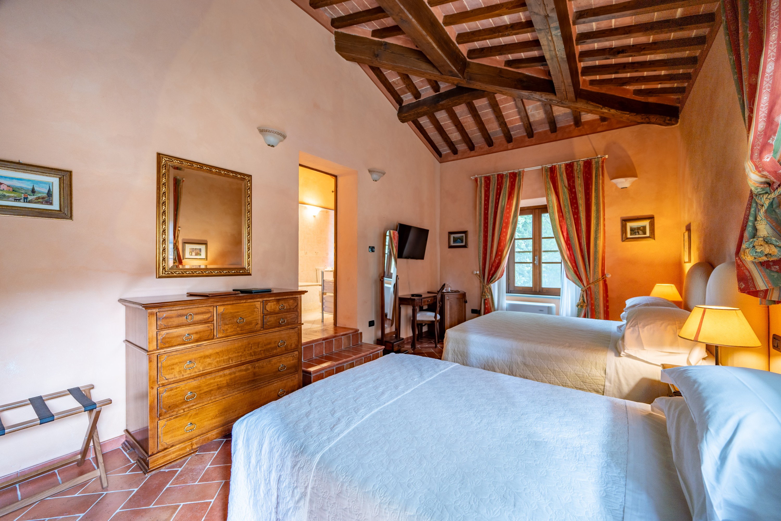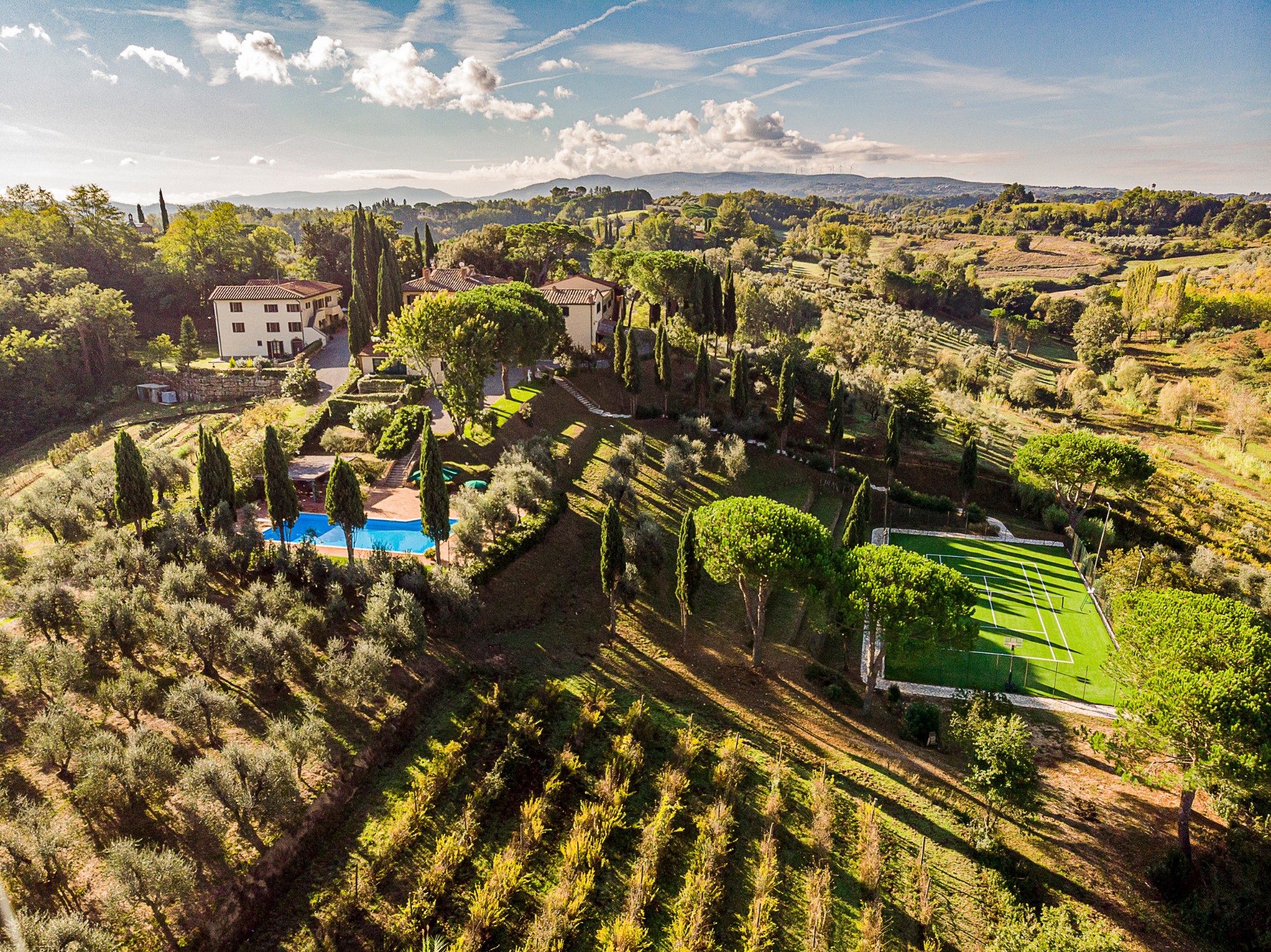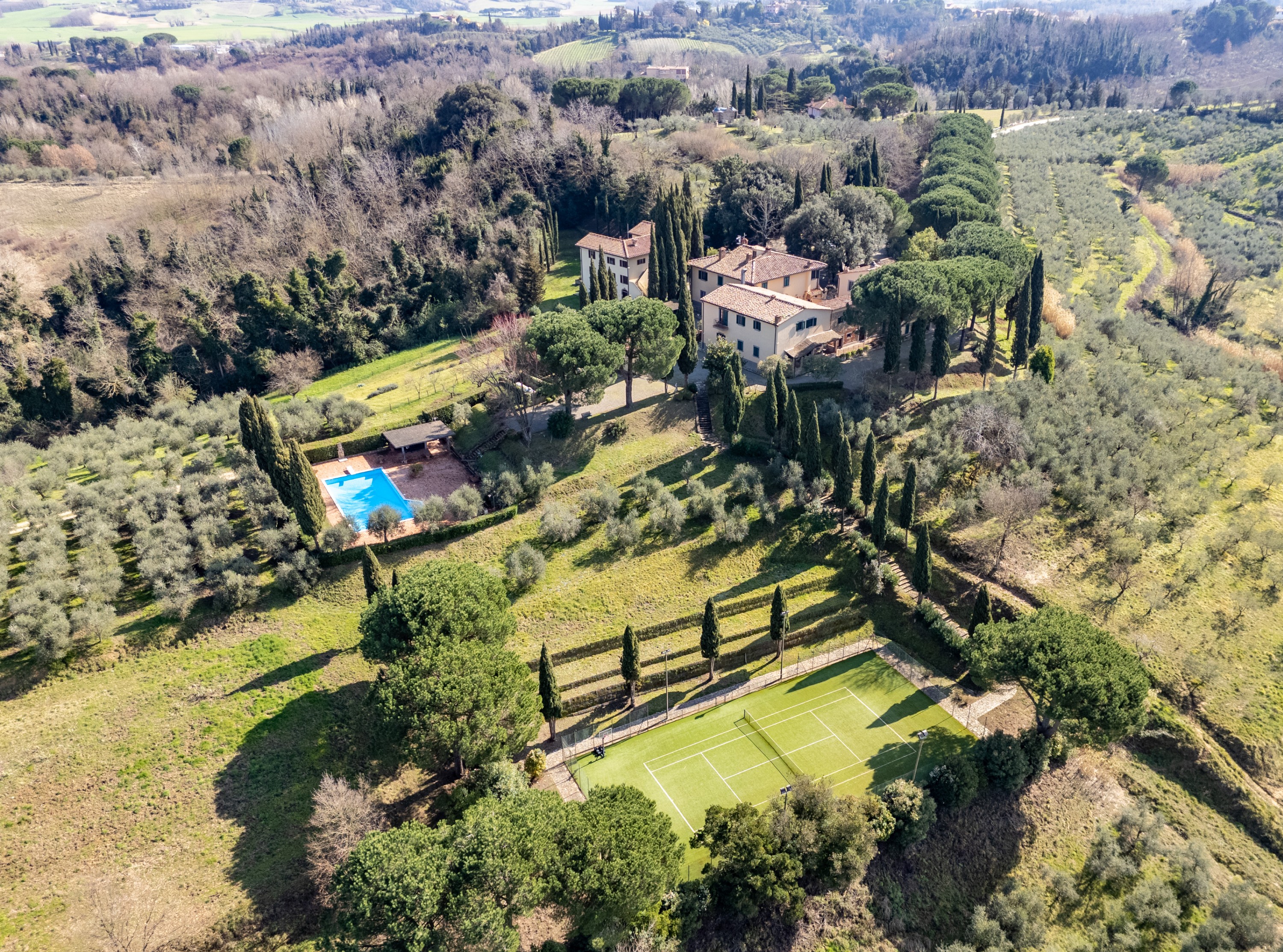 Die Liegenschaft, historisch als „L’Ebreo“ bekannt und in den Archiven des Bistums San Miniato verzeichnet, dient heute als gehobener Rückzugsort. Die Struktur ermöglicht sowohl die Fortführung als Hospitality-Investment im Luxussegment als auch die Nutzung als repräsentativer privater Wohnsitz.