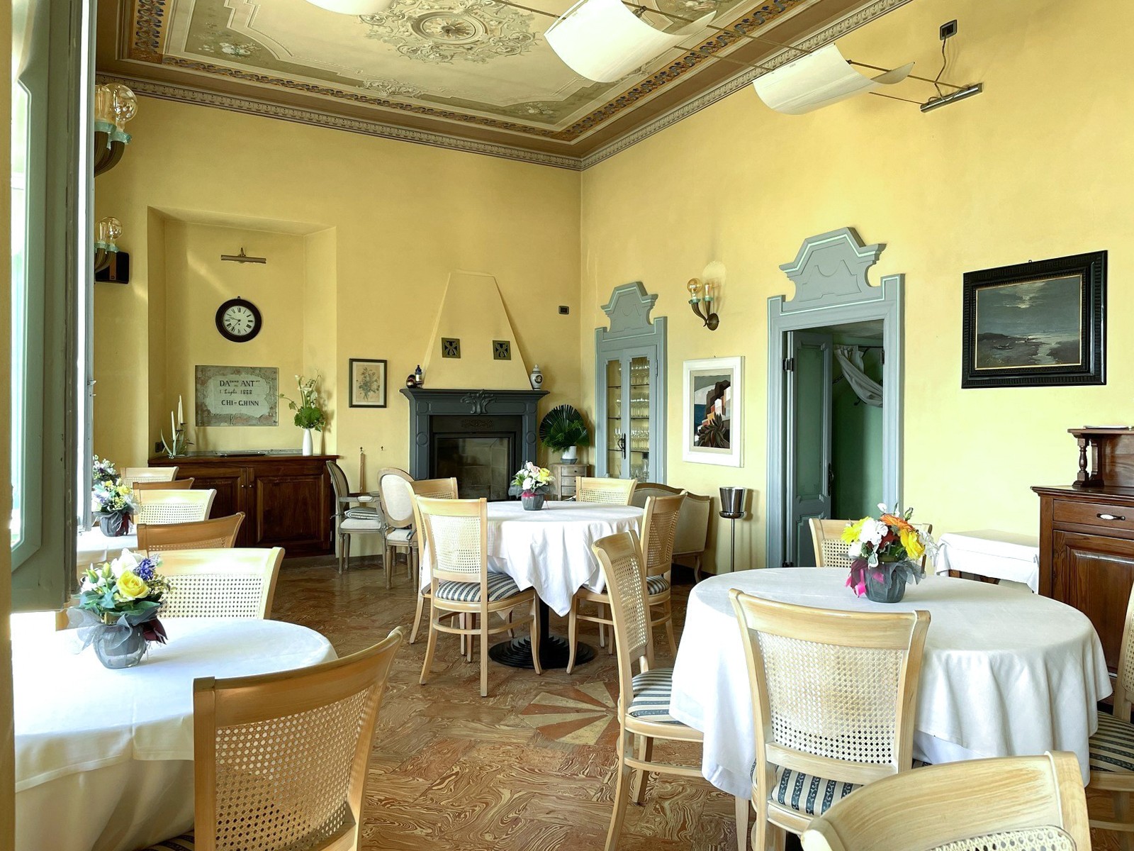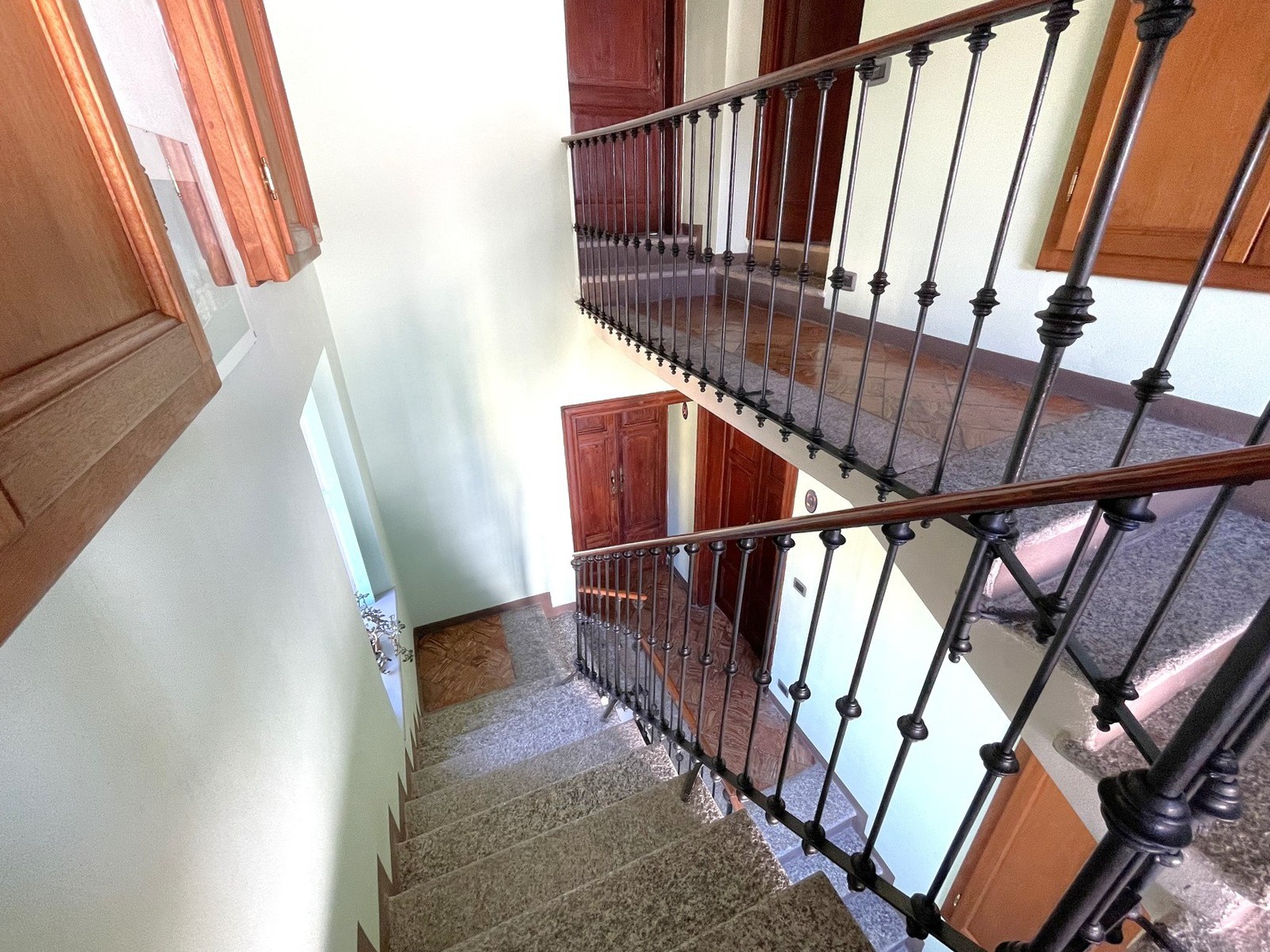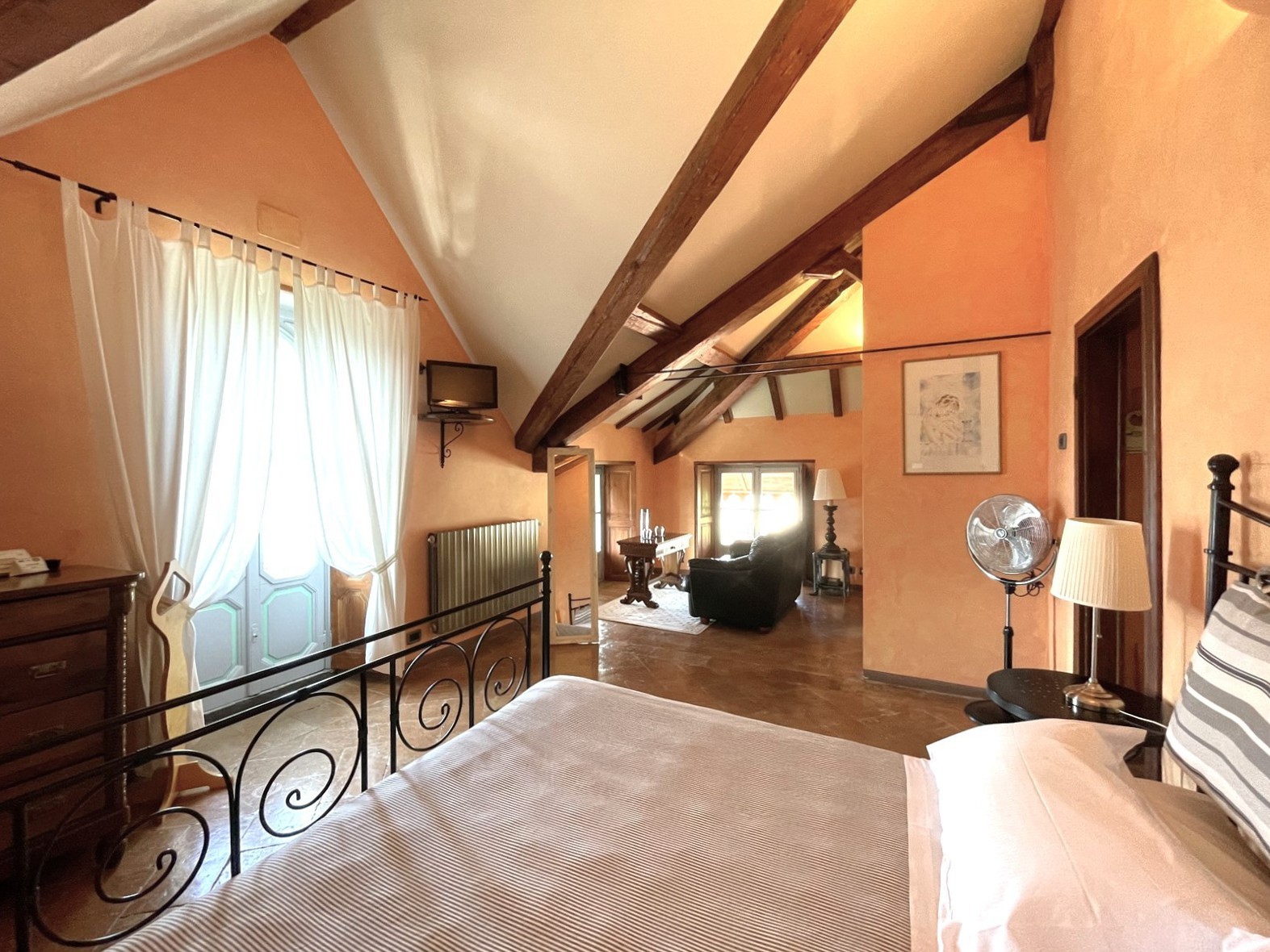 Im Erdgeschoss des Hauptgebäudes befinden sich eine Eingangshalle, ein großer Wohnsalon mit Kamin und schönen Originalfresken, zwei Badezimmer und ein Hauswirtschaftsraum. Im ersten und zweiten Stock befinden sich jeweils zwei geräumige Schlafzimmer, die beide ein Bad en-suite besitzen. Im Dachgeschoss gibt es zwei weitere Schlafzimmer mit Balkon und ebenfalls einem Bad en-suite. Das Untergeschoss verfügt über einen großen Keller und bietet Zugang zum Garten.