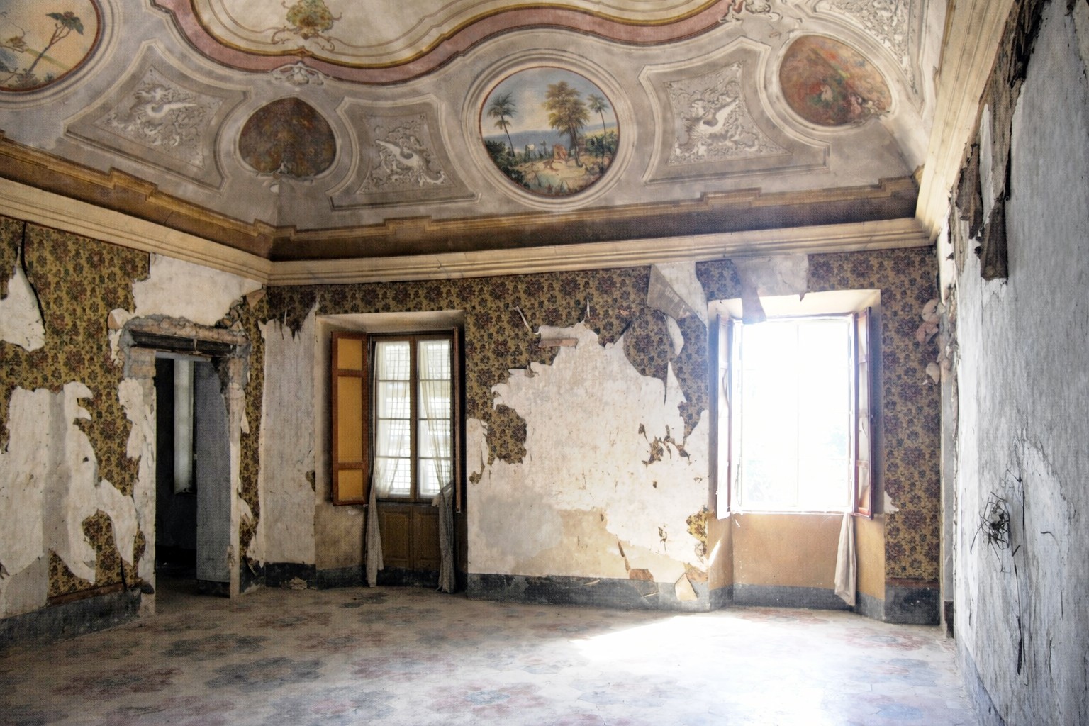 • Erstes Obergeschoss: prunkvoller, mit Fresken verzierter Repräsentationssaal, fünf Schlafzimmer und ein Badezimmer.