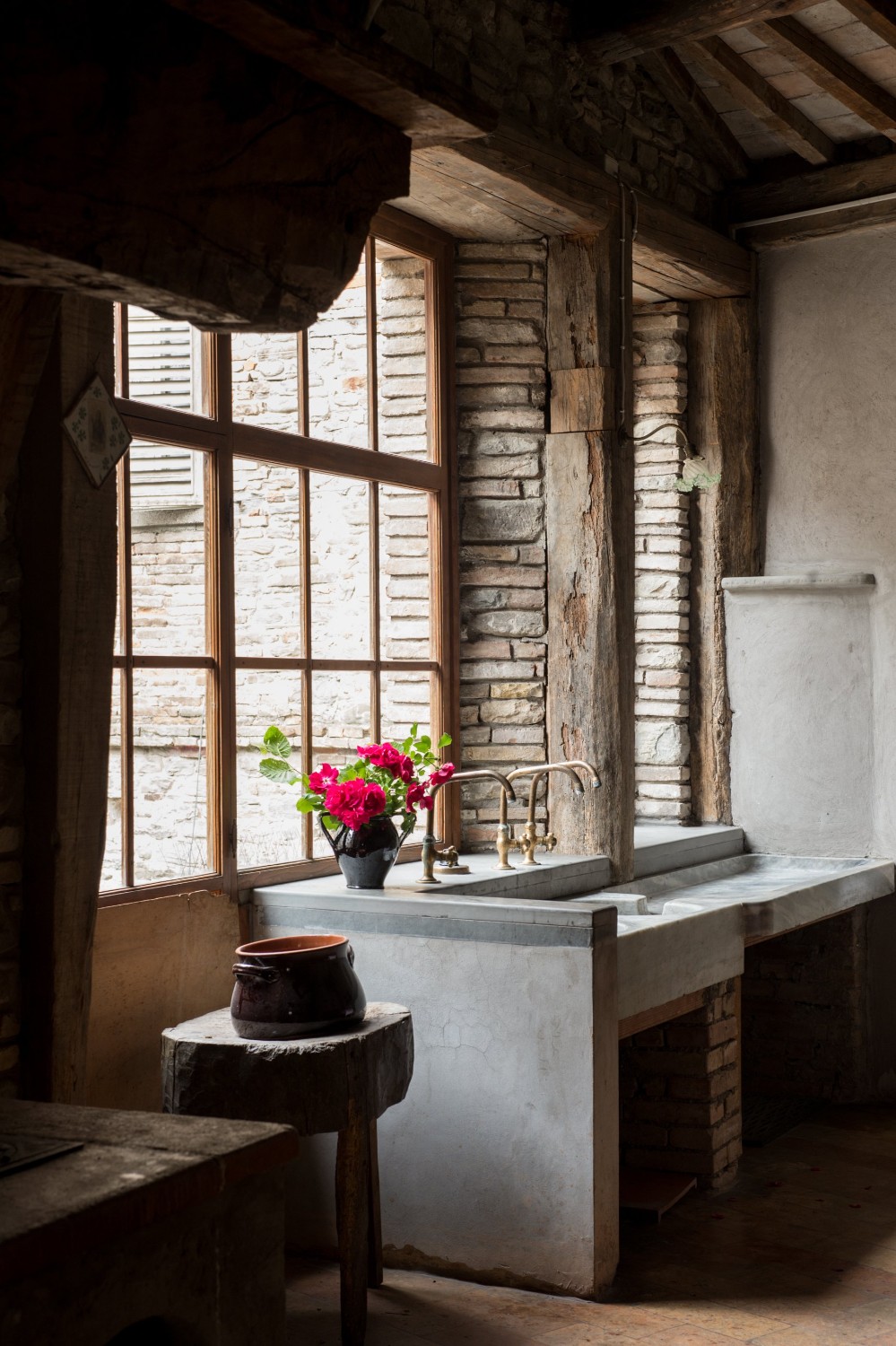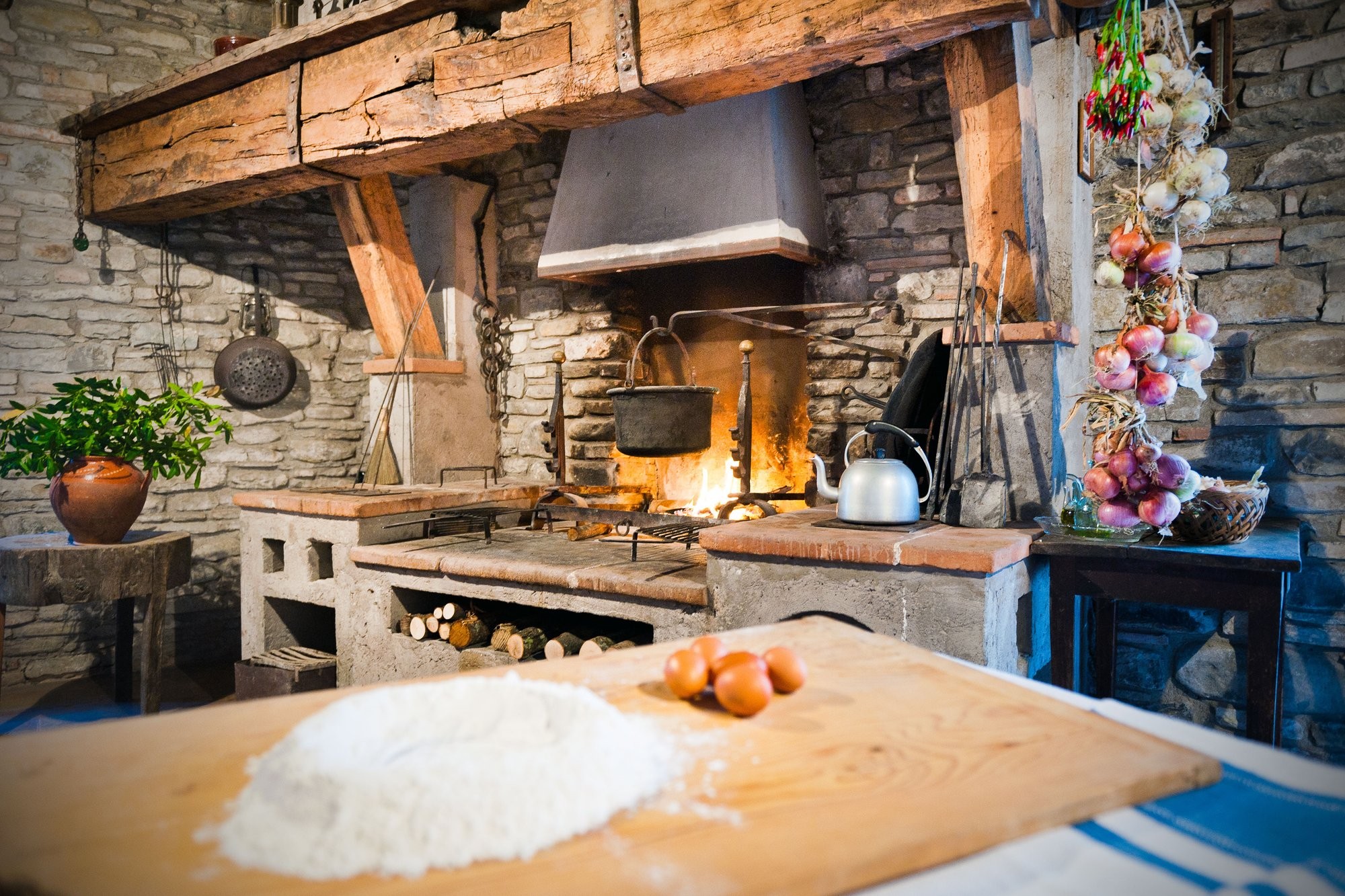 Im rechten Flügel liegen zwei Küchen: eine moderne Profiküche mit hochwertigen Geräten und eine traditionelle Küche mit großem antiken Kamin. Daneben befinden sich ein großer Speisesaal für festliche Dinner sowie kleinere Frühstücks- und Aufenthaltsräume. Eine separate Wäscherei und Lagerräume sind dezent untergebracht.