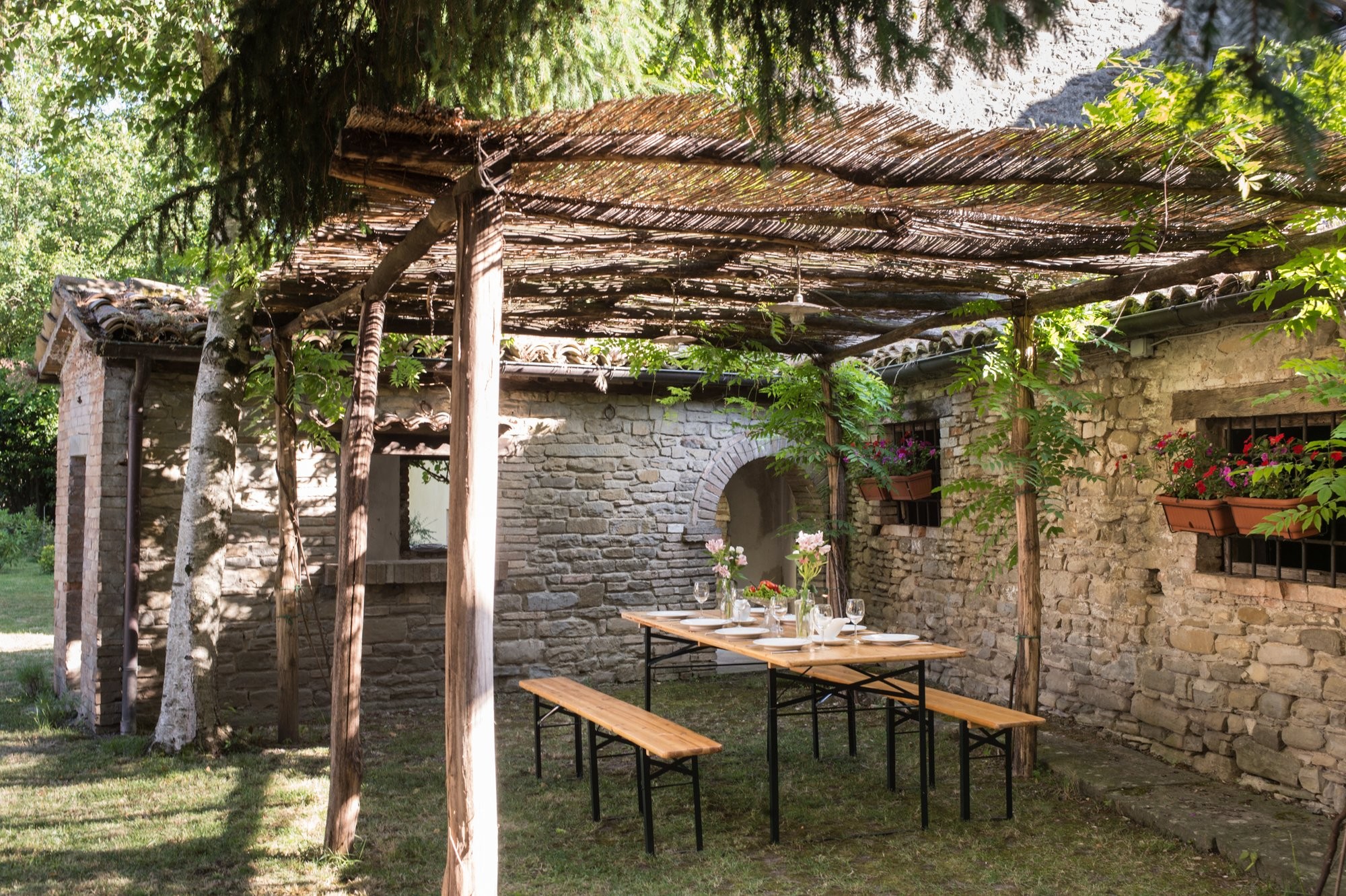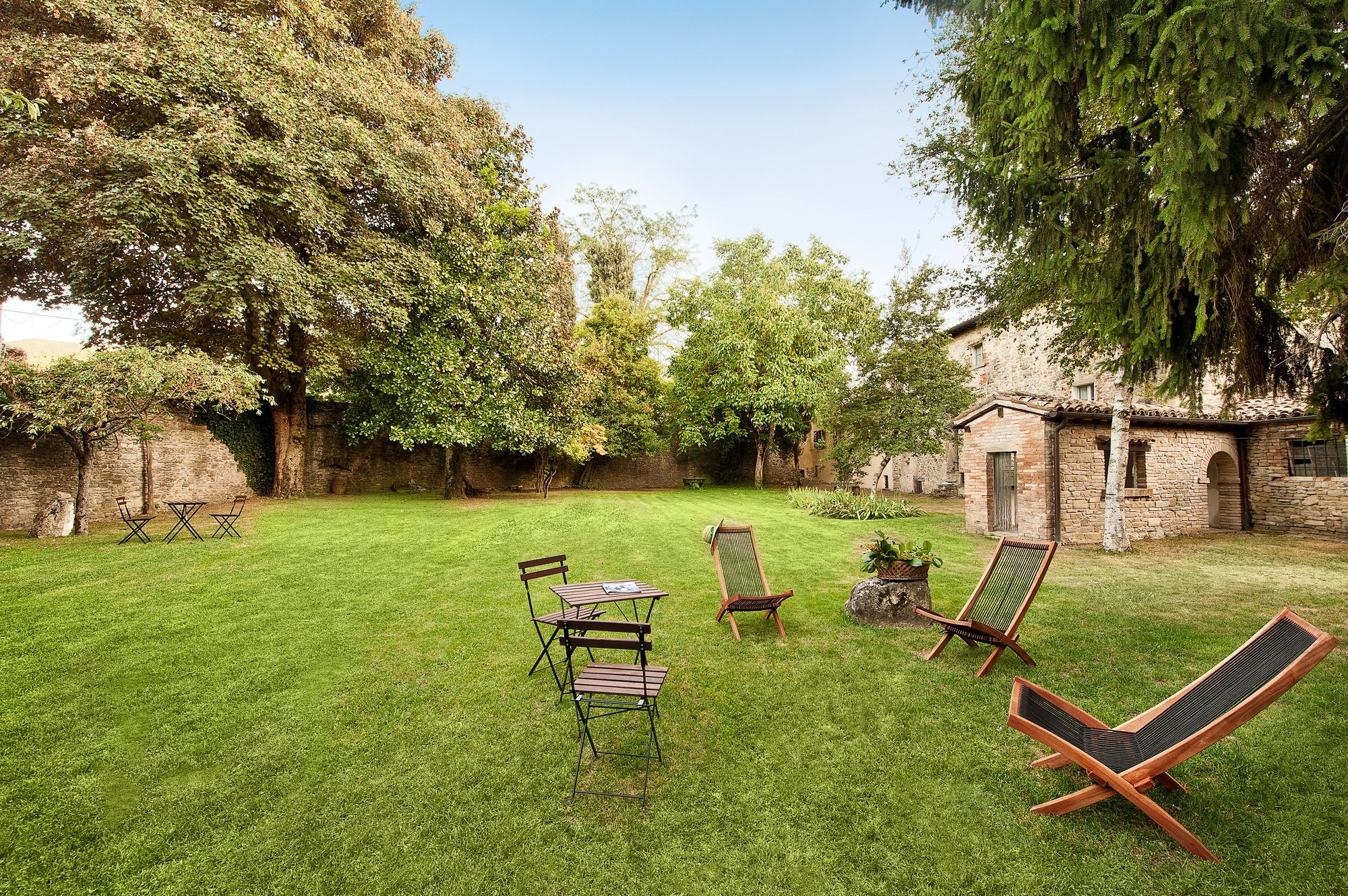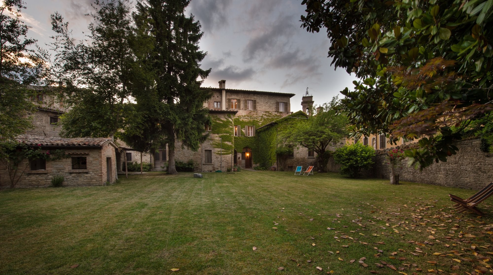 Der Palazzo Merletti liegt im Herzen des malerischen Dorfes Mercatello sul Metauro, eingebettet in die grünen Hügel des Montefeltro. Beim Betreten spürt man sofort die Atmosphäre der Renaissance: Ein langer Korridor führt zu einem versteckten Innenhof mit Rosen, Obstbäumen und jahrhundertealten Pflanzen – ein stiller Rückzugsort mitten im Dorf.
