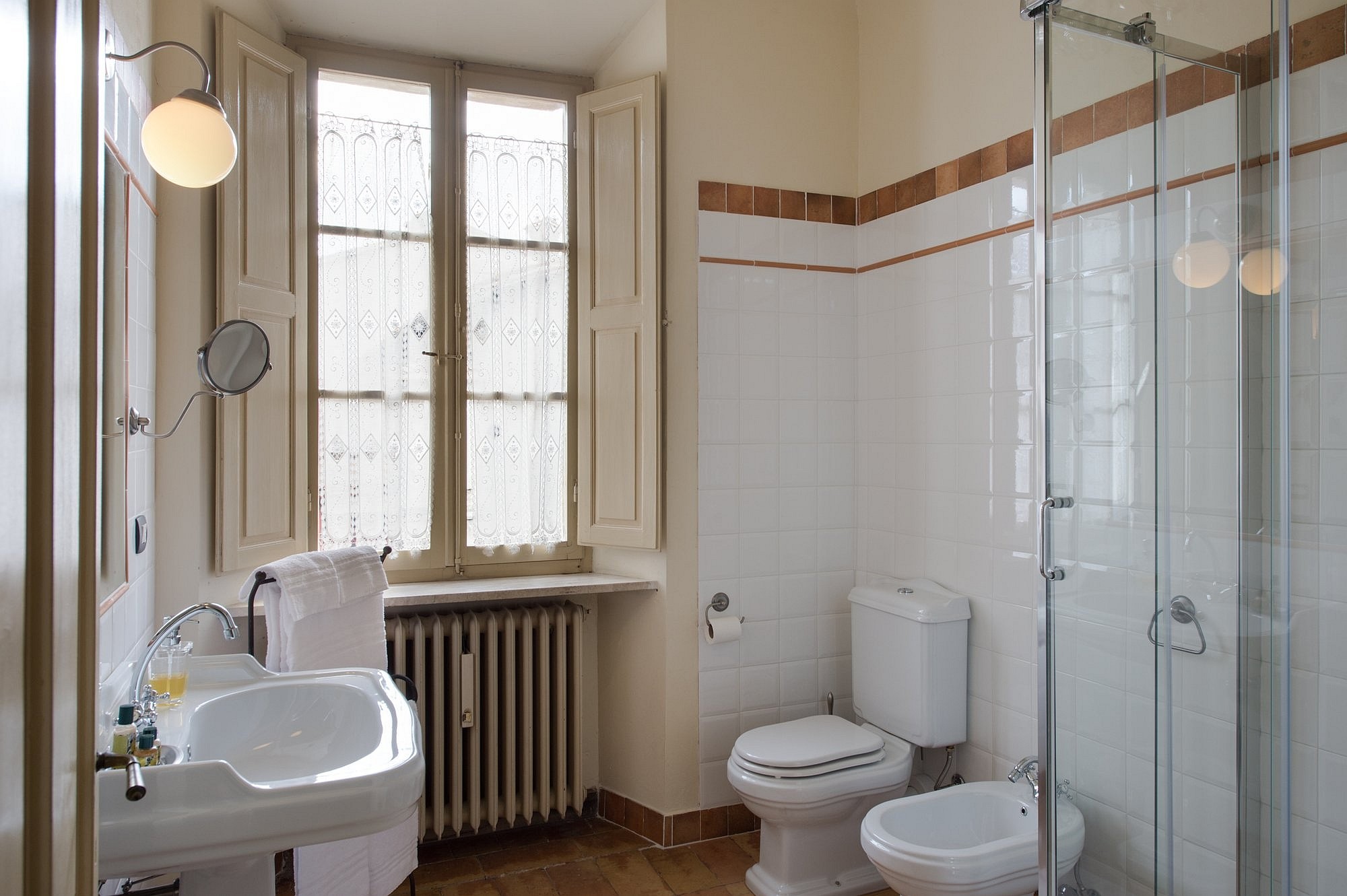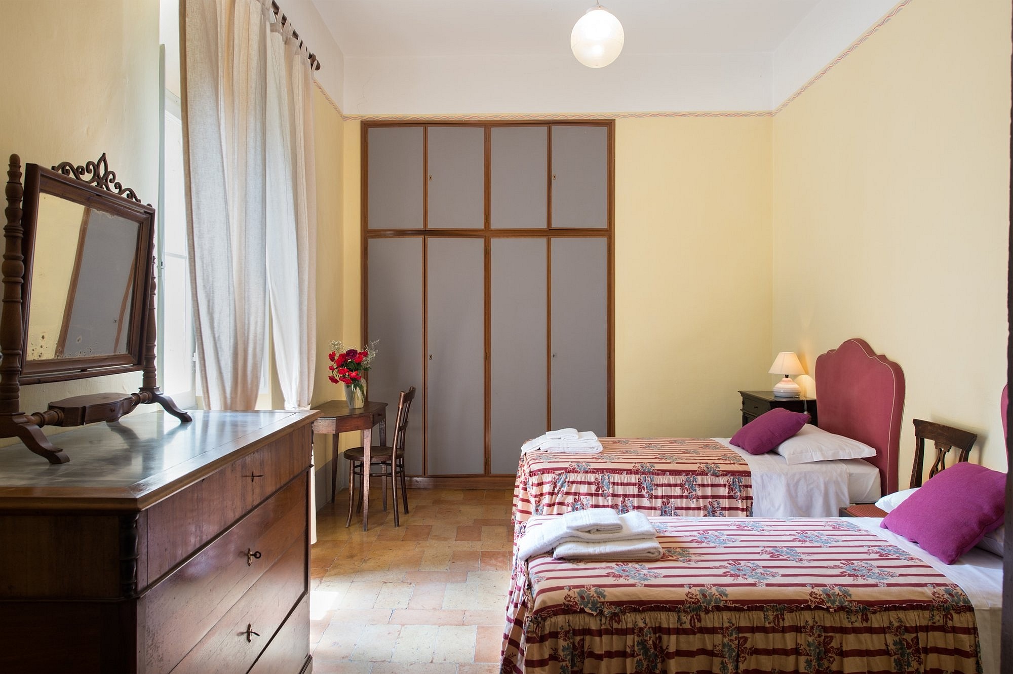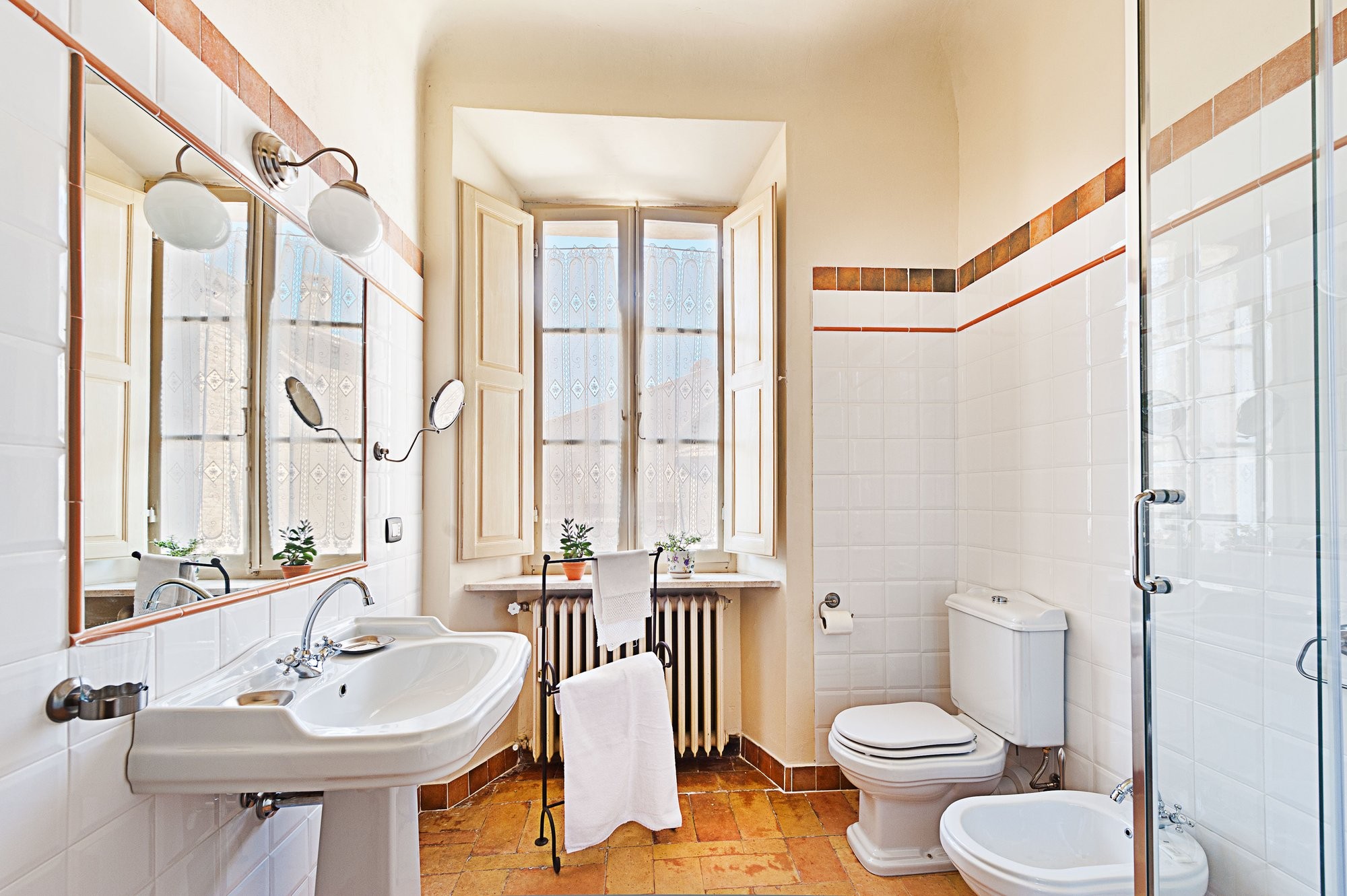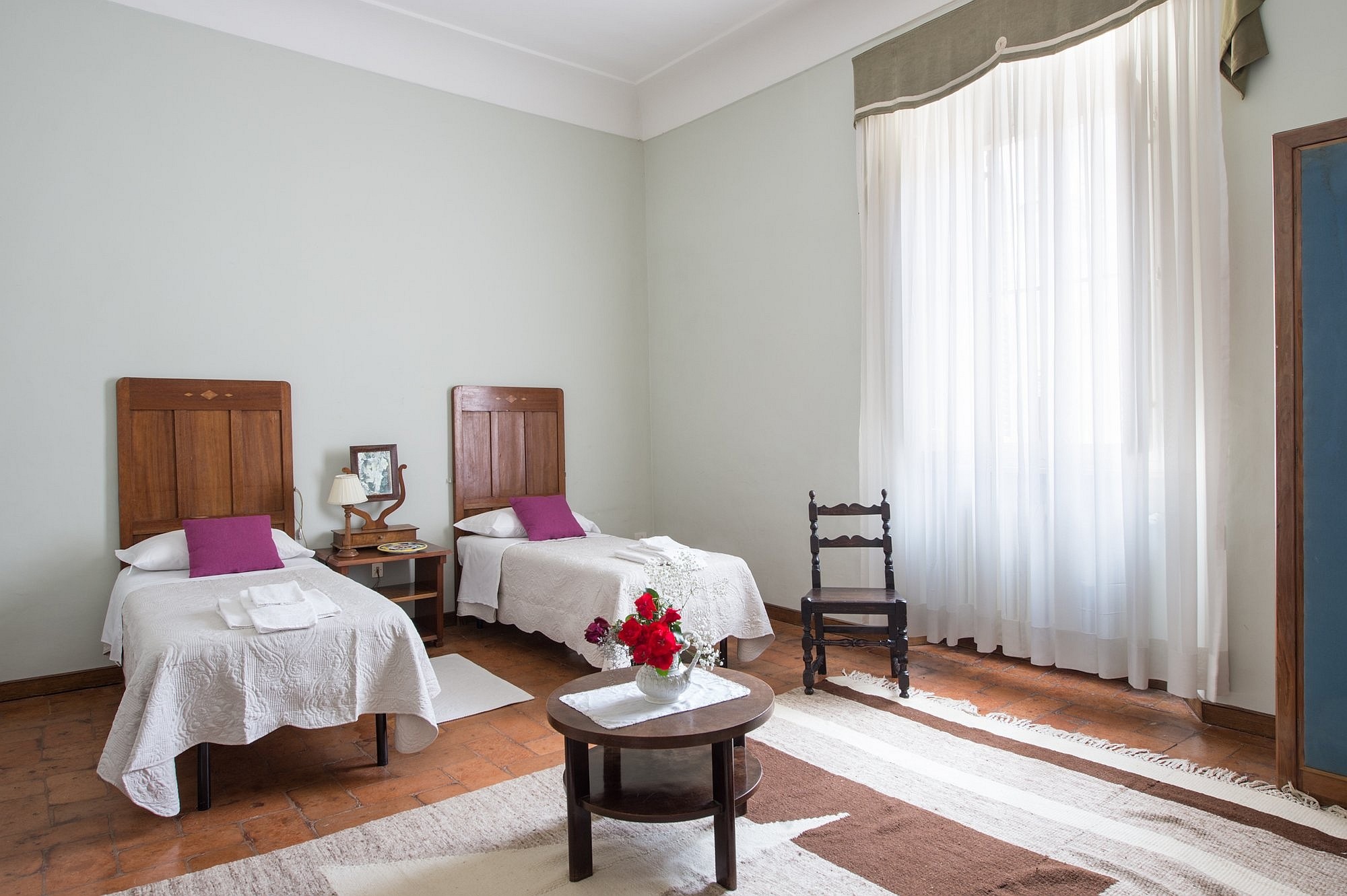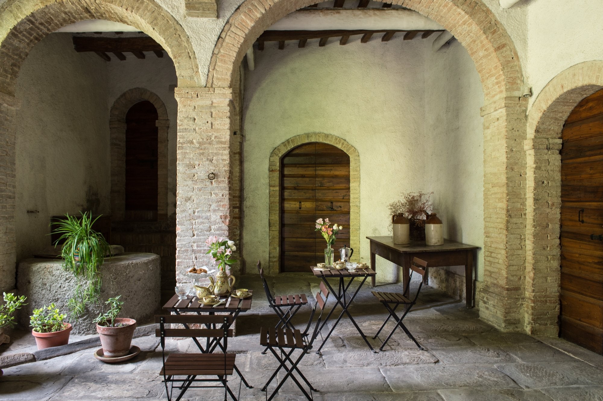 Der Palazzo verfügt über sechs luxuriöse Doppel-Suiten, jede mit eigenem Charakter und Blick ins Grüne. Fresken, antike Terrakottaböden oder freiliegende Balken prägen die Räume. Moderne en-suite Bäder sind elegant renoviert, hohe Decken und große Fenster verstärken das Gefühl, in einer adeligen Residenz zu wohnen.