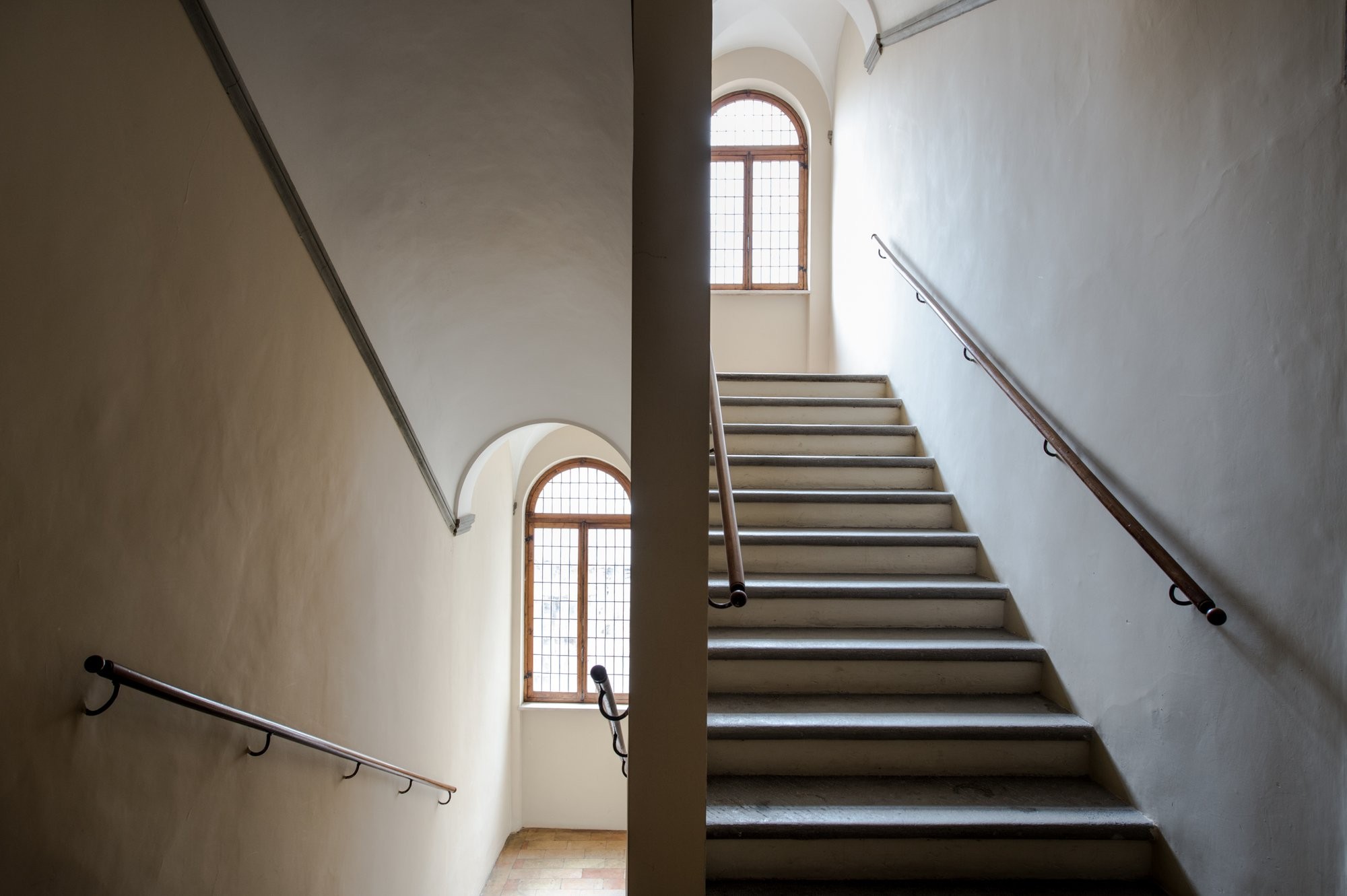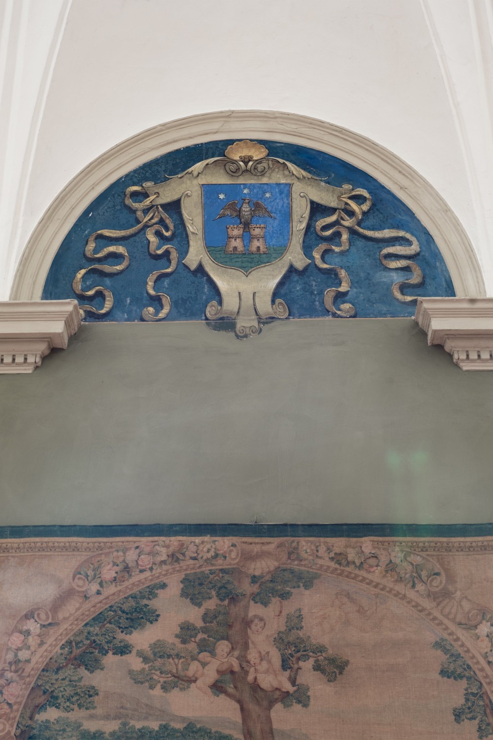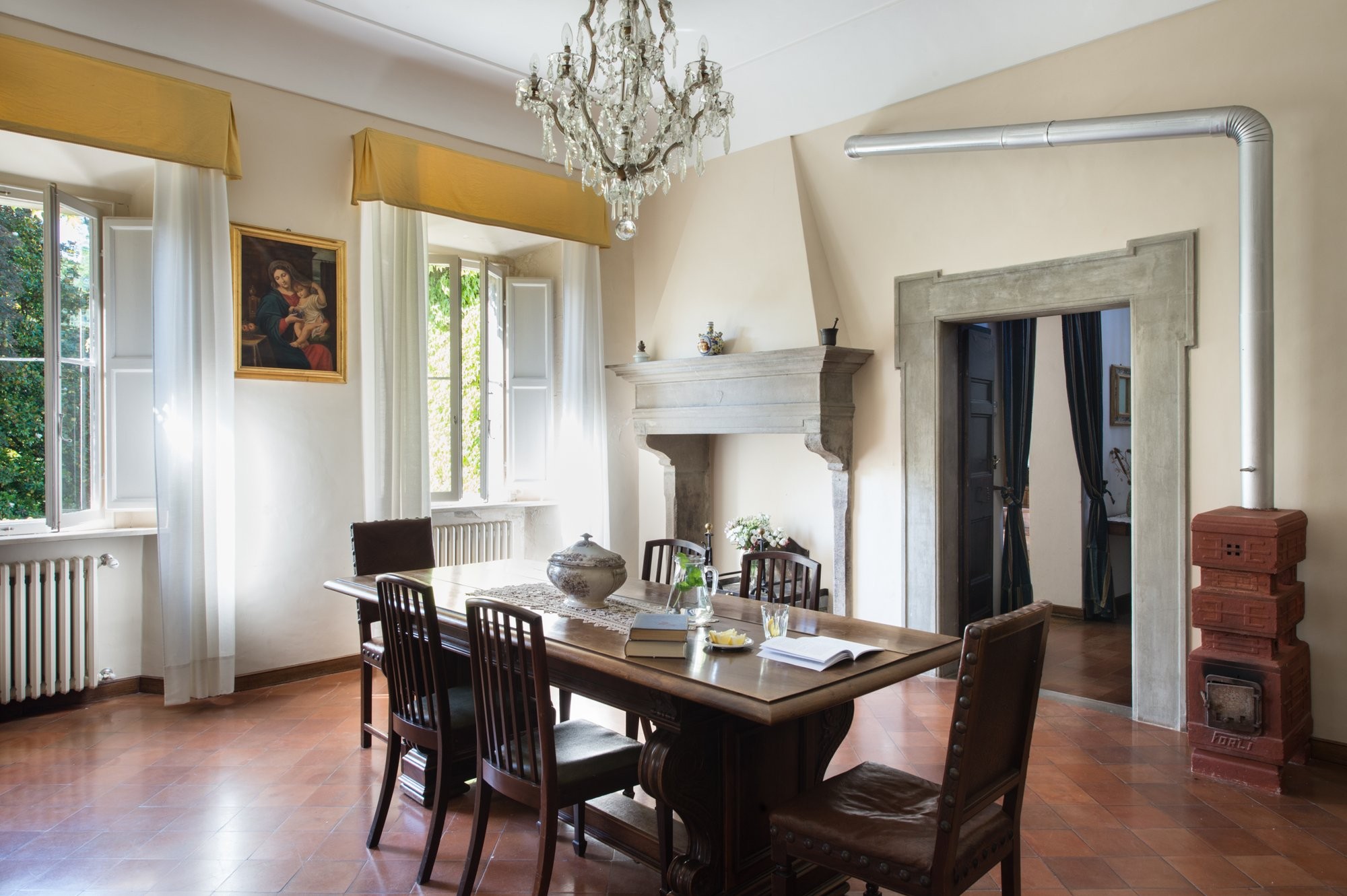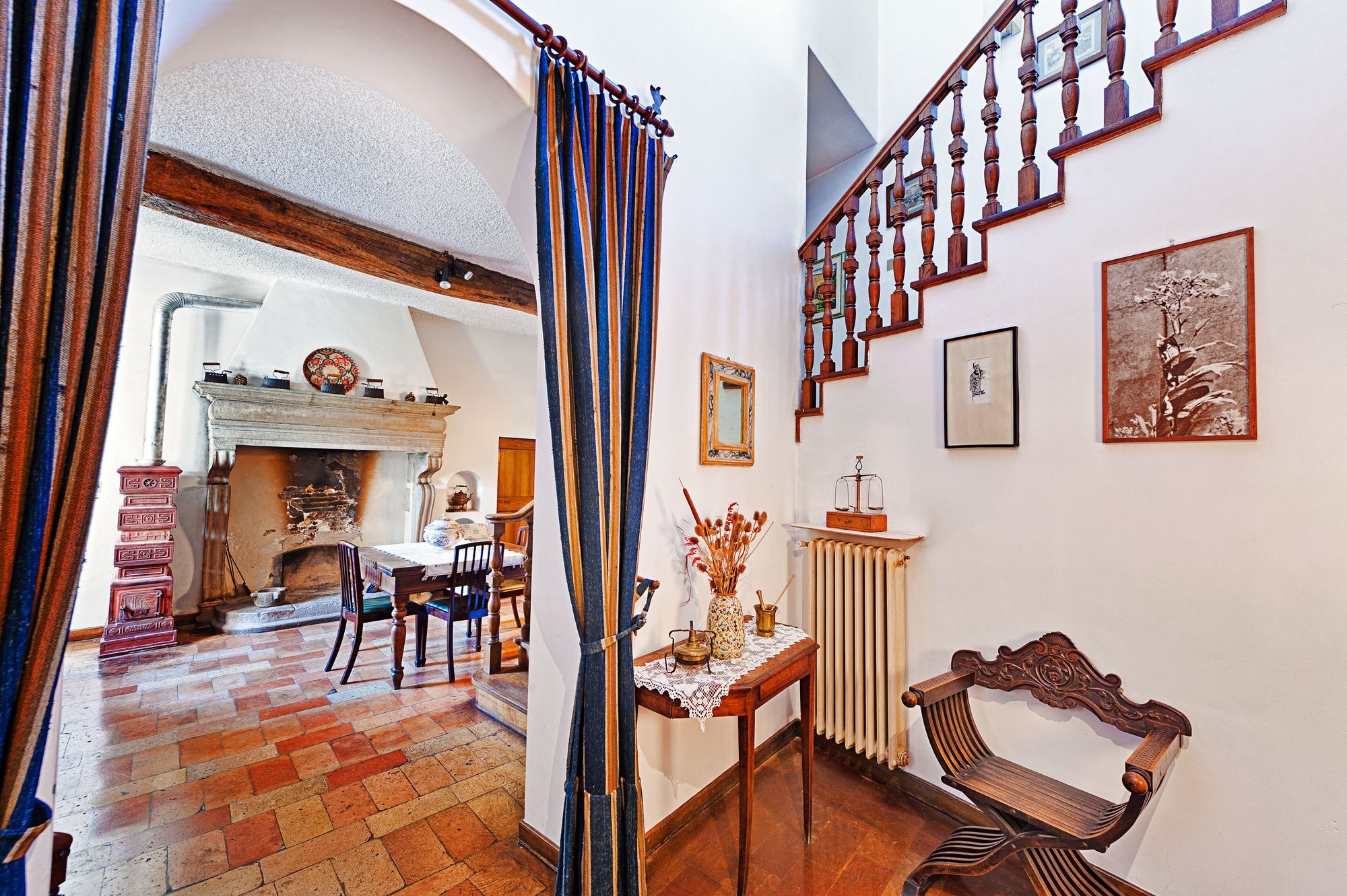 Der linke Flügel beherbergt den Piano-Nobile-Saal mit originalen Renaissance-Ornamenten, hohen handbemalten Fresken und Wänden, die 500 Jahre italienischer Geschichte erlebt haben. Der rechte Flügel erstreckt sich über zwei Stockwerke und verbindet großzügige Wohnräume mit historischem Charme und modernem Komfort. Licht fällt durch hohe Fenster auf gewölbte Durchgänge, Zierleisten und dekorierte Türen – jedes Detail erzählt von der adeligen Vergangenheit des Hauses.