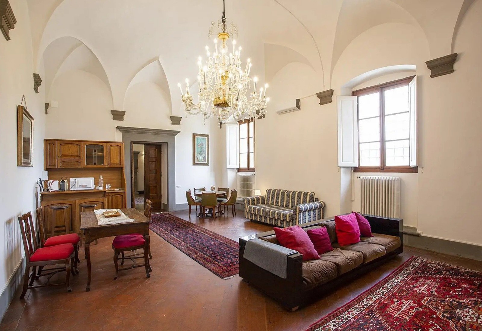 Das Gebäude entstand zwischen dem späten 15. und frühen 16. Jahrhundert nach Entwürfen des Architekten Rinuccini und war über Generationen im Besitz der Familie Ginori Conti. Es folgt den Prinzipien der Renaissance: symmetrische Gliederung, klare Proportionen und eine bewusste Lichtführung in den Haupträumen. Bei der Restaurierung wurden historische Elemente – Holzbalkendecken, Terrakottaböden, steinerne Tür- und Fensterrahmen – behutsam konserviert. Gleichzeitig wurden Dämmung, Akustik und technische Infrastruktur auf den heutigen Stand gebracht, ohne den historischen Charakter zu beeinträchtigen.
