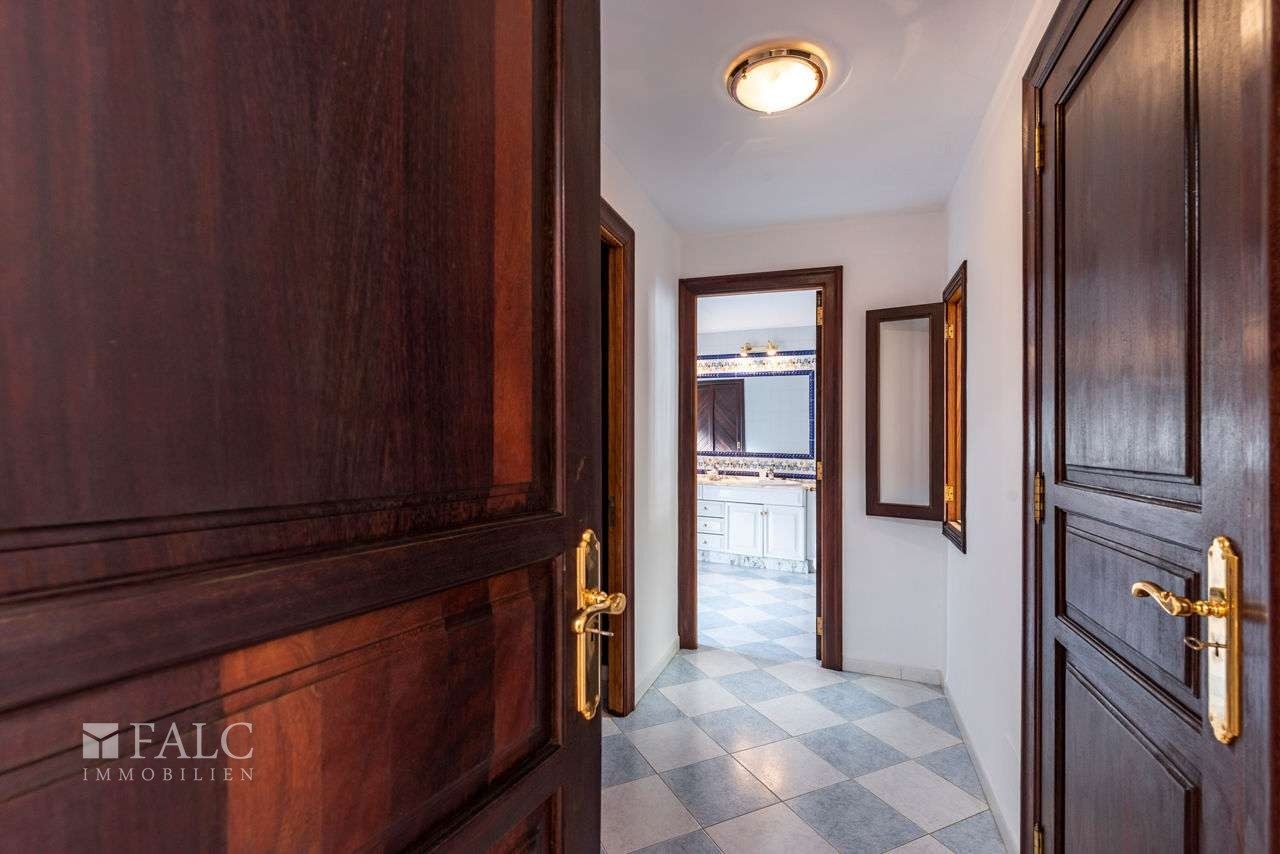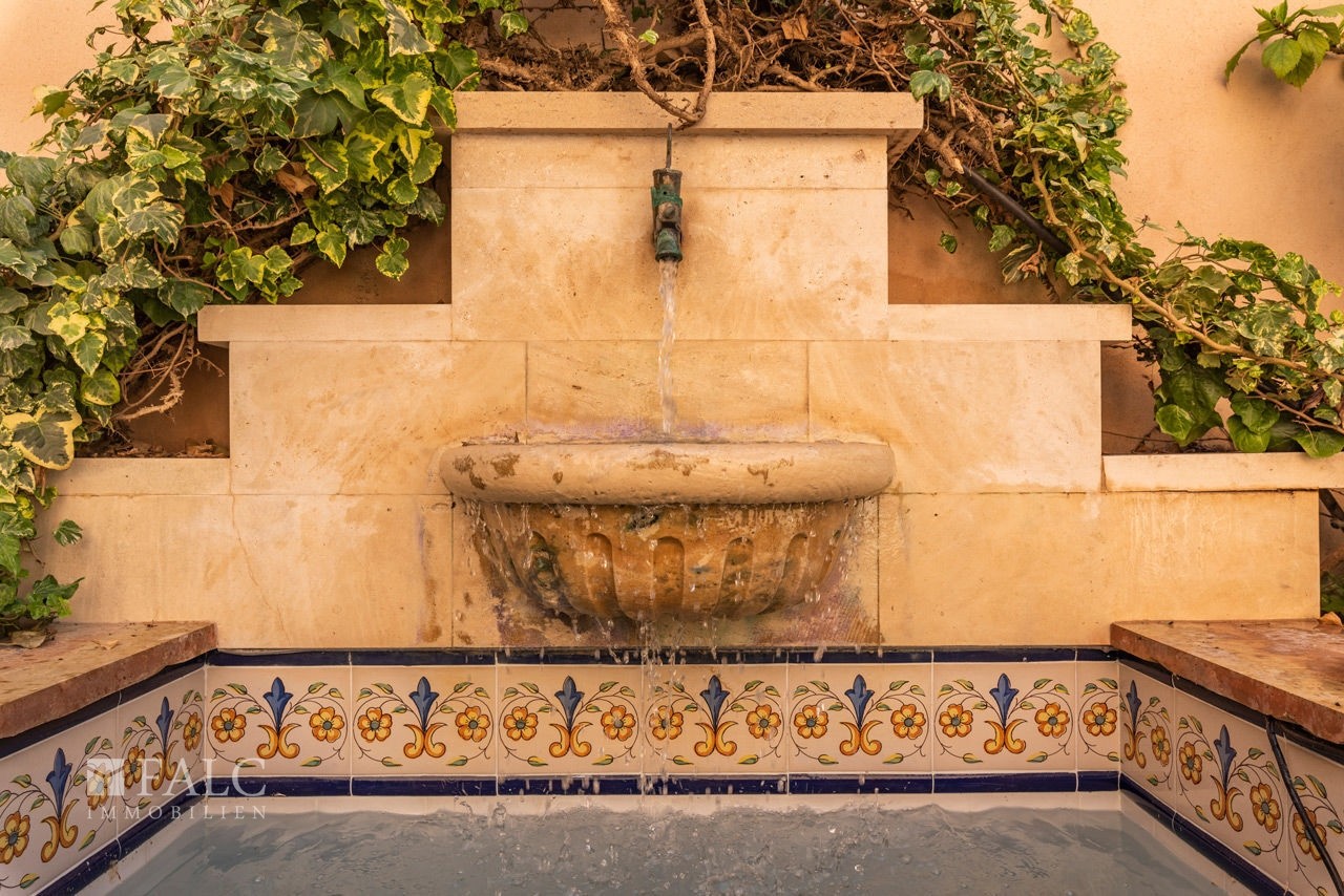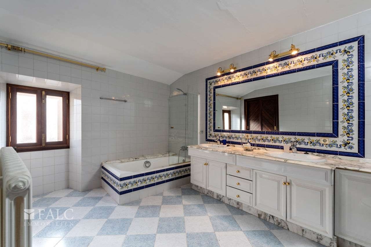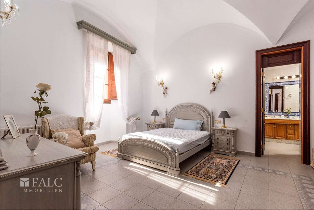 Sieben Schlafzimmer, vier Bäder – zwei davon en suite –, eine grosse Küche mit Kamin, ein grosszügiger Speisesaal, Weinkeller, Dachboden sowie ein Hauswirtschafts- und Abstellraum. Eine Garage mit elektrischem Tor bietet Platz für vier Fahrzeuge. Klimaanlage, Zentralheizung, Soundsystem, Alarmanlage und drei Brunnen sind vorhanden.