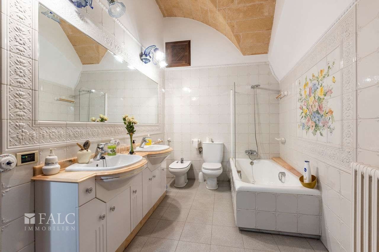 Mallorquinisches Herrenhaus/Stadtpalais im Ortskern von Campos, erbaut im 18. Jahrhundert und 2021 umfassend renoviert. Die Arbeiten wurden mit Sorgfalt auf die originale Architektur abgestimmt: Gewölbedecken, schwere Holzelemente und die typische Raumfolge des mallorquinischen Stadthauses sind erhalten. Die bebaute Fläche von rund 1.000 m² verteilt sich auf drei Etagen mit zwei Innenhöfen und einer Dachterrasse. Das Grundstück umfasst ca. 643 m².