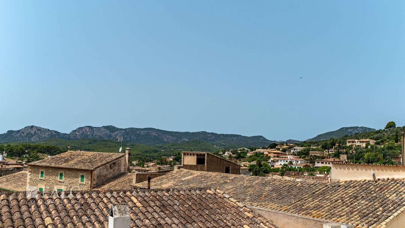 Die zweite Etage ist als helles Ein-Zimmer-Studio gestaltet und umfasst einen Wohn- und Essbereich, einen Schlafbereich, eine Küche sowie ein Bad. Von hier aus gelangt man auf eine Terrasse mit weitem Blick auf die Berge und das mallorquinische Dorf.