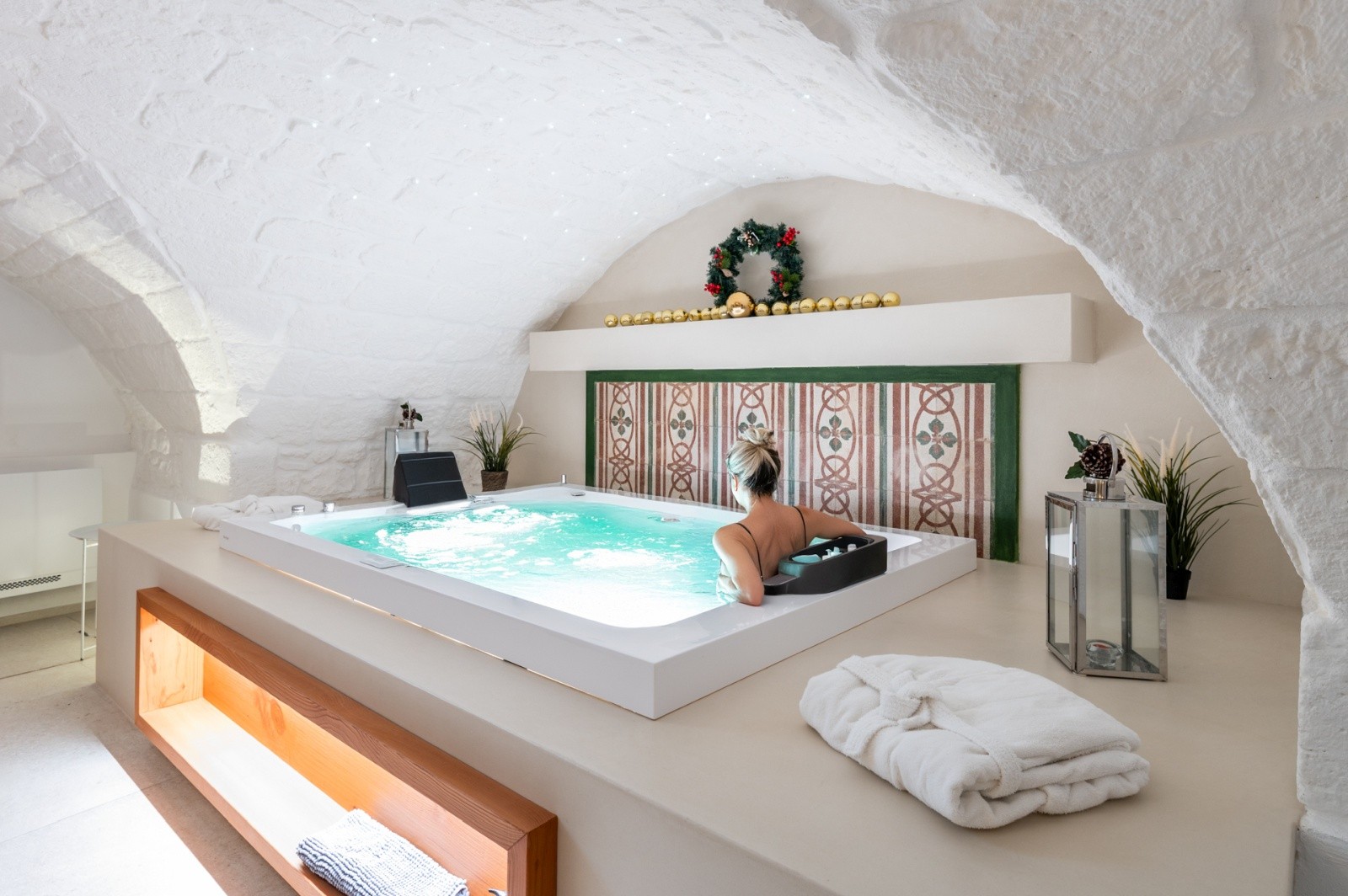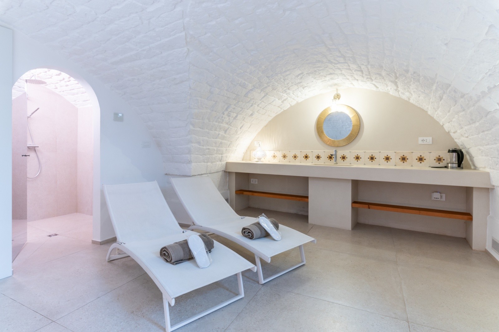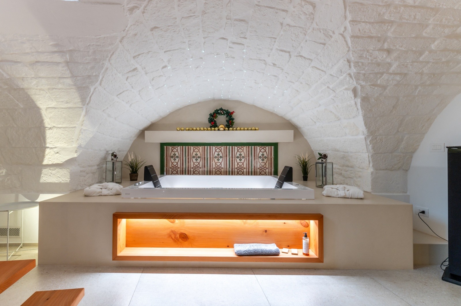 Mitten in der Altstadt von Ostuni befindet sich dieses sorgfältig renovierte Terracielo, das Wohnen auf mehreren Ebenen mit klarer funktionaler Trennung verbindet. Bis zu drei separate Zugänge erlauben unterschiedliche Nutzungsszenarien: als zusammenhängendes Wohnhaus oder als voneinander unabhängige Einheiten. Dadurch eignet sich die Immobilie sowohl für die Eigennutzung als auch für eine strukturierte Kurzzeitvermietung. Ein integrierter Wellnessbereich mit Whirlpool sowie mehrere nutzbare Terrassen mit Blick über die Altstadtdächer bis zum Meer ergänzen das Raumkonzept.