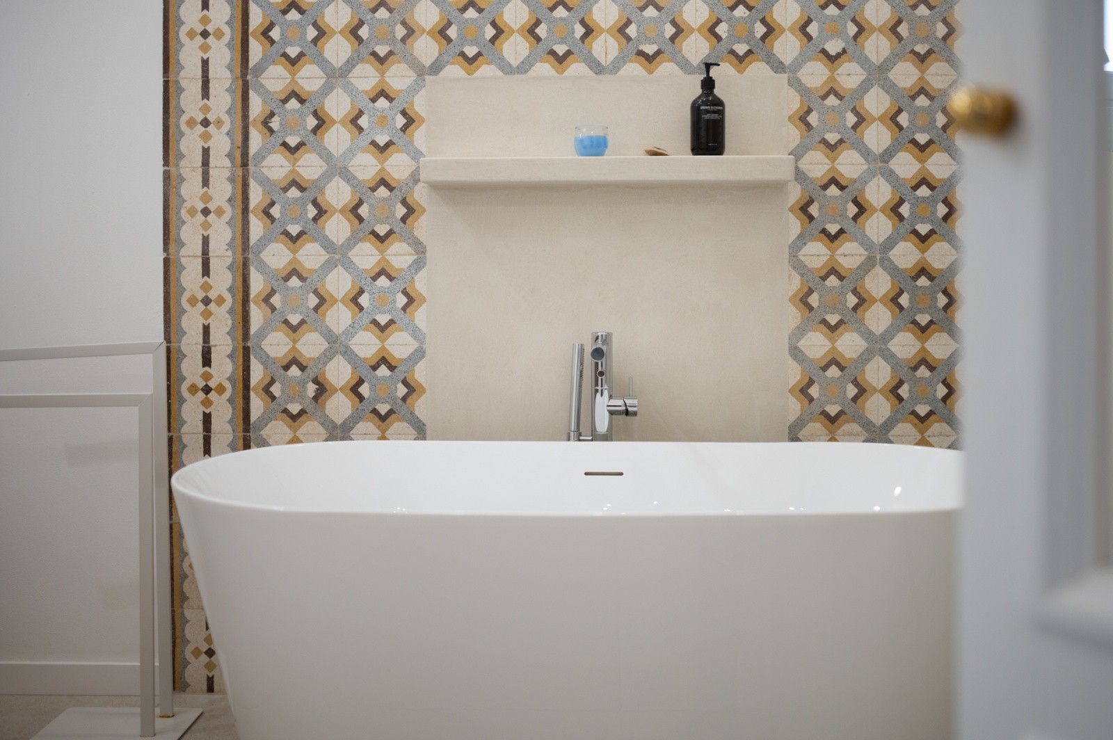 Das Erdgeschoss verfügt über einen eigenen Straßenzugang und ist als großzügige Suite ausgeführt. Ein Sitzbereich, eine separate Küche, ein Duschbad sowie ein Abstellraum bilden eine in sich geschlossene Wohneinheit. Über eine interne Holztreppe ist das Souterrain erreichbar, das als Spa-Bereich mit Sauna und Jacuzzi genutzt wird. Mit überschaubarem Aufwand ließe sich dieser Bereich auch als zusätzliches, separates Schlafzimmer ausbauen. Ein rückwärtiger Zugang ist ebenfalls möglich.
