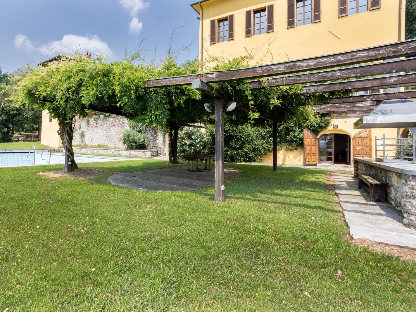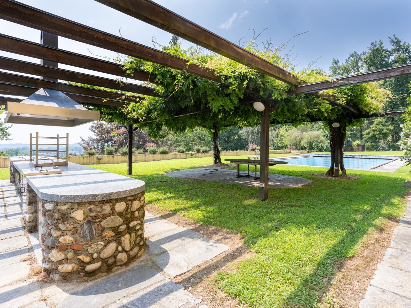 Der Pool liegt diskret im Garten. Die Arkaden spenden Schatten für lange Mittagessen. Die Außenküche funktioniert.
