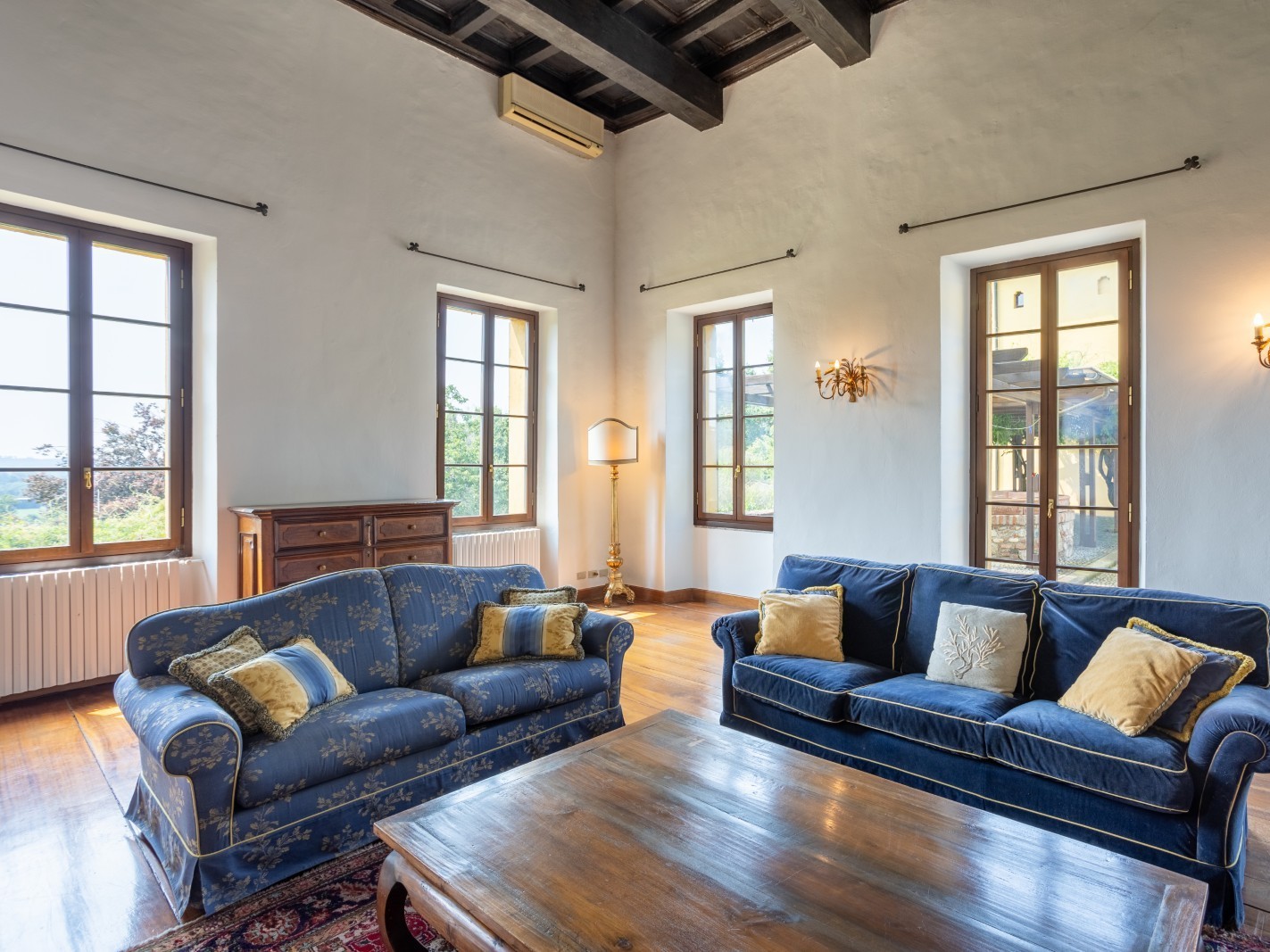 Innen: großzügige Salons, in denen Kamine nicht Dekoration sind, sondern Wärme geben. Terrakotta unter den Füßen, Balken über dem Kopf, die das Gebälk noch tragen, nicht nur zieren. Acht Schlafzimmer, jedes mit eigenem Bad, jedes mit dem Komfort, den man heute erwartet, und der Zurückhaltung, die man hier schätzt.
