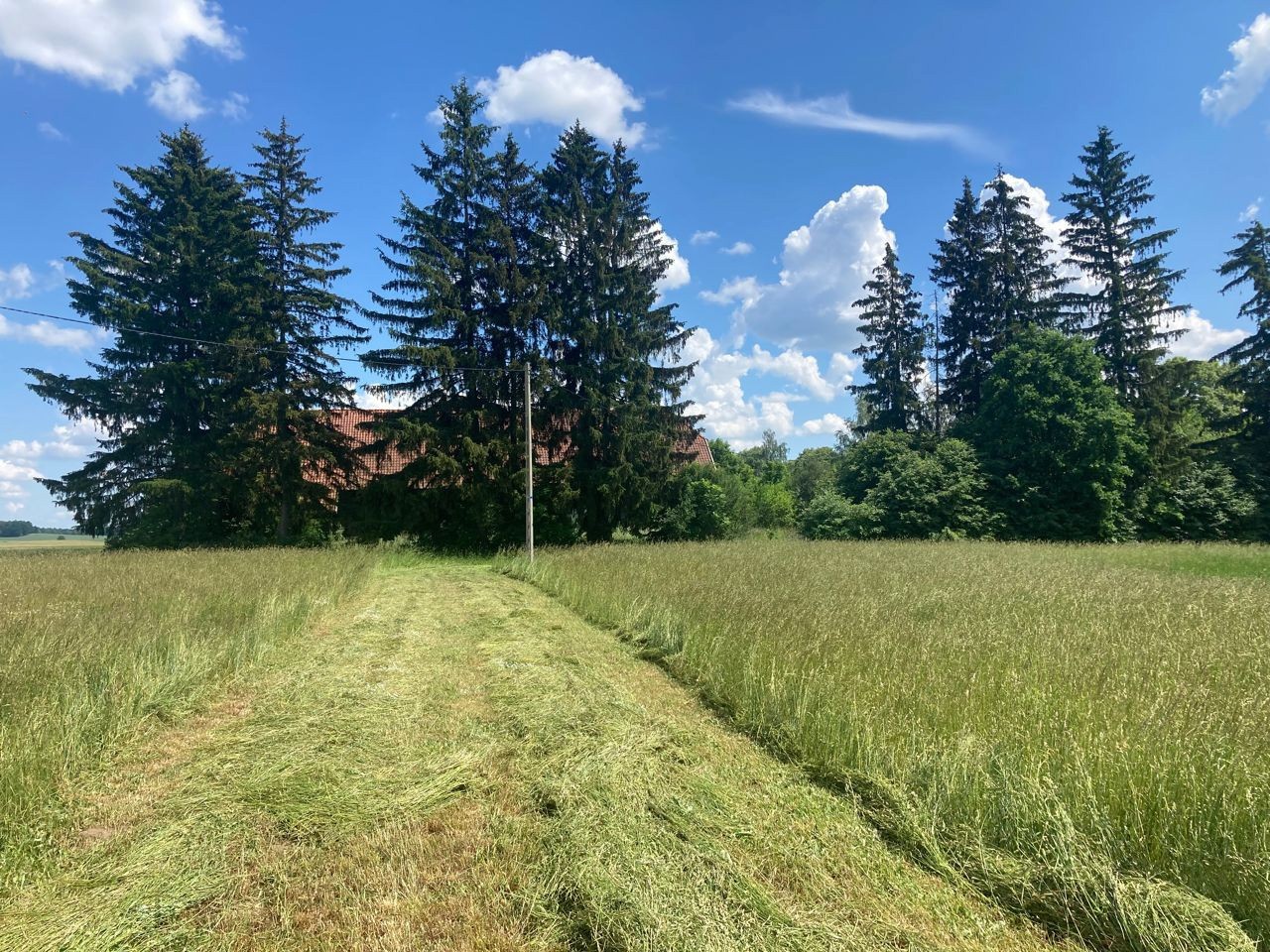 Es gibt keine direkten Nachbarn. Das Grundstück ist mit altem Fichtenbestand bewachsen. Die Umgebung ist ruhig und naturnah. Der Wald ist ca. 500 m entfernt.