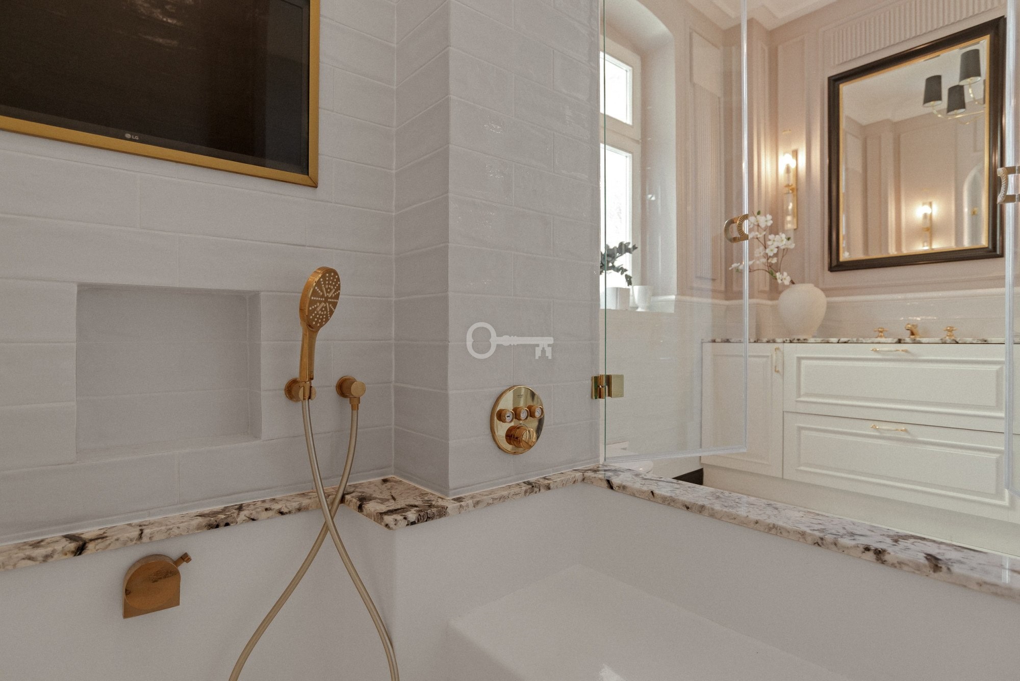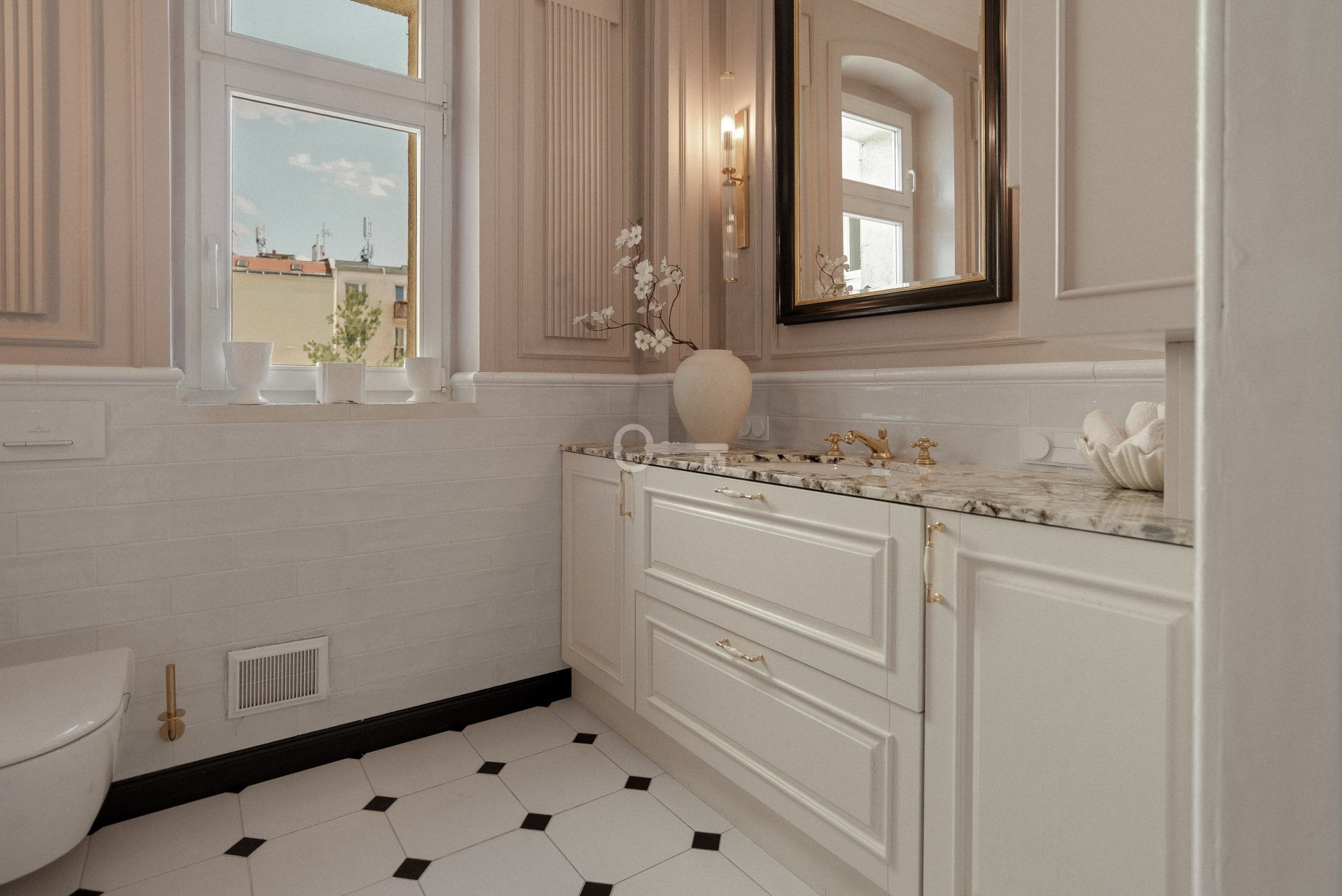 Das Apartment wurde vollständig renoviert und wird möbliert übergeben. Ausstattung: Böden und Einbauelemente aus Massiveiche, Naturmarmor und Quarzstein, maßgefertigte Einbaumöbel, Beleuchtung von Vistosi, Masiero und Kutek. Küche mit Geräten von Smeg und Elica, Sonos-Audiosystem, Bio-Kamin im Wohnzimmer, Badezimmer mit freistehender Wanne, Armatur Hansgrohe. Gasheizung. Hausgeld ca. 500 PLN monatlich. Vollständiges Wohnungseigentum mit Grundbucheintrag. Parkplätze in Gebäudenähe verfügbar.