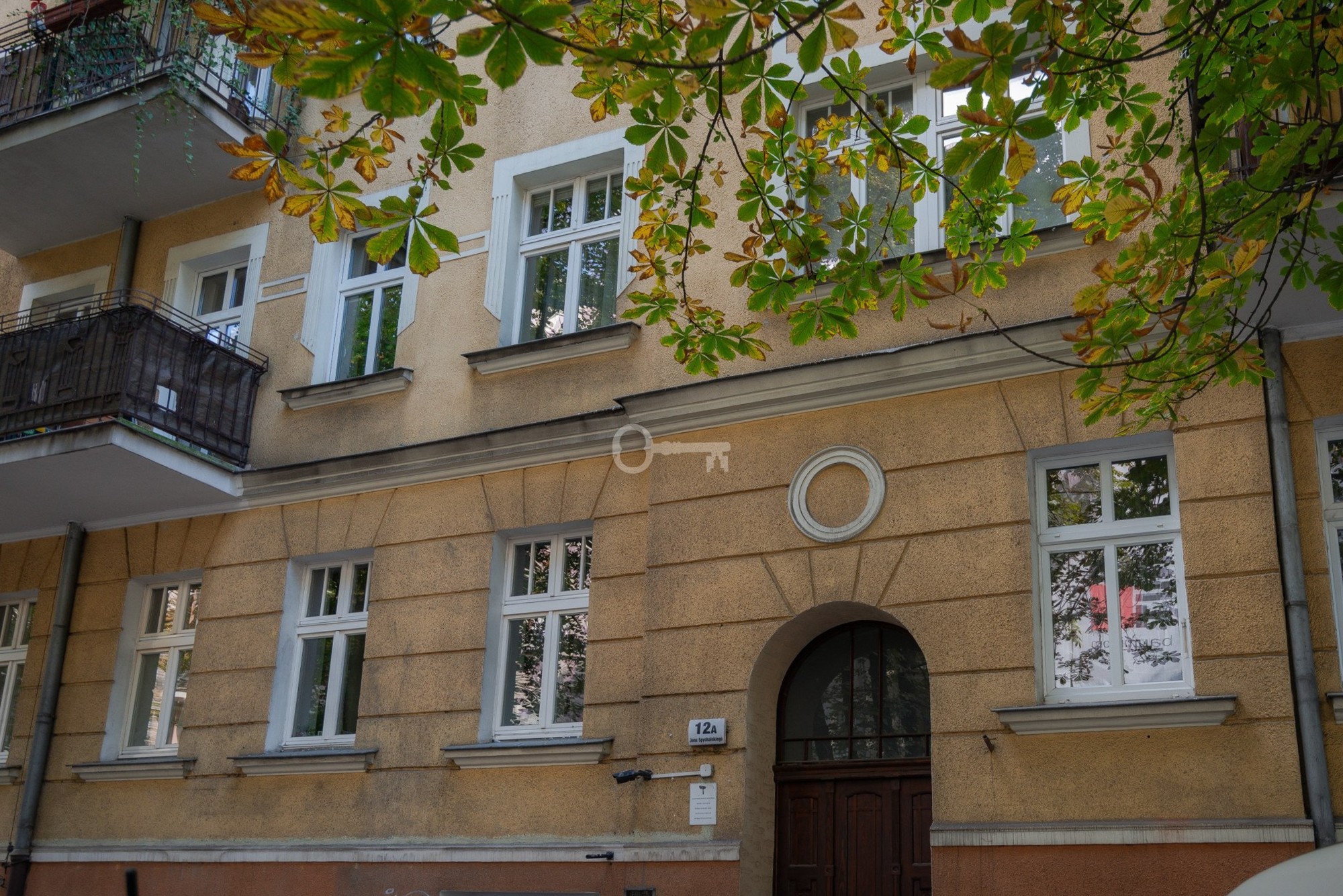 Die Wohnung befindet sich im zweiten Obergeschoss einem restaurierten Stadthaus ("Kamienica") aus dem frühen 20. Jahrhundert, zwischen Nowy Rynek und Rynek Wildecki. Das Gebäude ist fußläufig zur Innenstadt erreichbar, Straßenbahn- und Busverbindungen in unmittelbarer Nähe.