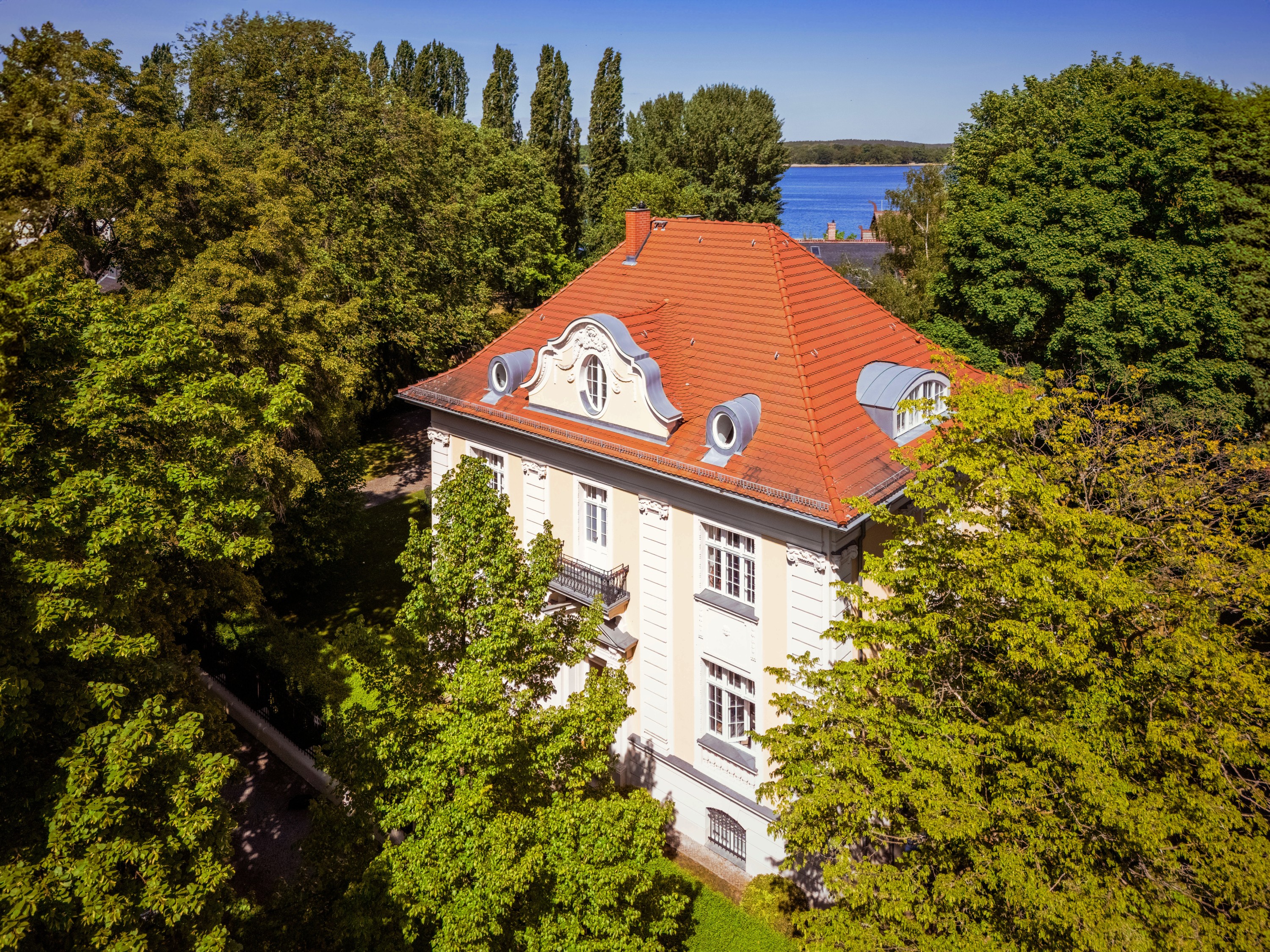 Diese Villa aus der Zeit um 1910 bietet mehrere großzügig ausgebaute Etagen und verbindet repräsentative Architektur mit stilvollem Wohnkomfort. Sie steht exemplarisch für eine Lebensart, in der klassische Baukunst, gehobene Wohnkultur und naturnahe Erholung in perfekter Harmonie zusammentreffen – in einem Rahmen, der Privatsphäre auf höchstem Niveau garantiert.