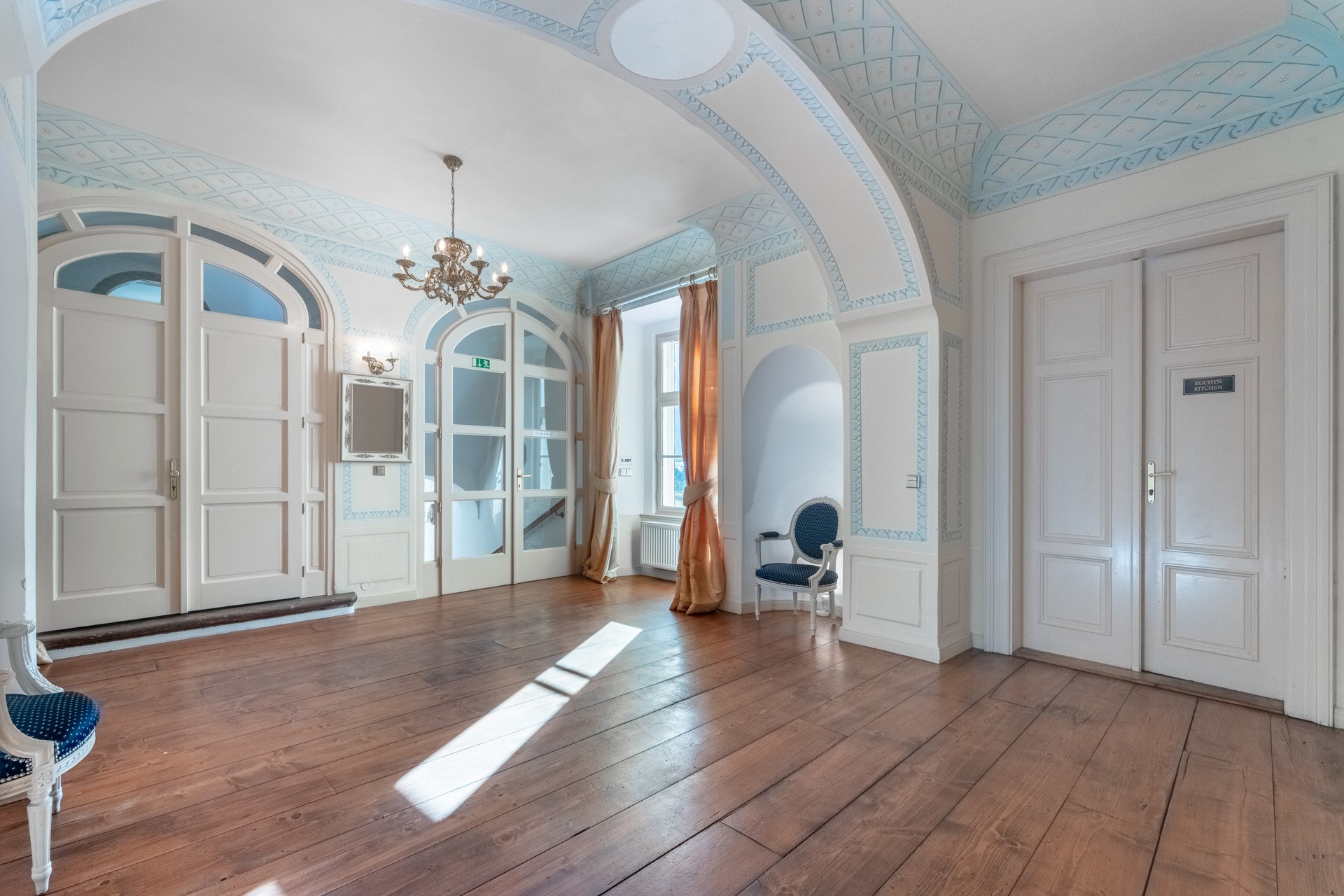 Von dieser Anhöhe in sonniger Südlage genießen Sie nicht nur den besten Blick auf die Landschaft, der ehemalige aristokratische Ansitz in Trnová bei Prag beeindruckt auch durch seine vielfältigen architektonischen Details: Fresken, Säulen, Wandmalereien, Kassettendecken und edle Skulpturen umgeben Haus und Garten.