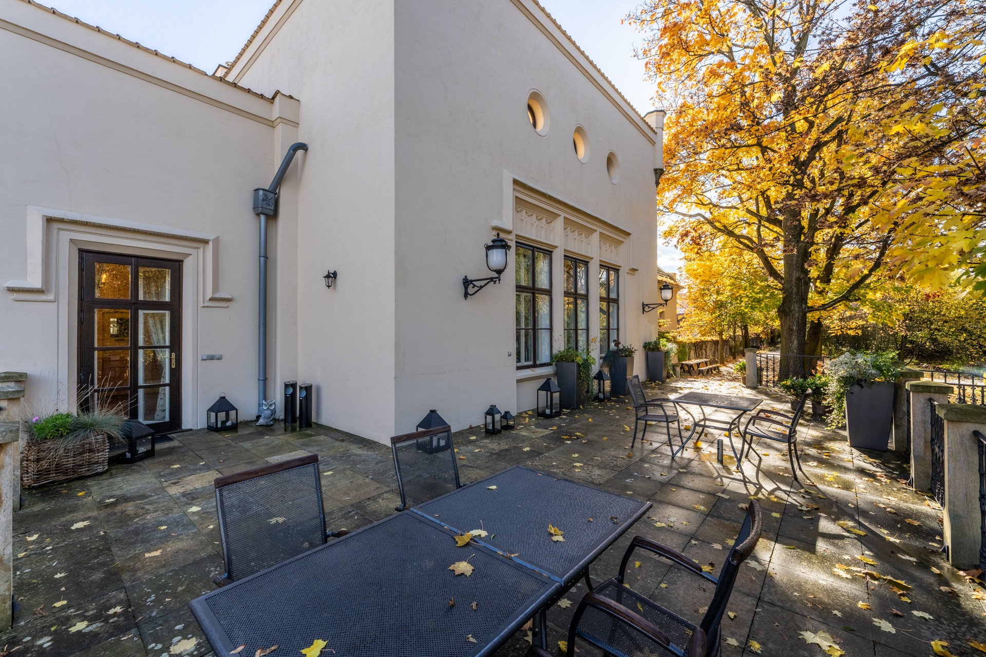 Ursprünglich im 18. Jahrhundert als Jagdhaus und Sommerresidenz erbaut, wurde das Gebäude zu Beginn des 19. Jahrhunderts in ein repräsentatives Wohnhaus umgestaltet, was ihm sein heutiges Erscheinungsbild verlieh. Das neugotische Herrenhaus ist vollständig eingefriedet und bietet absolute Privatsphäre. Es liegt in einer ruhigen, grünen Wohnlage, gleichzeitig erreichen Sie das Zentrum von Prag in wenigen Minuten mit dem Auto.