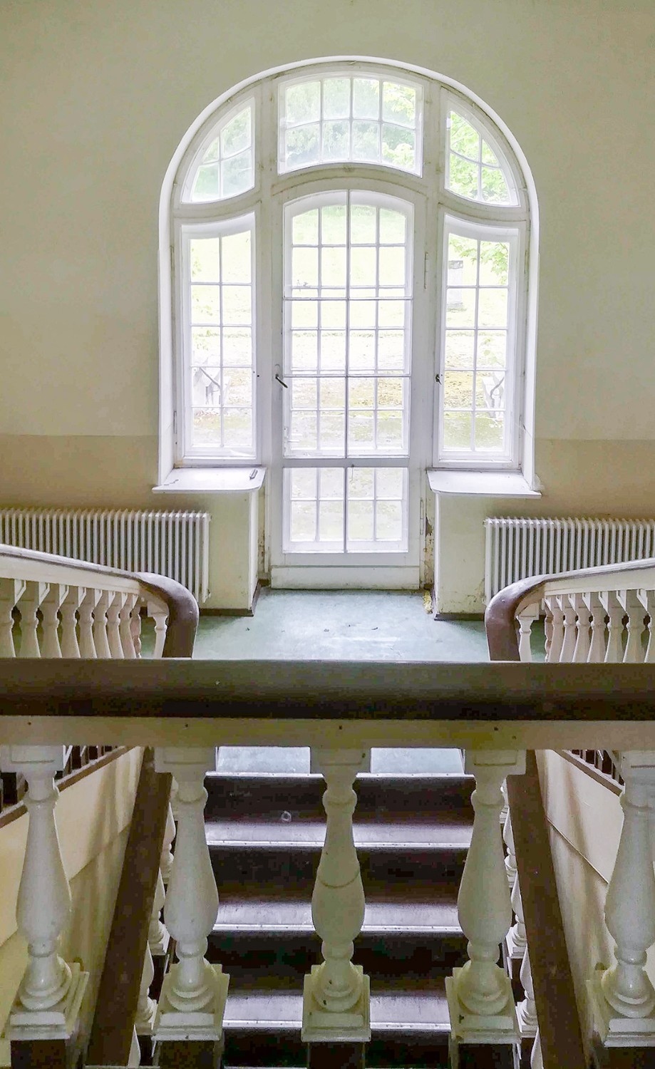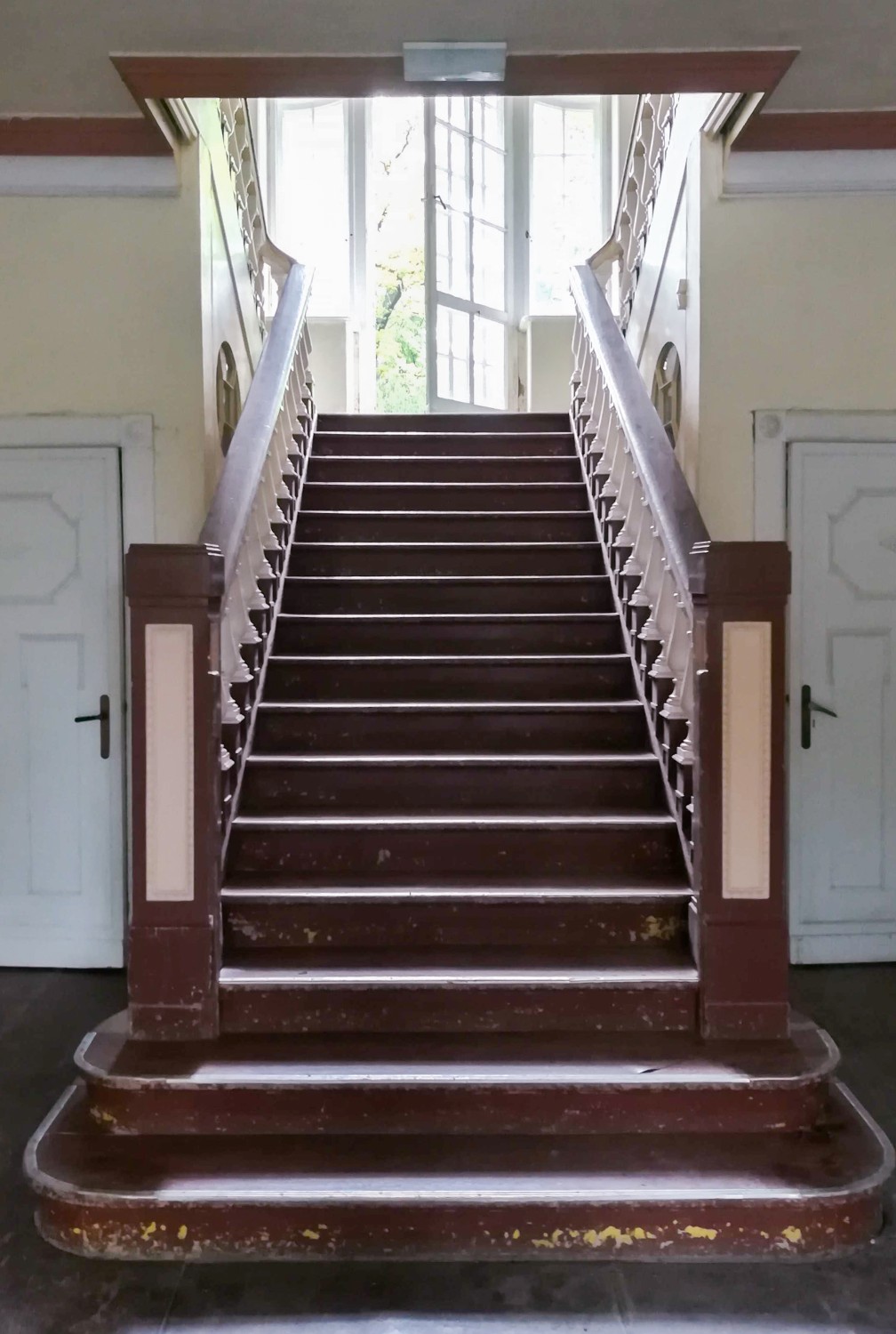 Die Raumdisposition ist großzügig angelegt: Zentral im Erdgeschoß und im ersten Obergeschoß befindet sich jeweils eine weite Halle. Diese sind über eine repräsentative, ab dem Zwischenpodest zweiläufige Treppe miteinander verbunden. Ergänzt wird die Erschließung durch ein zweites Treppenhaus (ehemalige Gesindetreppe) mit separatem Seiteneingang, was eine getrennte Nutzung der Stockwerke ermöglicht.