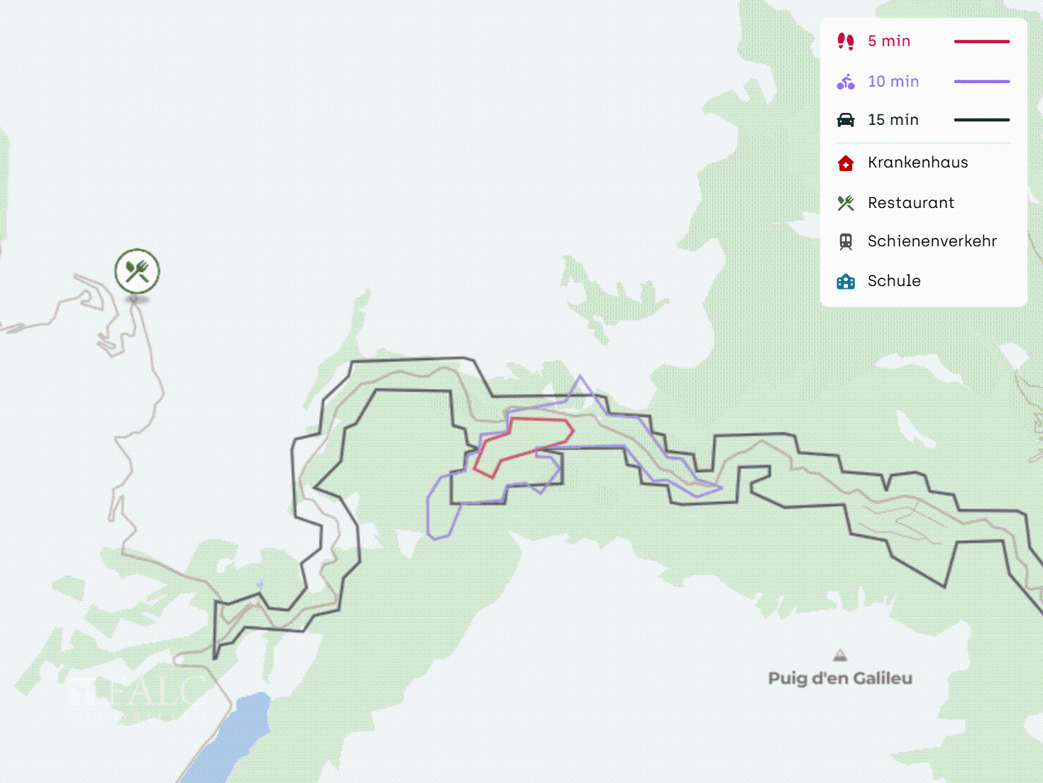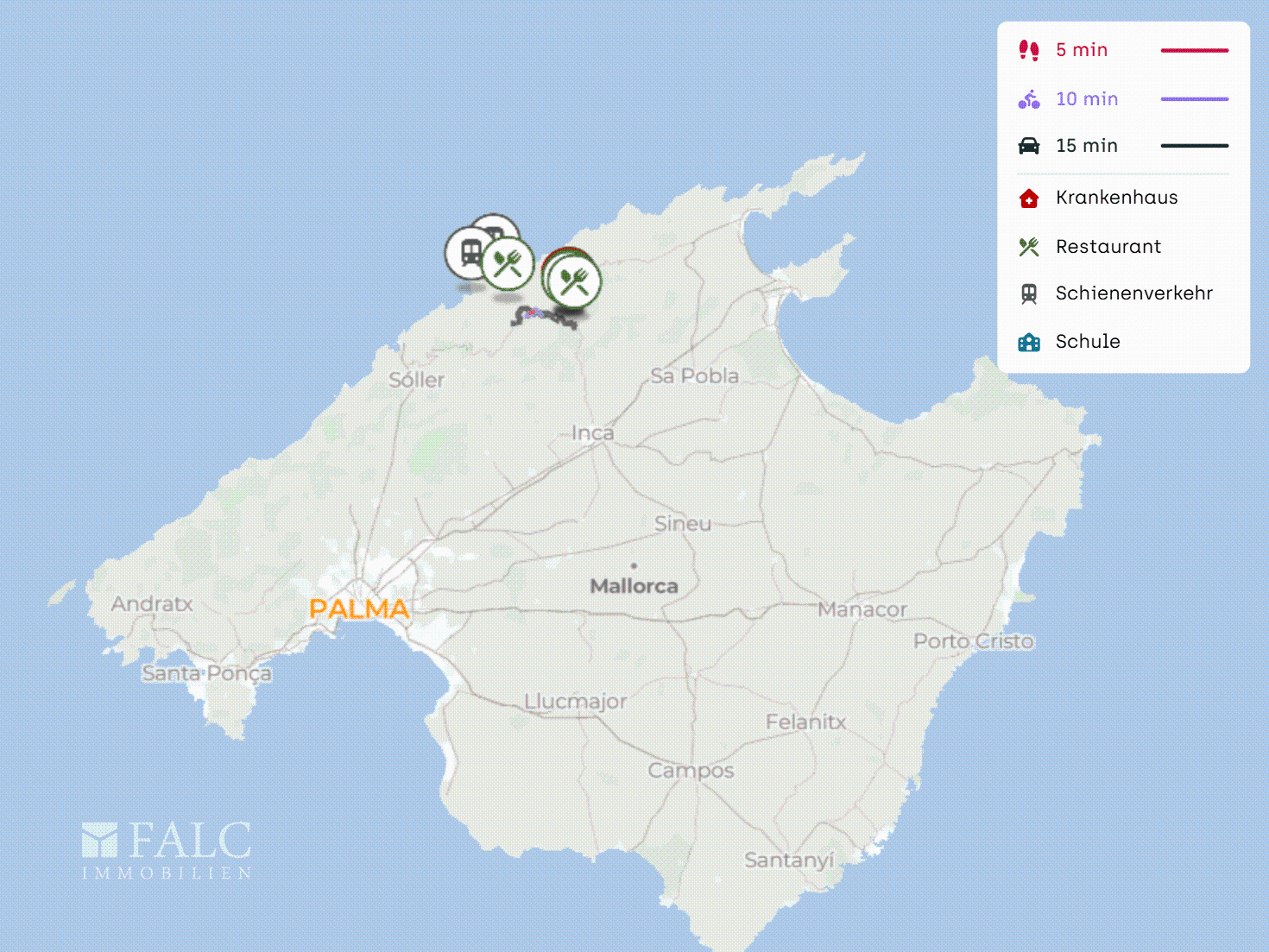 Die Lage bietet konsequente Abgeschiedenheit bei solider Erreichbarkeit: Das nächste Dorf ist in ca. 10 Fahrminuten erreichbar, der Flughafen Palma de Mallorca in etwa einer Stunde. Die Küste mit den Naturstränden Cala Tuent und Platja del Torrent de Pareis liegt in wenigen Kilometern Entfernung.