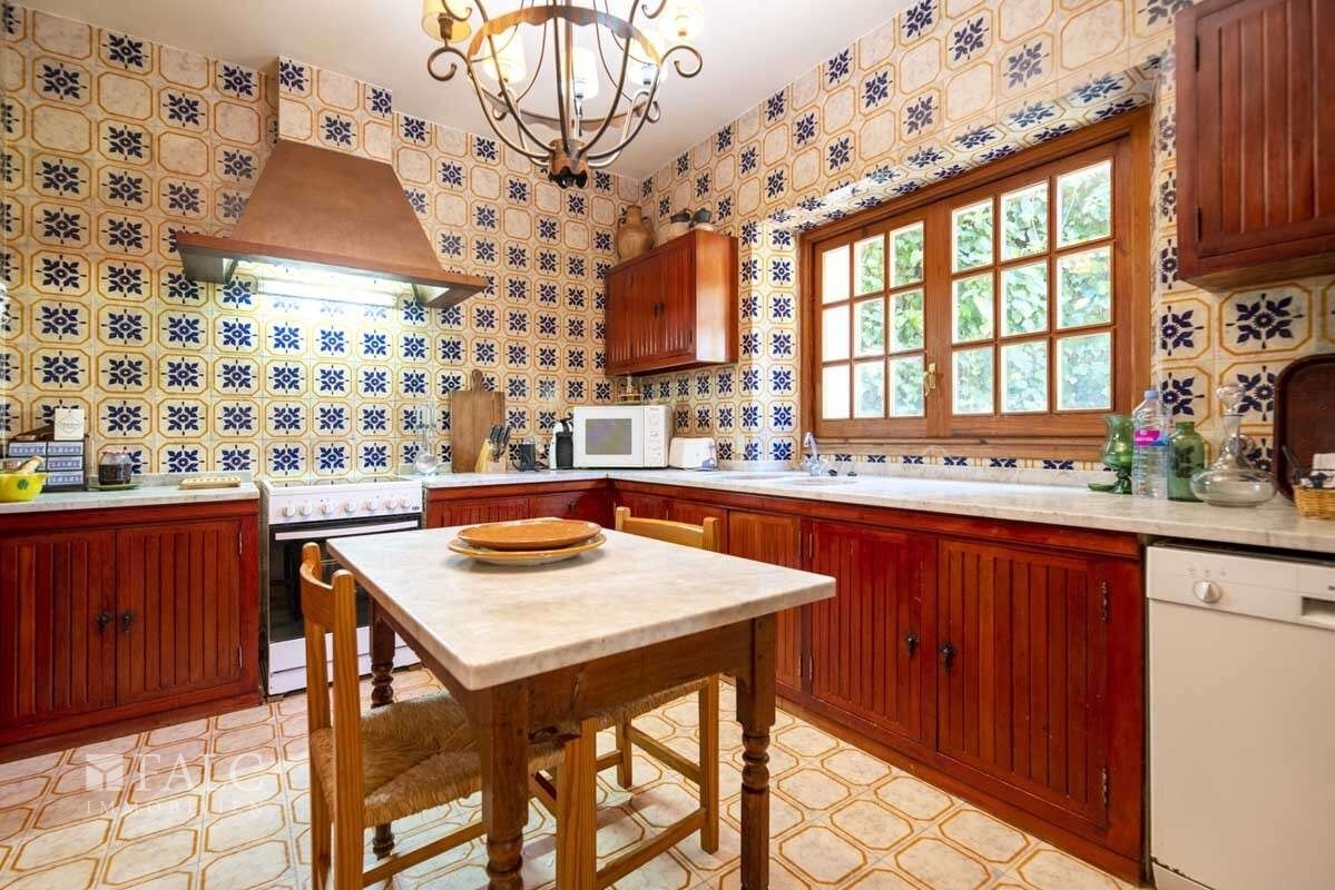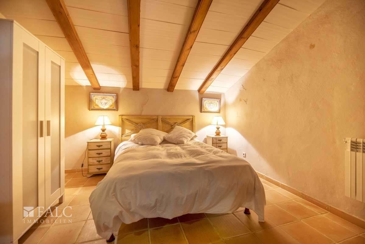Das Anwesen umfasst das Haupthaus, zwei Gästehäuser sowie weitere Nebengebäude, darunter ein Treibhaus und Garagen. Die bebaute Fläche beträgt ca. 1.522 m². Insgesamt verfügt die Finca über 12 Schlafzimmer, 10 Bäder, 2 Arbeitszimmer, 3 Küchen, mehrere Wohnbereiche, verschiedene Terrassen, einen Swimmingpool von 80 m² sowie einen Weinkeller. Wasser- und Stromversorgung sind gesichert.