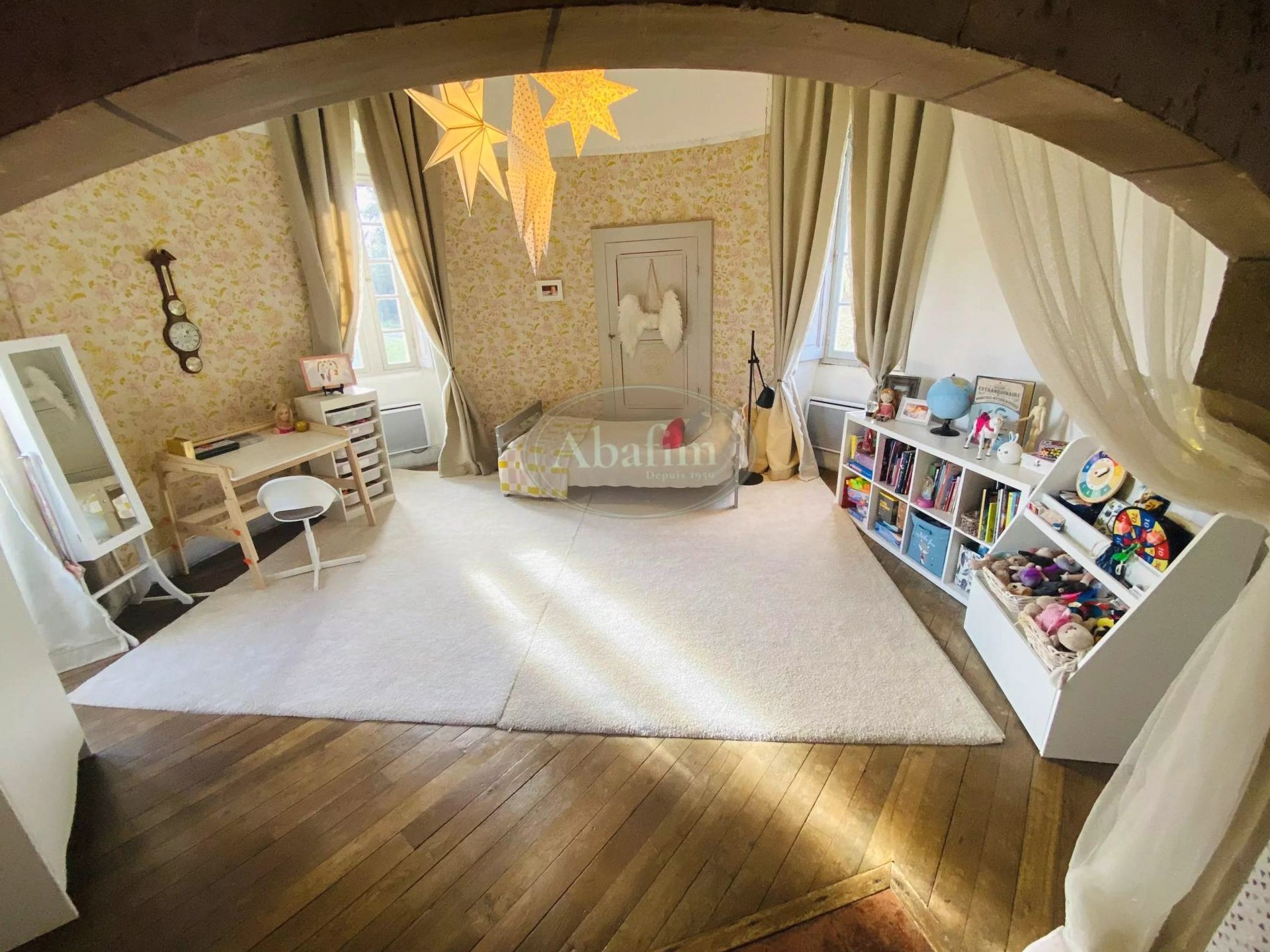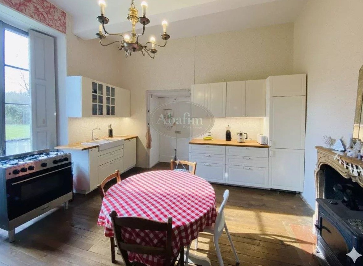 Ein weiterer 45 Quadratmeter großer Salon mit vollständiger Holzvertäfelung rundet die Enfilade der Empfangsräume ab. Die historische Küche bewahrt authentische Elemente aus dem 18. Jahrhundert: Steinböden, ein imposanter Kamin und teilweise sichtbares Mauerwerk erinnern an die ursprüngliche Nutzung.