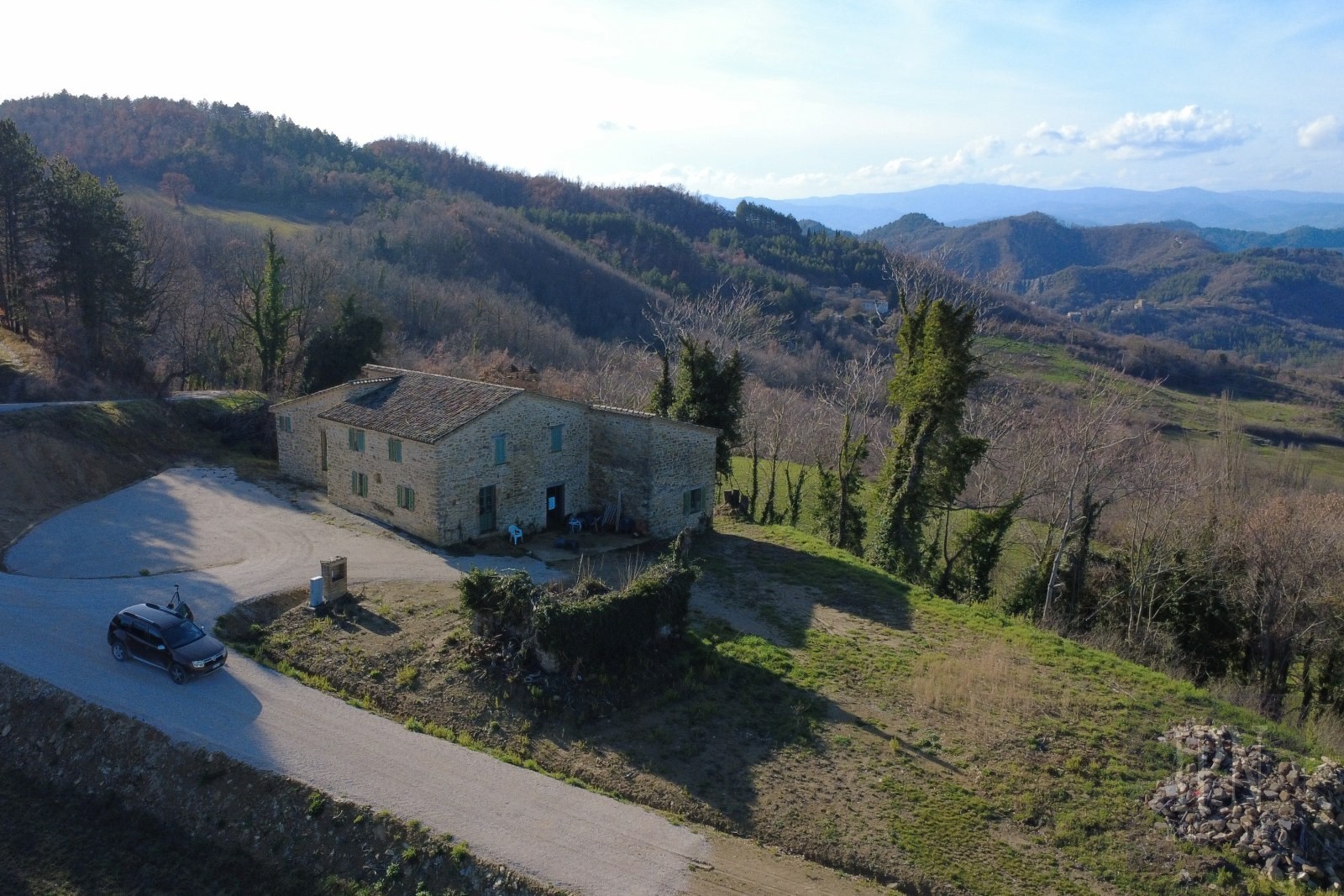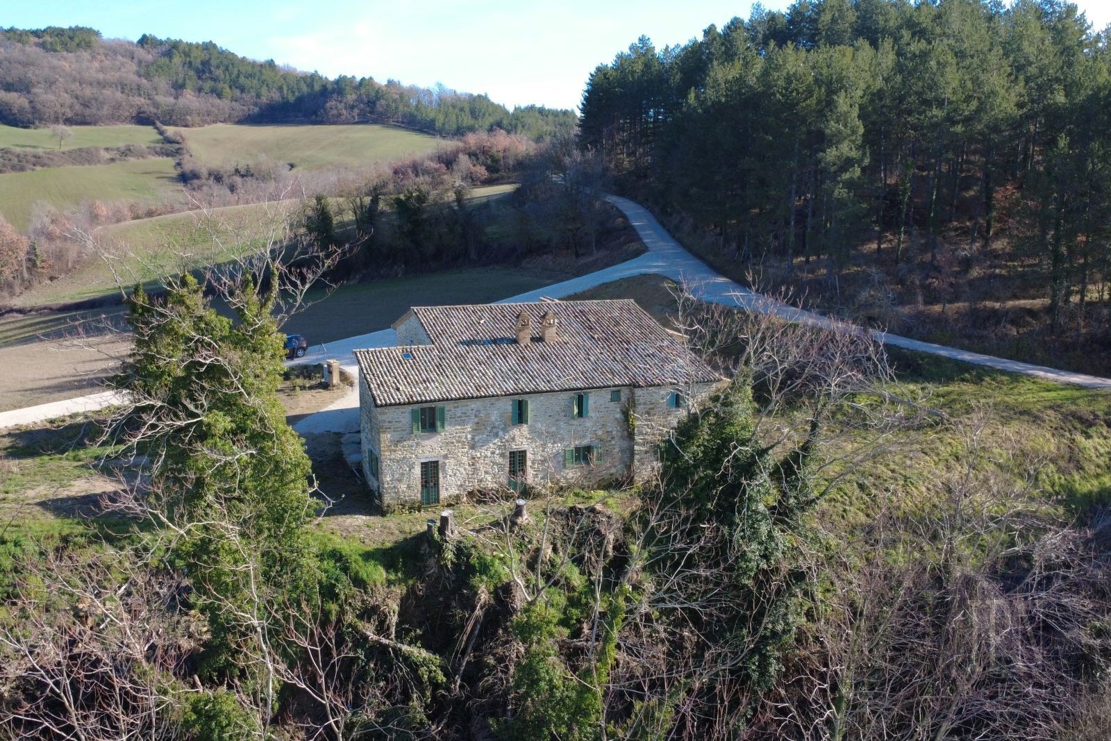 Questo casale in pietra di 270 mq, situato a 15 minuti da Umbertide sulle colline incontaminate della Carpina, offre 5 camere da letto e 5 bagni che possono essere personalizzati a proprio piacimento. Le ampie zone giorno presentano caratteristici soffitti con travi a vista e volte a botte. La casa è attualmente in fase di completamento, consentendo ai nuovi proprietari di personalizzarla secondo le proprie preferenze. È strutturalmente solida e il tetto è in buone condizioni. Situata a 1 chilometro da una tranquilla strada asfaltata, la proprietà è circondata da 5000 mq di terreno. C'è la possibilità di costruire una piscina e creare un bellissimo giardino. La posizione collinare offre una vista mozzafiato dall'alba al tramonto.