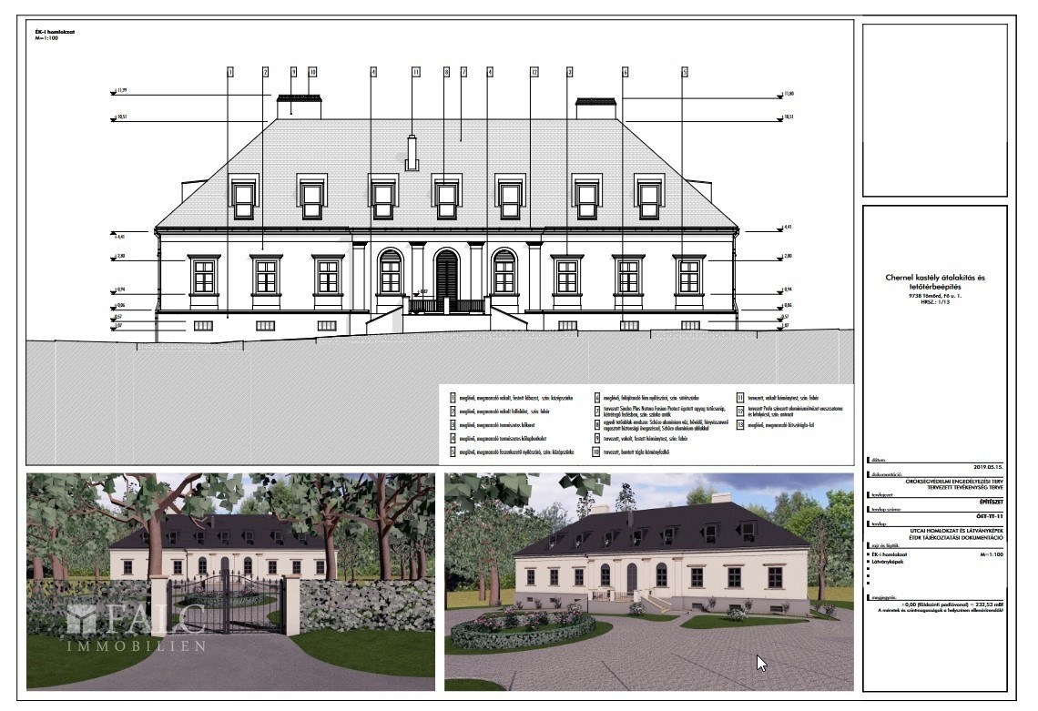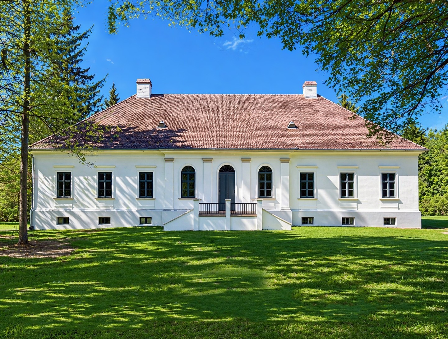 Das um 1780 von György Chernel errichtete Schloss präsentiert sich als bedeutendes Denkmal des klassizistischen Spätbarocks. Inmitten eines rund 5 Hektar (ca. 12,35 acres) großen Parks mit jahrhundertealtem Baumbestand bietet die massiv errichtete Ziegelanlage eine seltene Kombination aus historischer Substanz und bereits fortgeschrittener Sanierung. Seit 2017 wurde das dreigeschossige Gebäude außen fachgerecht instand gesetzt, wobei die gesamte Dachkonstruktion samt Eindeckung erneuert, die Fassade saniert und originalgetreue Fenster sowie Türen maßgefertigt wurden. Auch die Sockelabdichtung und die Natursteinauffahrt wurden bereits fertiggestellt.