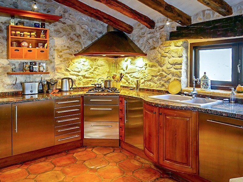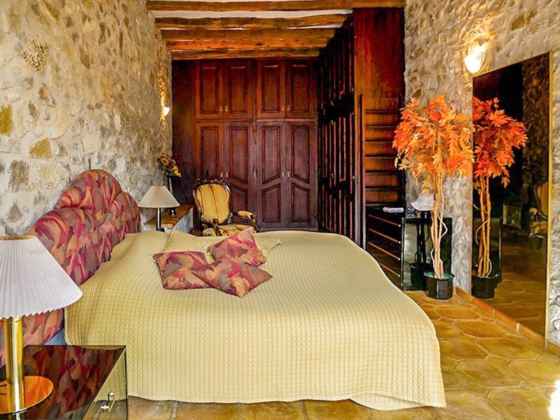 The property offers a total built area of 529 m² distributed over two floors, with 5 bedrooms and 3 bathrooms, pool & private garage of 111 m² ( great for a conversion into a guesthouse ). The structure retains its original character with restored oak beams sourced from a French castle, natural stone walls, handcrafted flooring, and antique hardwood doors. The living spaces are open and practical, with high ceilings and a fireplace, and the kitchen is fully equipped for everyday use. Central heating is installed.