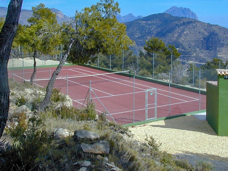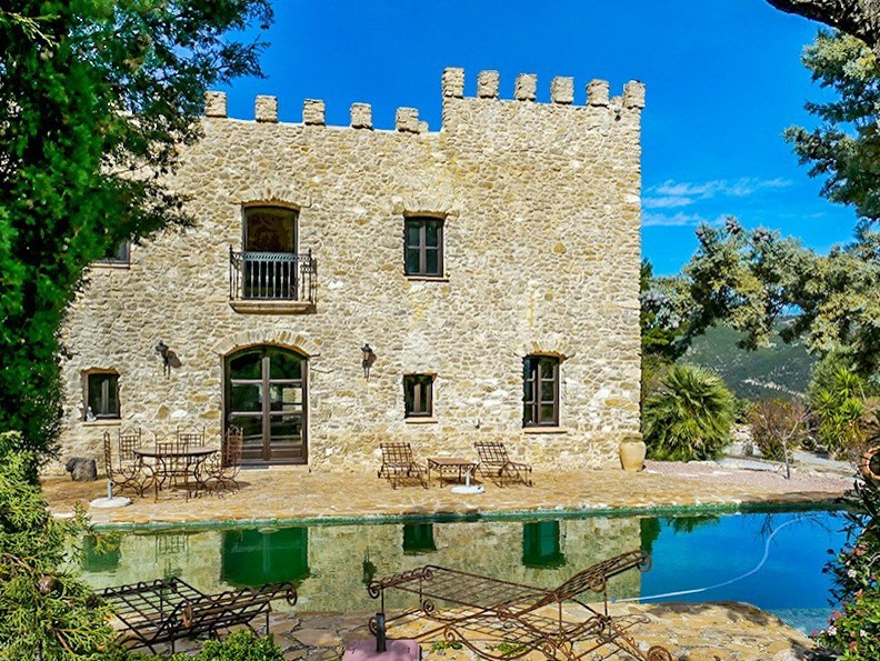 The estate is defined by complete privacy, with no immediate neighbours and uninterrupted views across mountains, valleys, and distant sea seen from the tennis court. The land extends across 40 hectares, offering space for agriculture, animals, or retreat-style use. Within the grounds there is a tennis court, a wine cellar, and an outdoor summer kitchen suitable for gatherings and long-term living.
