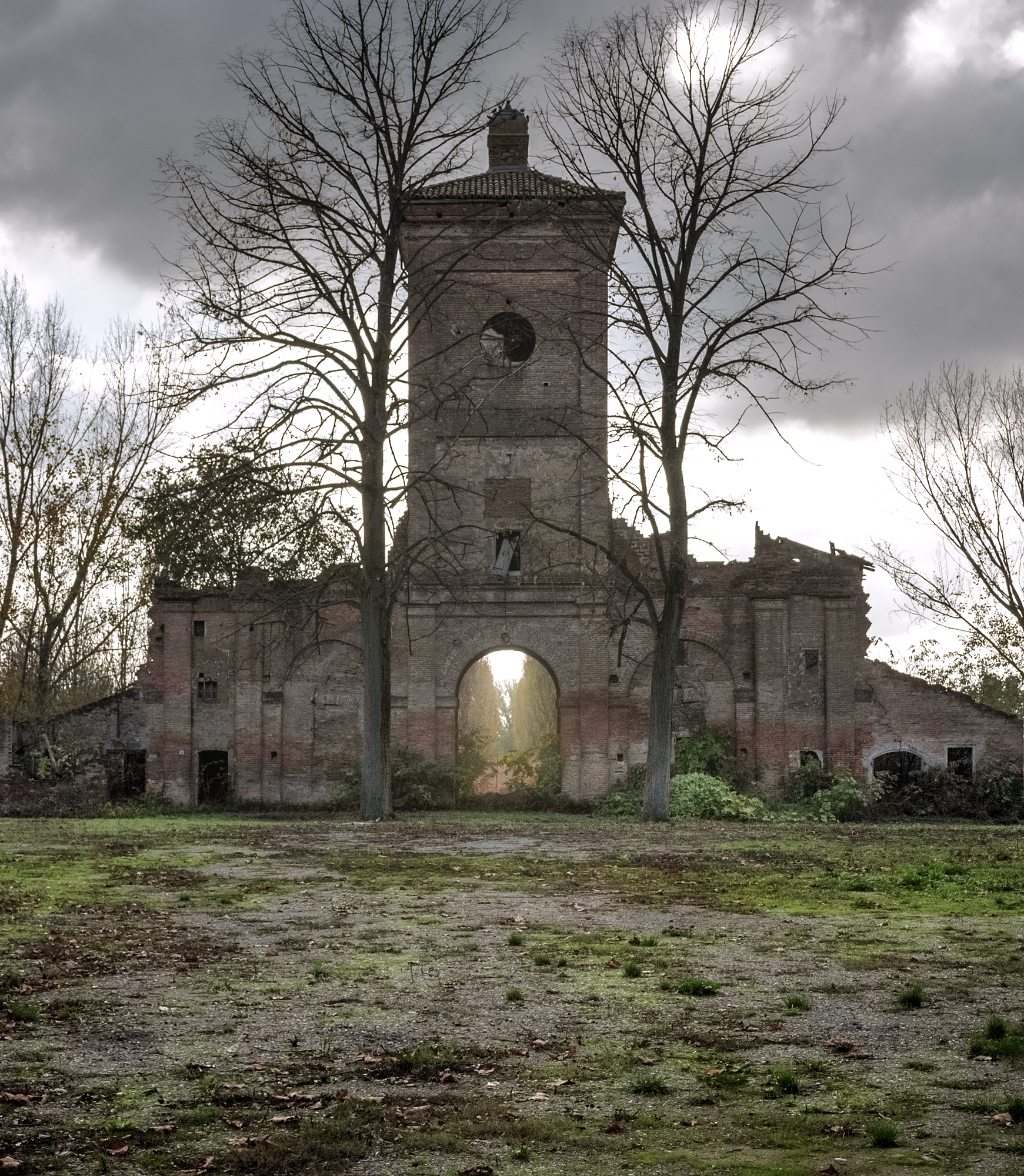 Zrujnowany zamek w północnych Włoszech. Od dziesięcioleci niezamieszkana i rozpadająca się w ruinę. Na zdjęciu widoczny jest budynek bramny.