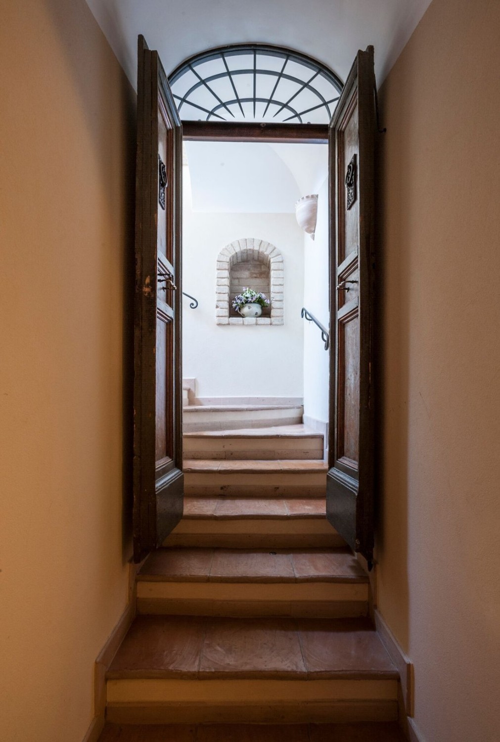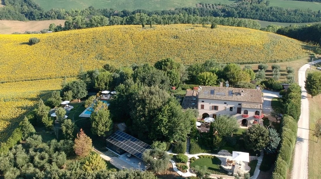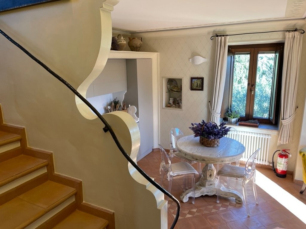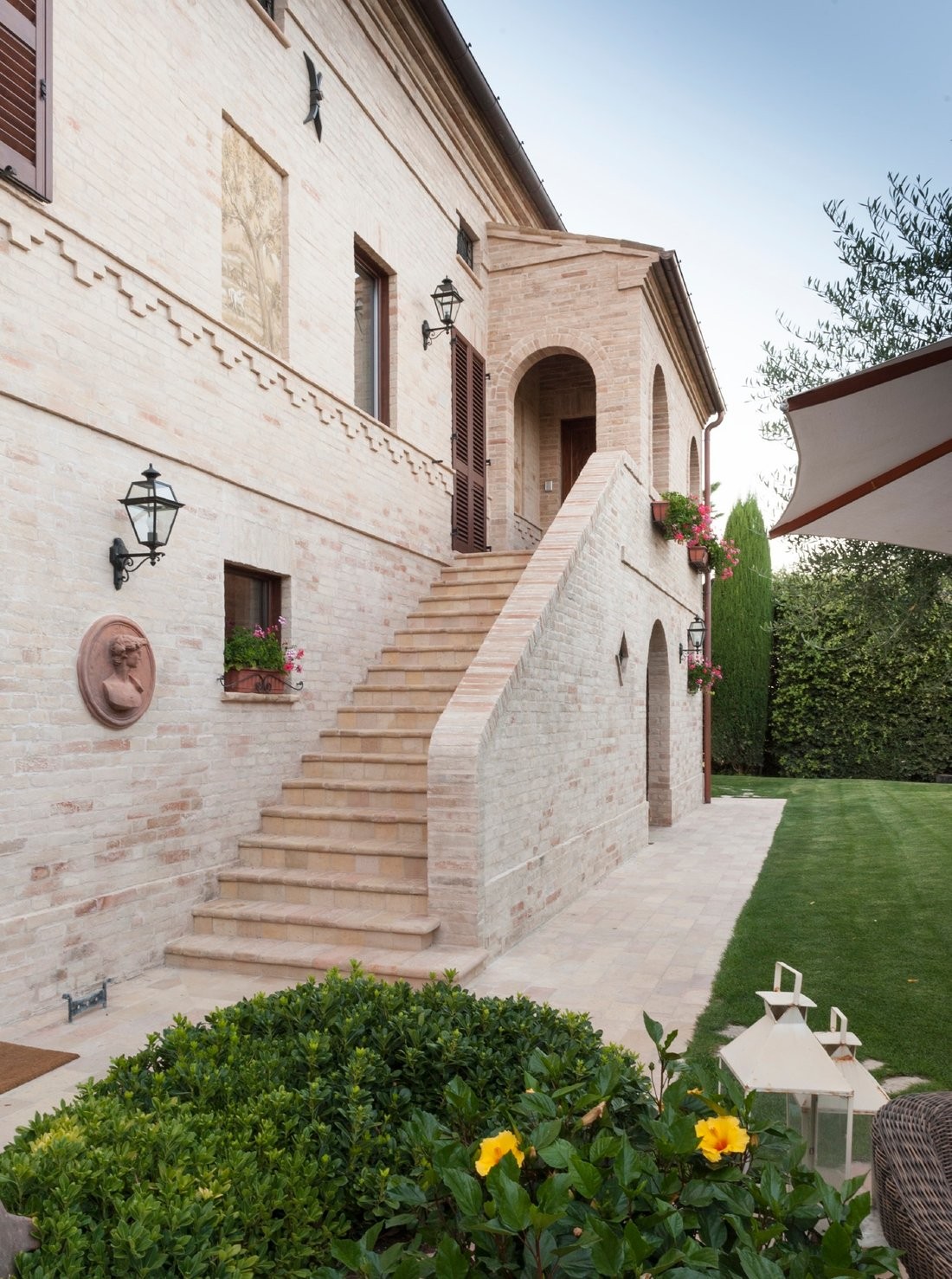 Huvudbyggnaden är redan renoverad. Den sträcker sig över fem våningar och omfattar sex sovrum, sex badrum, flera mottagnings- och sällskapsutrymmen, två fullt utrustade kök, innergård, varuhiss, garage under marknivå, vinkällare och bastu. Utsikten sträcker sig över Marche-landskapet till taken i Fermo. Utomhus: privat olivlund, anlagda trädgårdar med paviljong, terrasser, utomhuskök, sten-grill, jacuzzi och infinitypool.