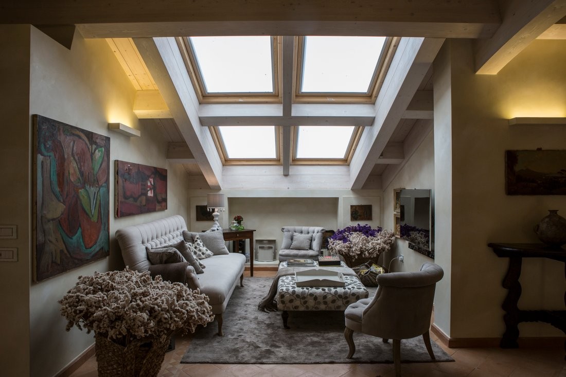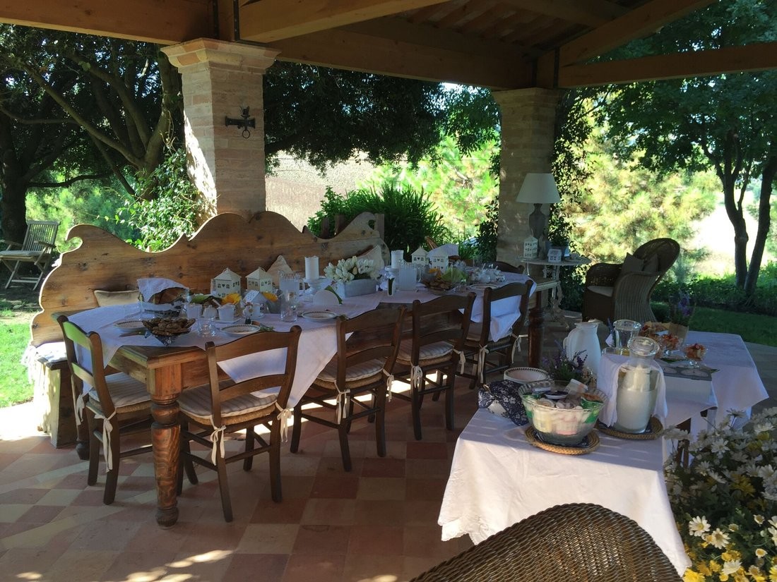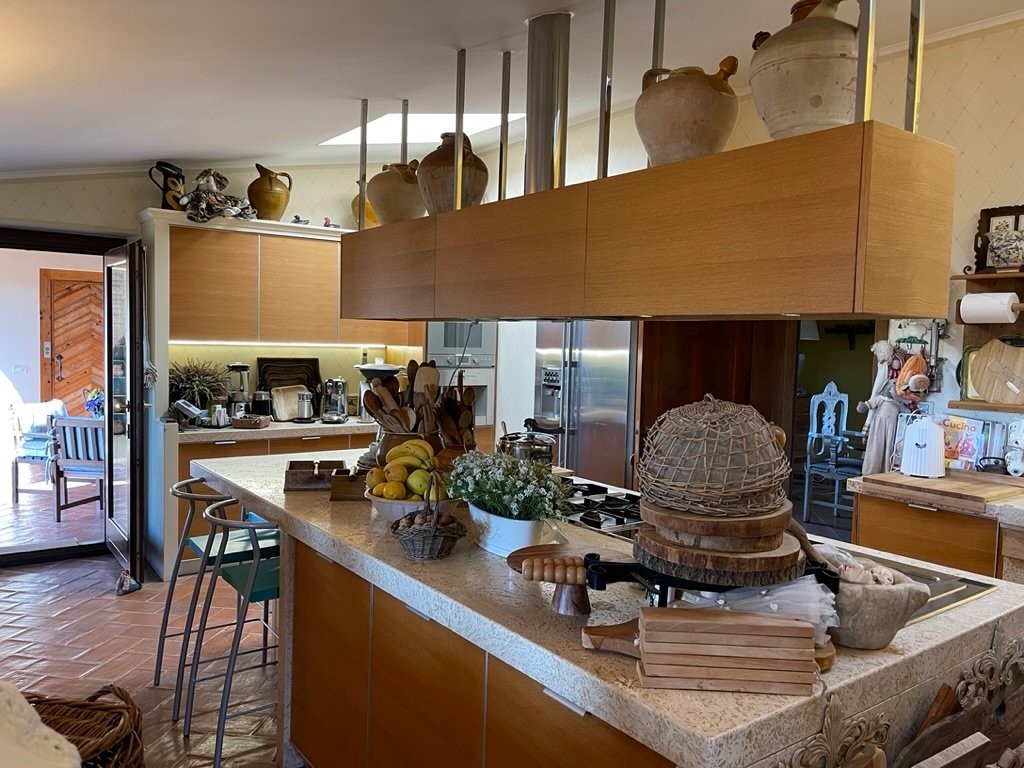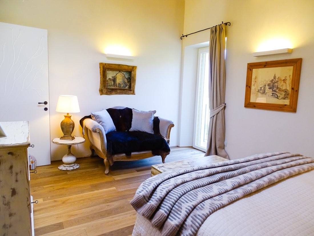 Huvudbyggnaden är redan renoverad. Den sträcker sig över fem våningar och omfattar sex sovrum, sex badrum, flera mottagnings- och sällskapsutrymmen, två fullt utrustade kök, innergård, varuhiss, garage under marknivå, vinkällare och bastu. Utsikten sträcker sig över Marche-landskapet till taken i Fermo. Utomhus: privat olivlund, anlagda trädgårdar med paviljong, terrasser, utomhuskök, sten-grill, jacuzzi och infinitypool.