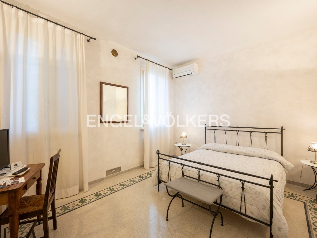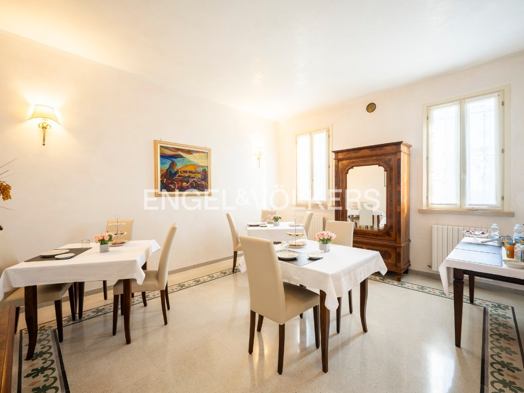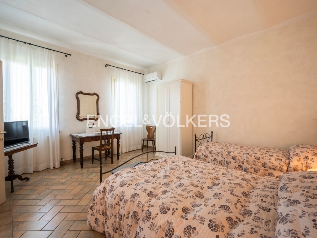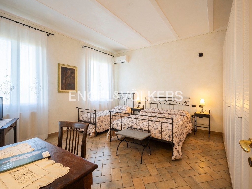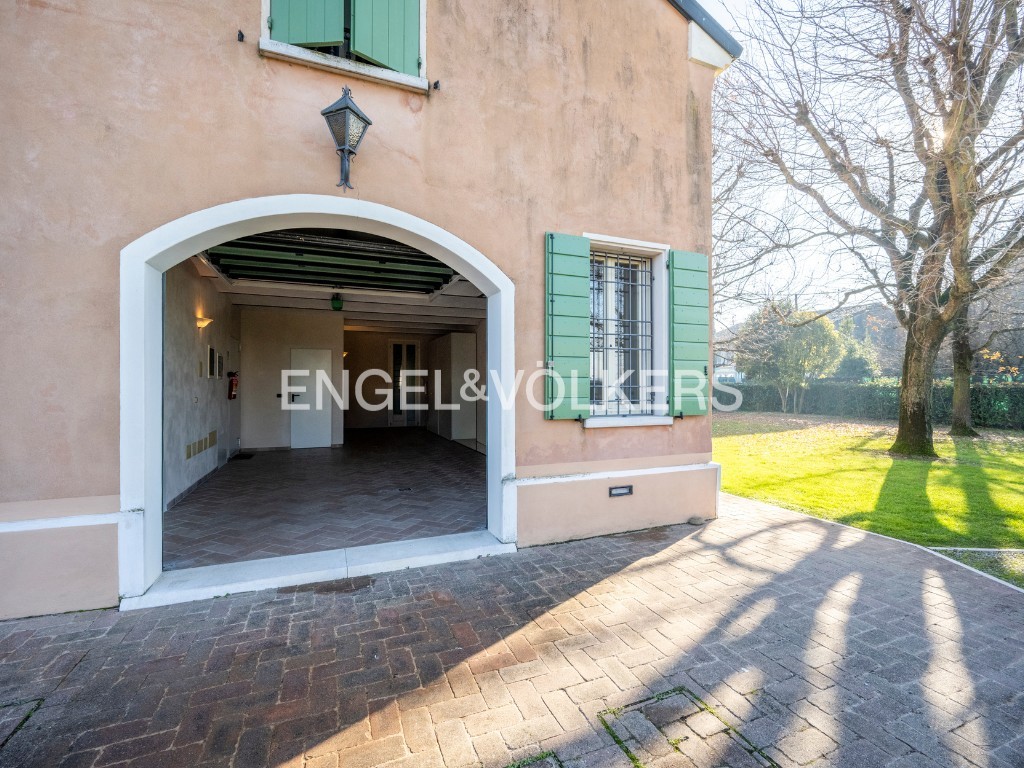 Landhuset erbjuder cirka 400 m² boyta, omgivet av en privat park. Bottenvåningen innehåller salong, kök, arbetsrum och gästtoalett. Första våningen består av tre sovrum och två badrum. En separat enhet på vinden kompletterar huvudbyggnaden. Fastigheten omfattar även en tvåvånings gästlägenhet, ett stort garage med tvättstuga och mezzanin, samt en traditionell barchessa med patio och två ytterligare garage. Trädgården erbjuder fyra extra parkeringsplatser utomhus.