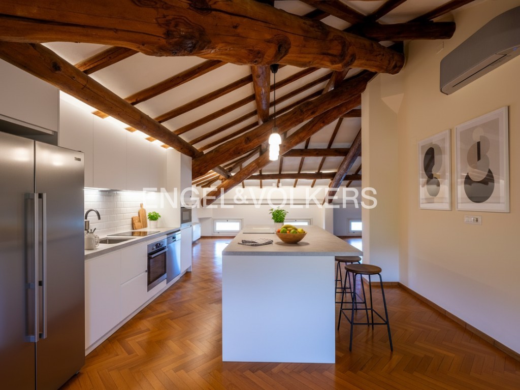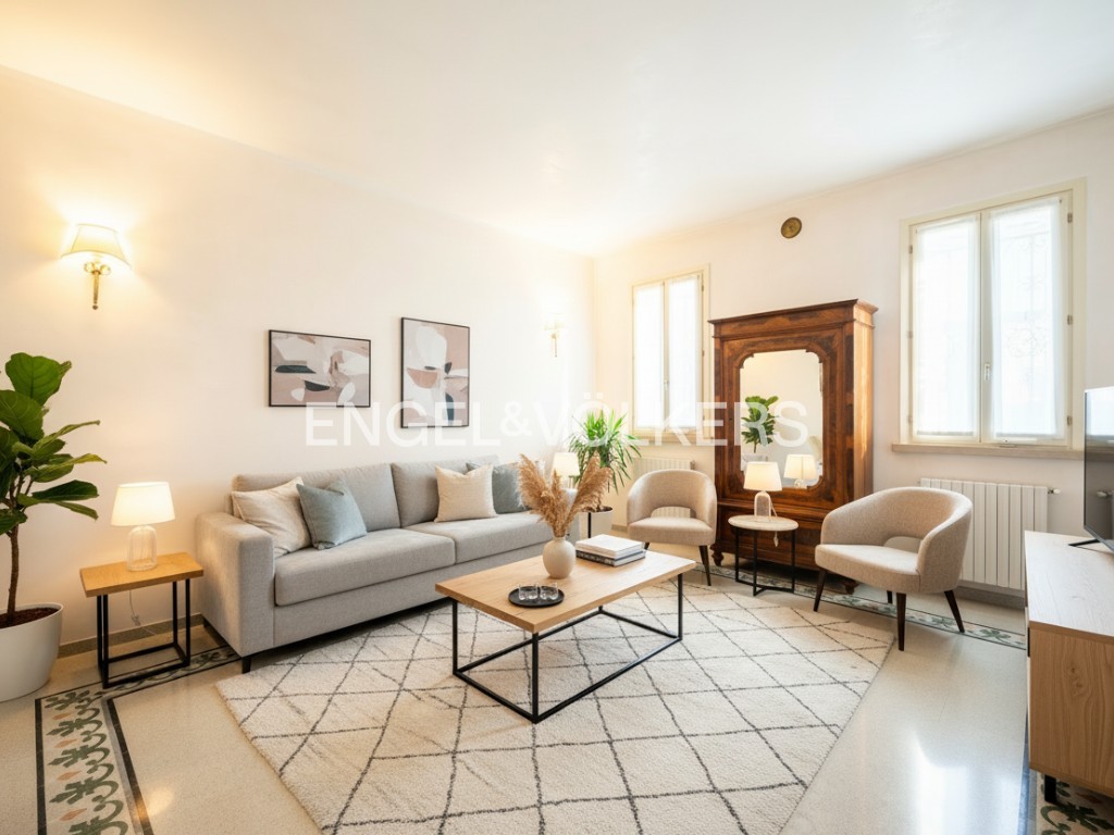 För cirka trettio år sedan restaurerades fastigheten med respekt för dess historiska värde. Originalmaterial och proportioner har bevarats; trappor i travertin, kalkputsade ytor och smidesjärndetaljer präglar interiören.