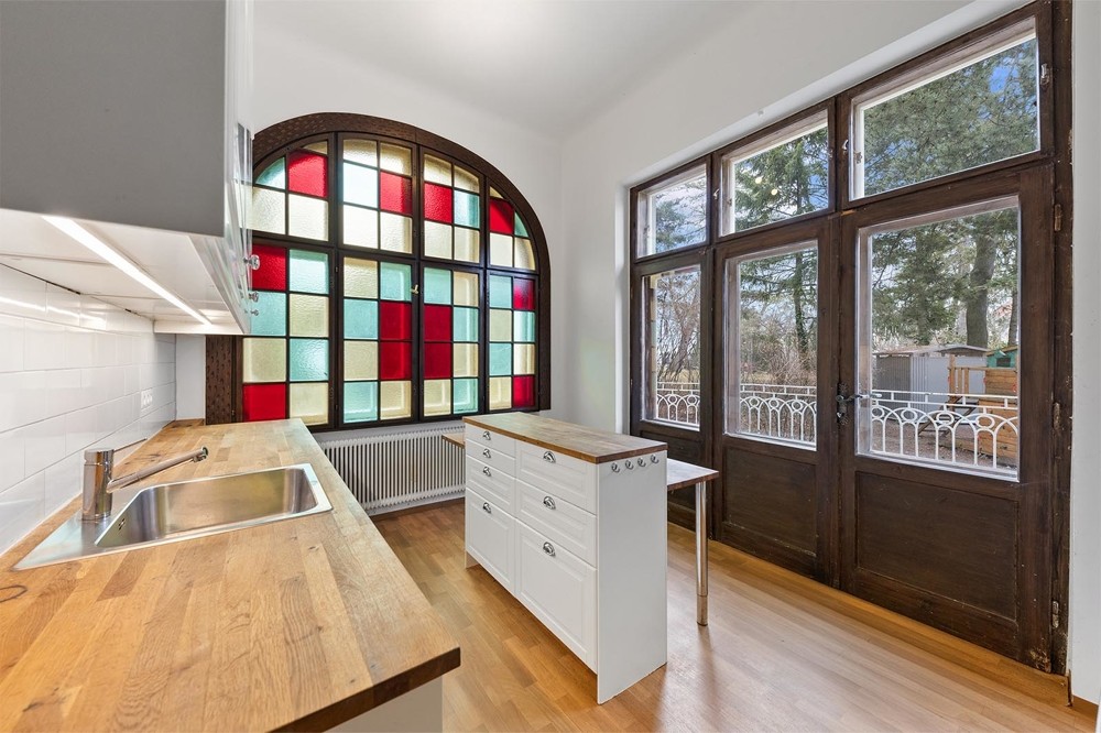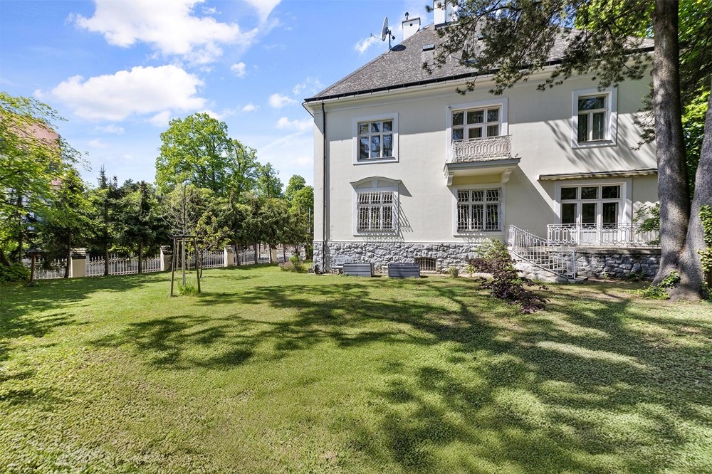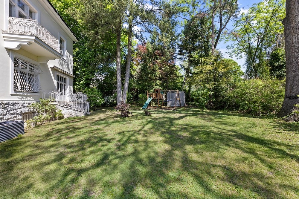 Trädgården i parkliknande stil med mogna träd erbjuder en lugn tillflyktsort. Tomtens rymlighet är sällsynt i Wien. Fastigheten inkluderar även full källare och garage för två bilar.