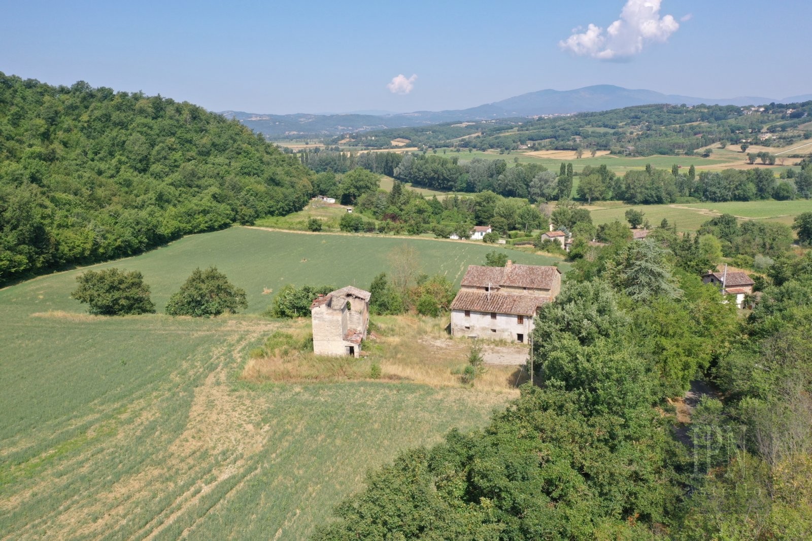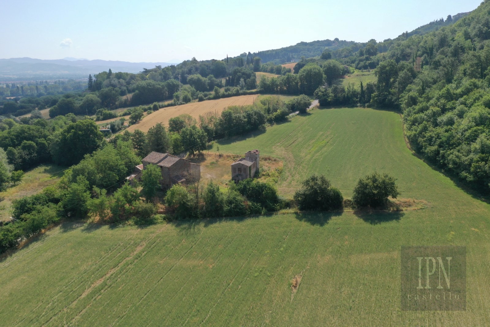 Belägen i de mjuka kullarna i Umbrien erbjuder denna självständiga gård med två ekonomibyggnader och cirka 94 000 m² mark en sällsynt möjlighet till restaurering i en autentisk lantlig miljö. Fastigheten ligger i kommunen Citerna, en av Italiens vackraste byar, i ett lugnt läge på landsbygden men ändå nära kulturellt rika städer som Sansepolcro, Anghiari och Città di Castello.